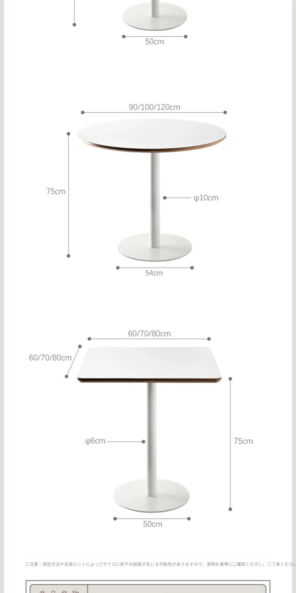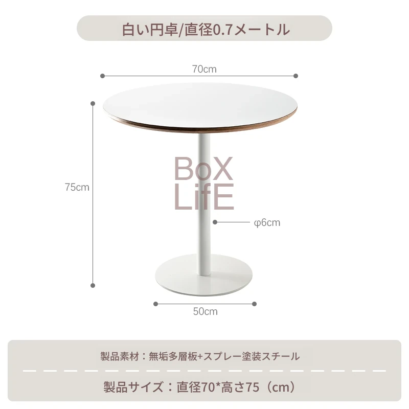 白い円形テーブル/直径0.7メートル