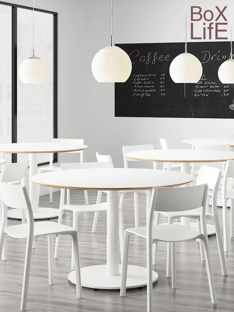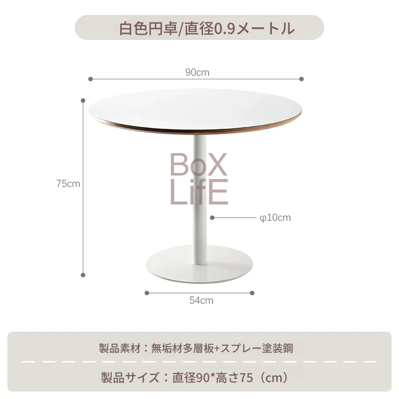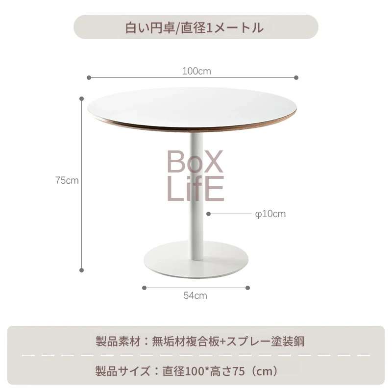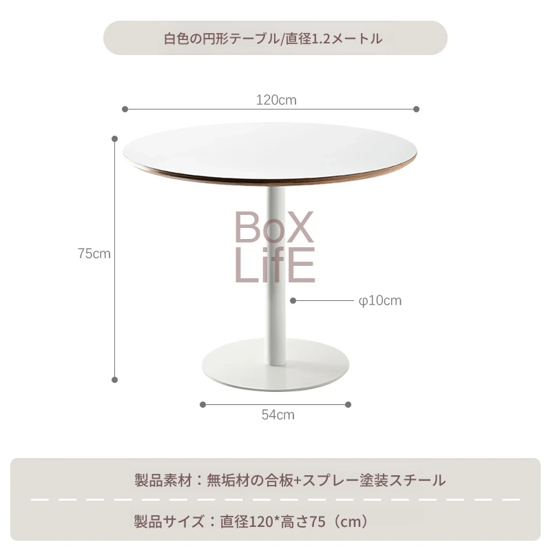 北欧スタイルのシンプルな白い円形ダイニングテーブル|おしゃれで実用的な家用テーブル|モダンなデザインの談話テーブルとしても最適!