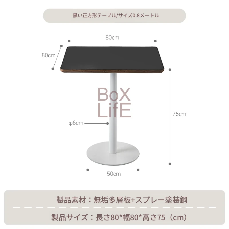 黒い正方形テーブル/0.8メートル