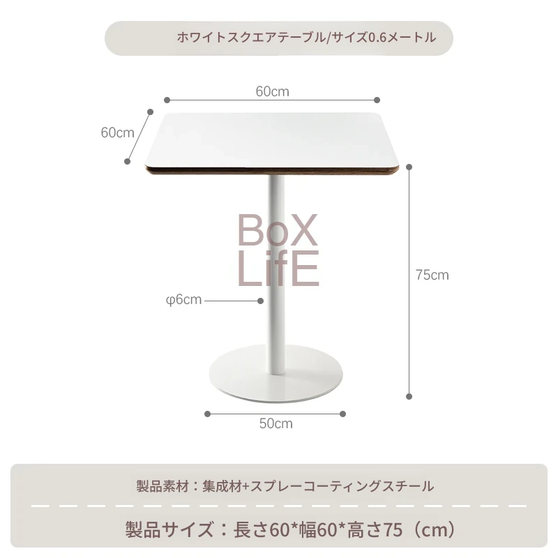 白い正方形テーブル/0.6メートル