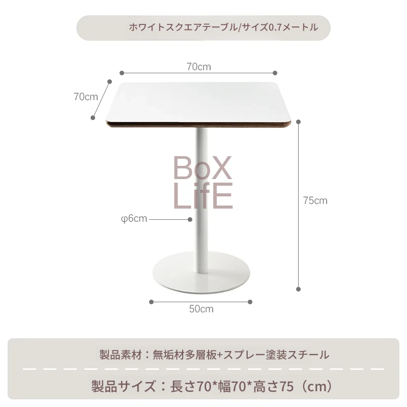 白い正方形テーブル/0.7メートル