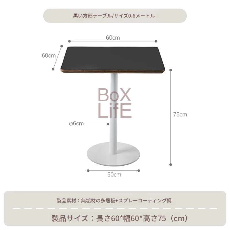 黒い正方形テーブル/0.6メートル
