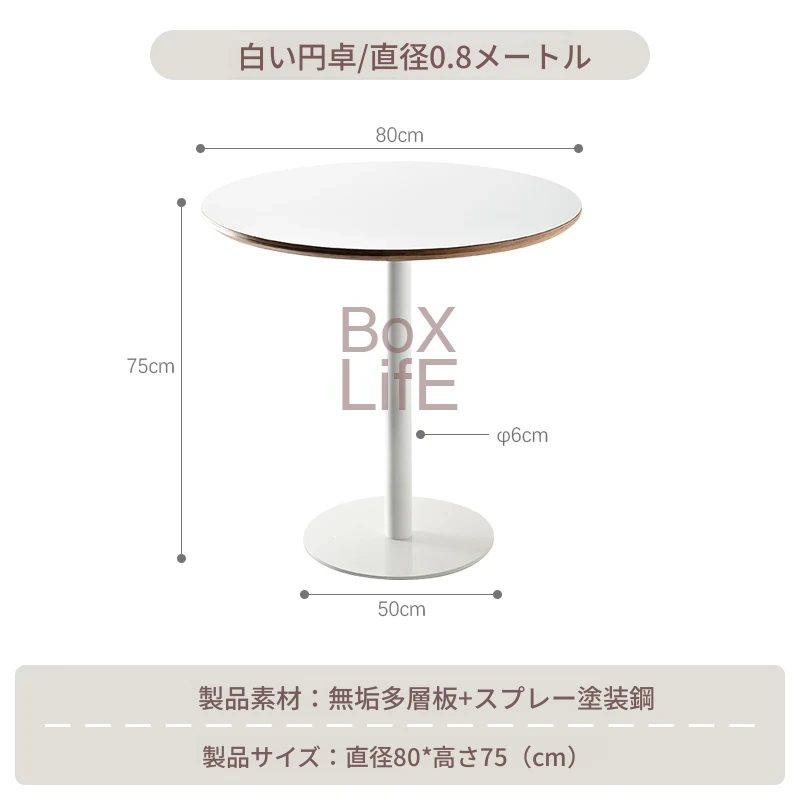 白い円形テーブル/直径0.8メートル