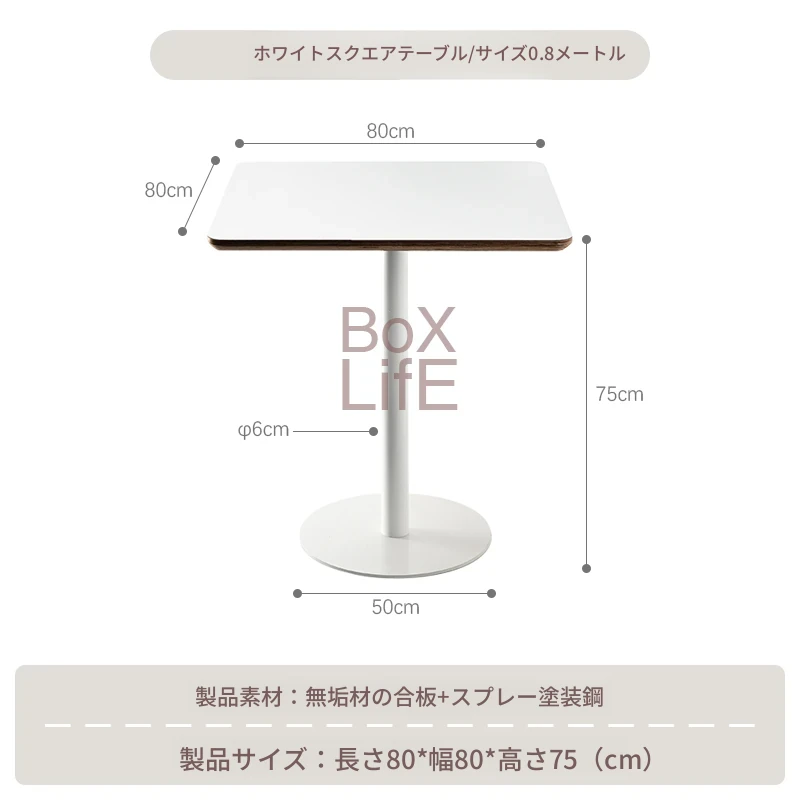 白い正方形テーブル/0.8メートル