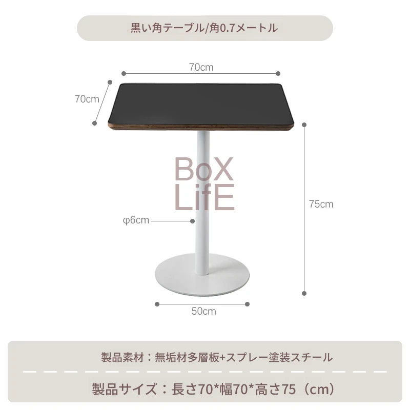 黒い正方形テーブル/0.7メートル