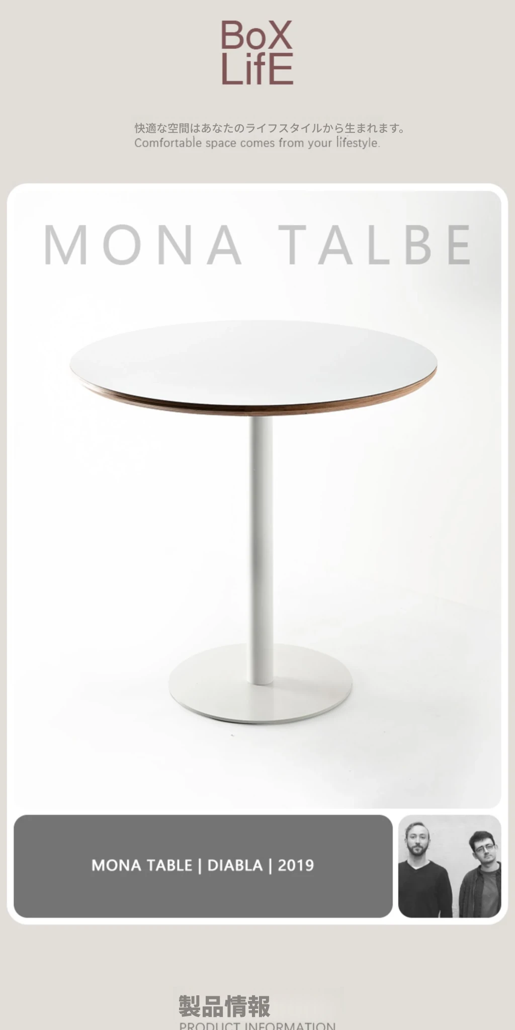 白い円形テーブル/直径1メートル