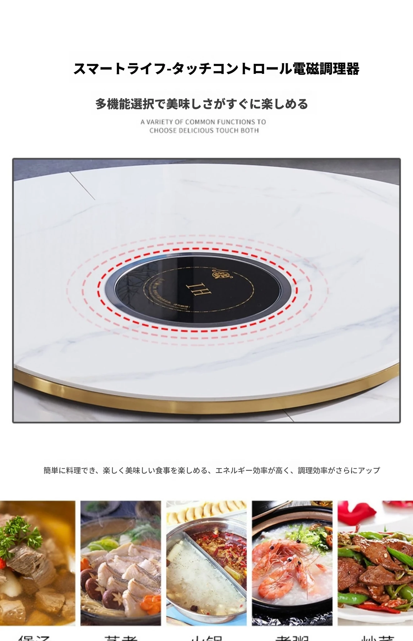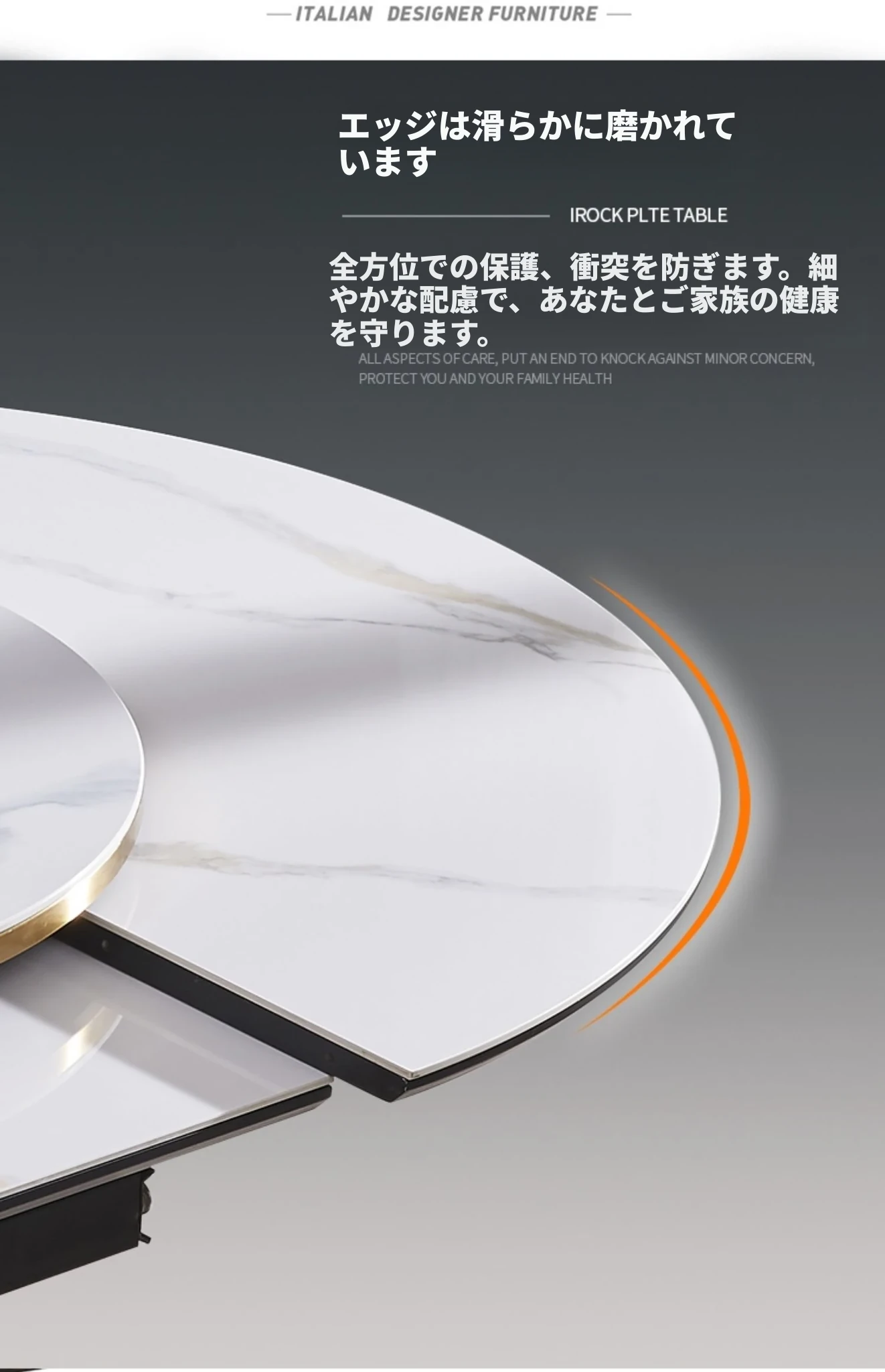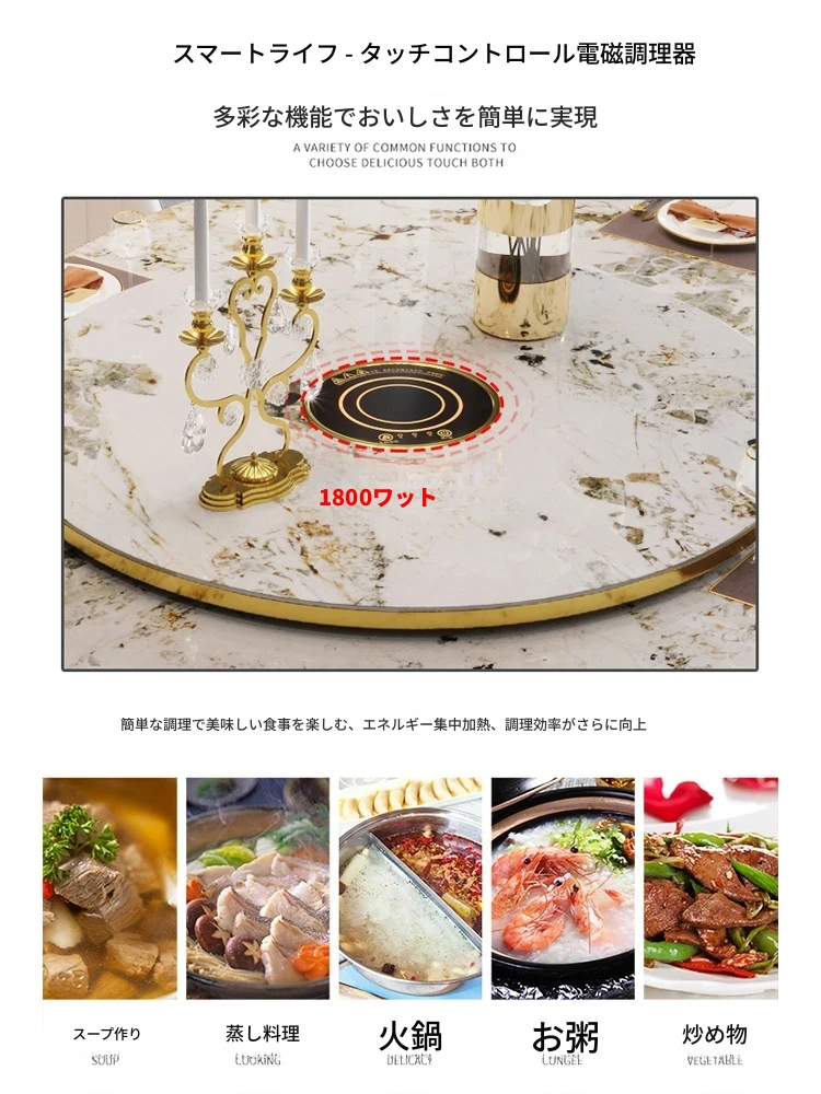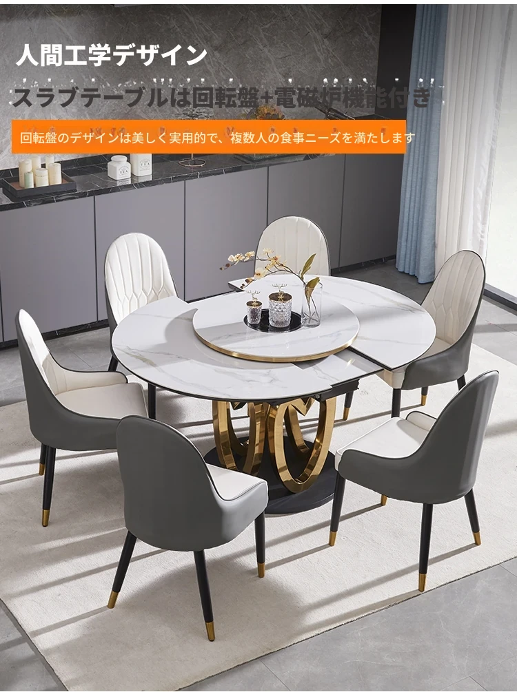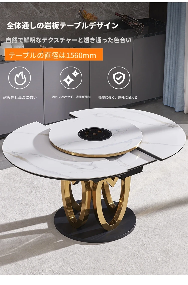エレガントな楕円形ロックプレートダイニングテーブル - 回転式、伸縮可能、軽やかな贅沢感を演出する多機能鍋テーブル、電磁調理器付きで楽しい食事体験を提供!