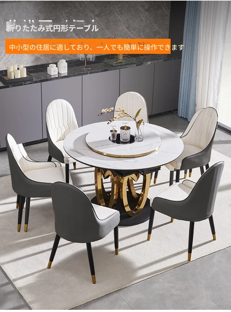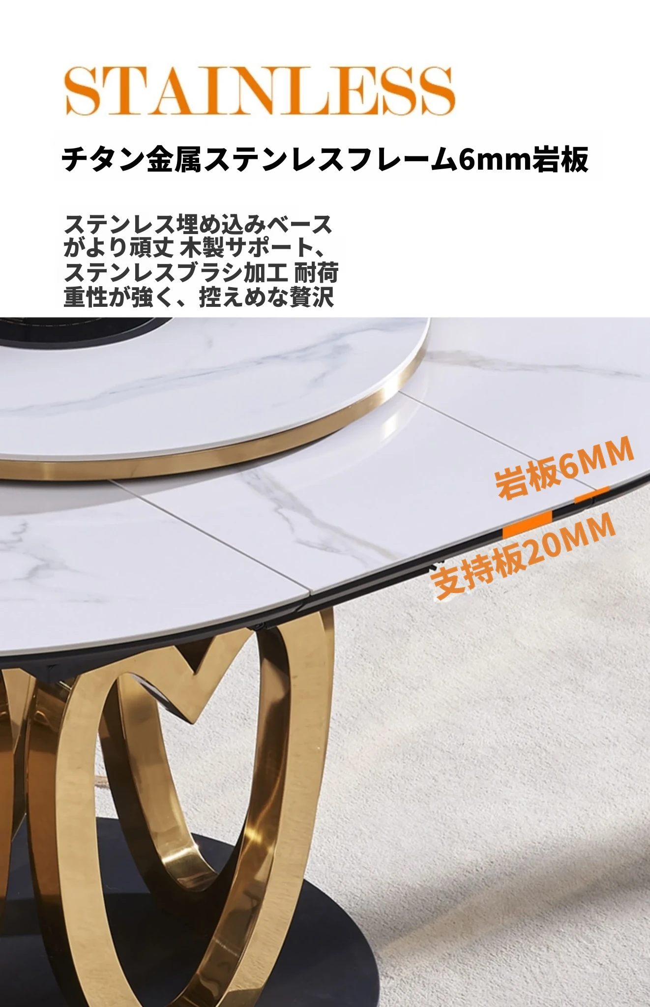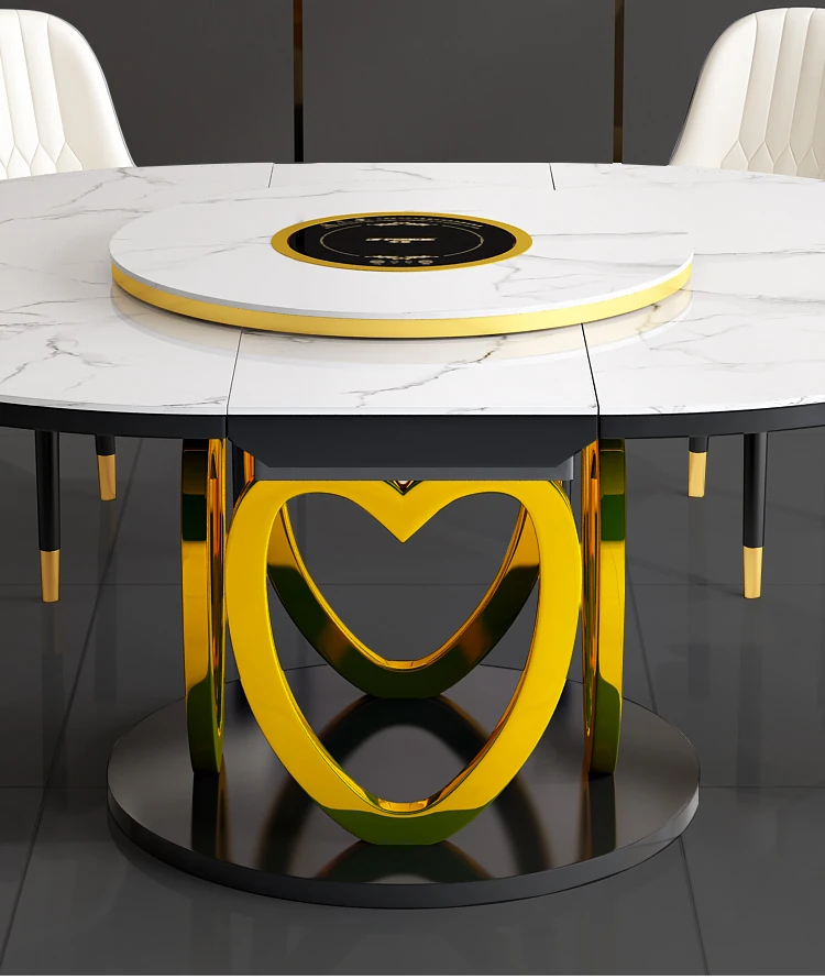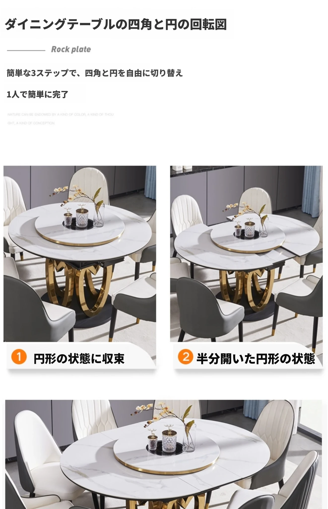 エレガントな楕円形ロックプレートダイニングテーブル - 回転式、伸縮可能、軽やかな贅沢感を演出する多機能鍋テーブル、電磁調理器付きで楽しい食事体験を提供!