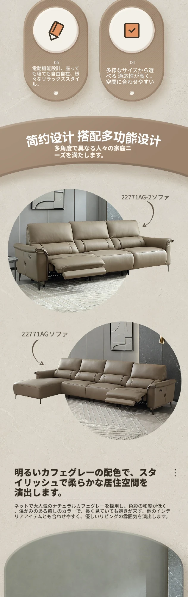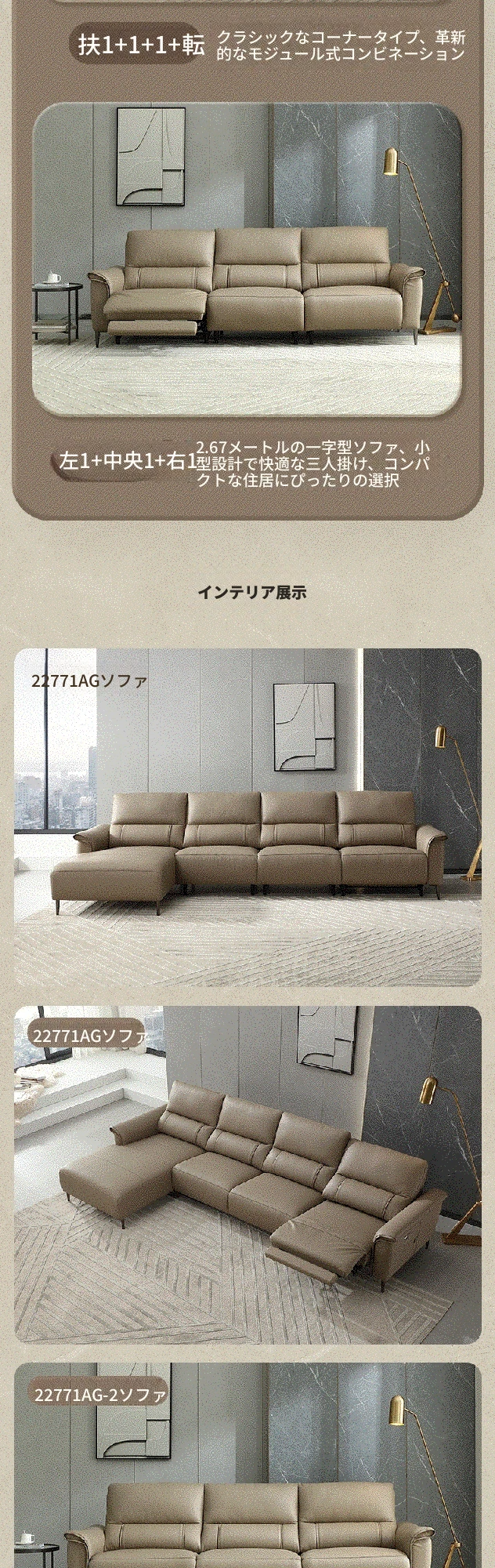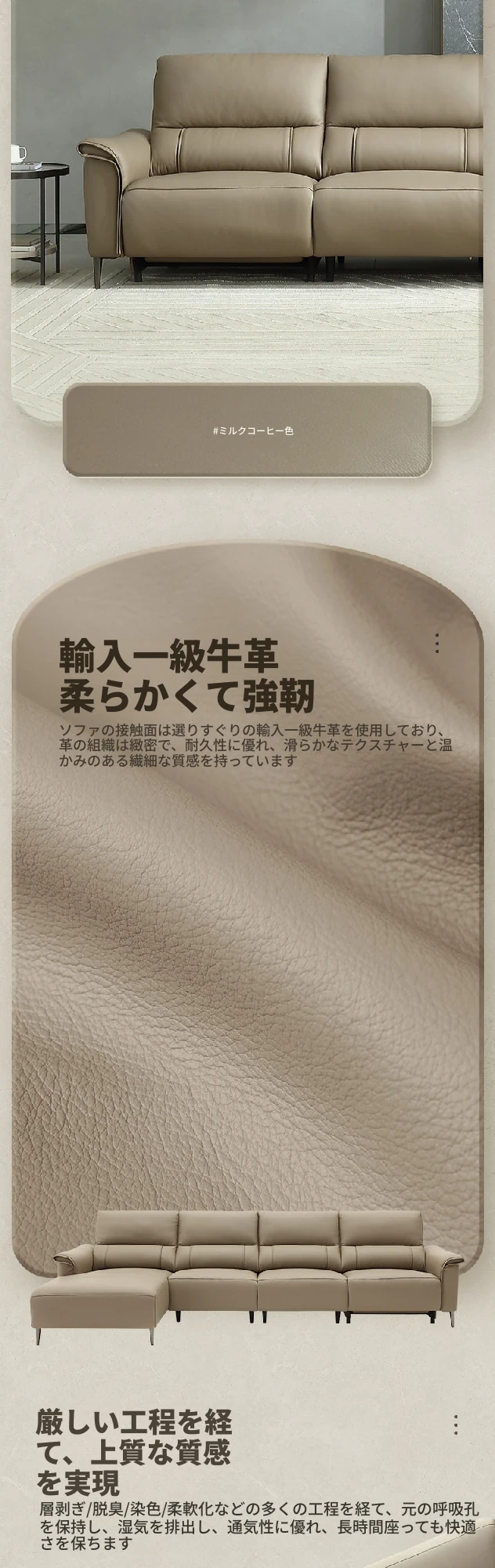 全友家居 22771AG ピカーノ クリーム風 デザイン 1級牛革 コーナー直排 機能ソファー - 高級感溢れる快適な座り心地で、リビングを華やかに演出します!