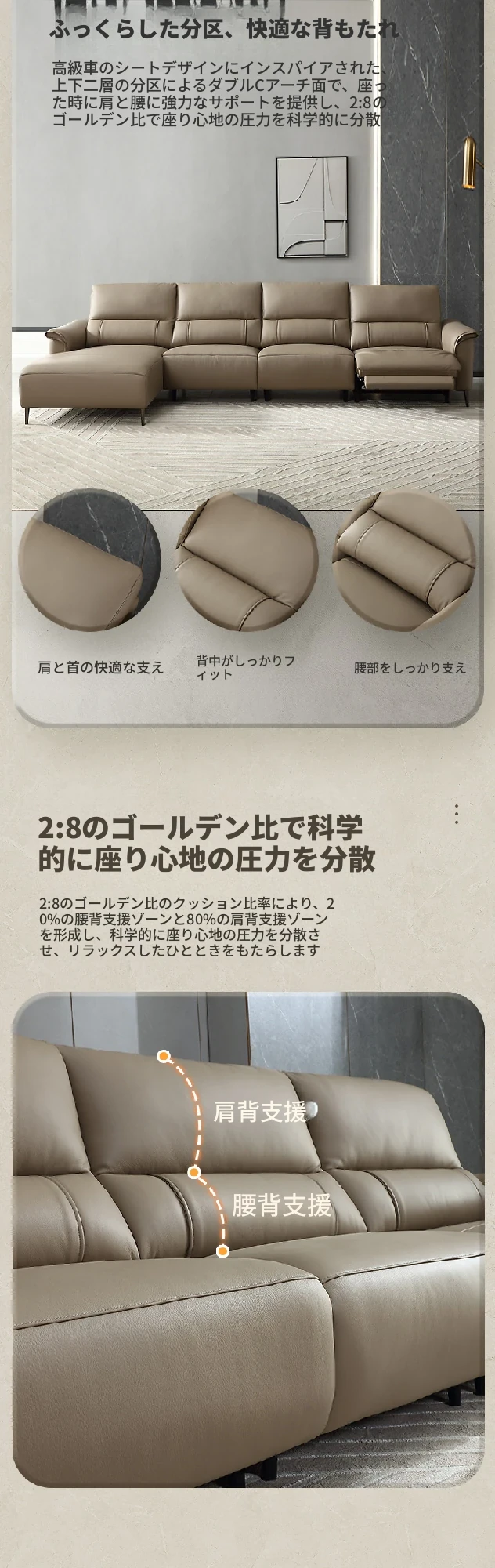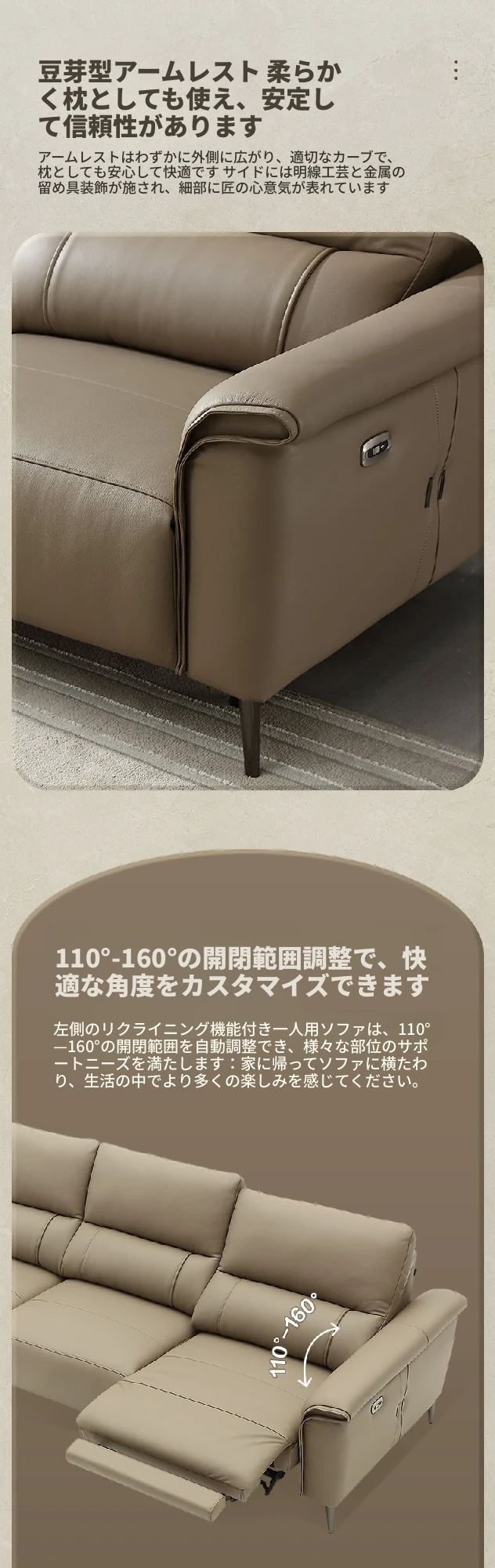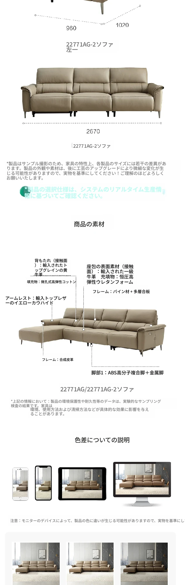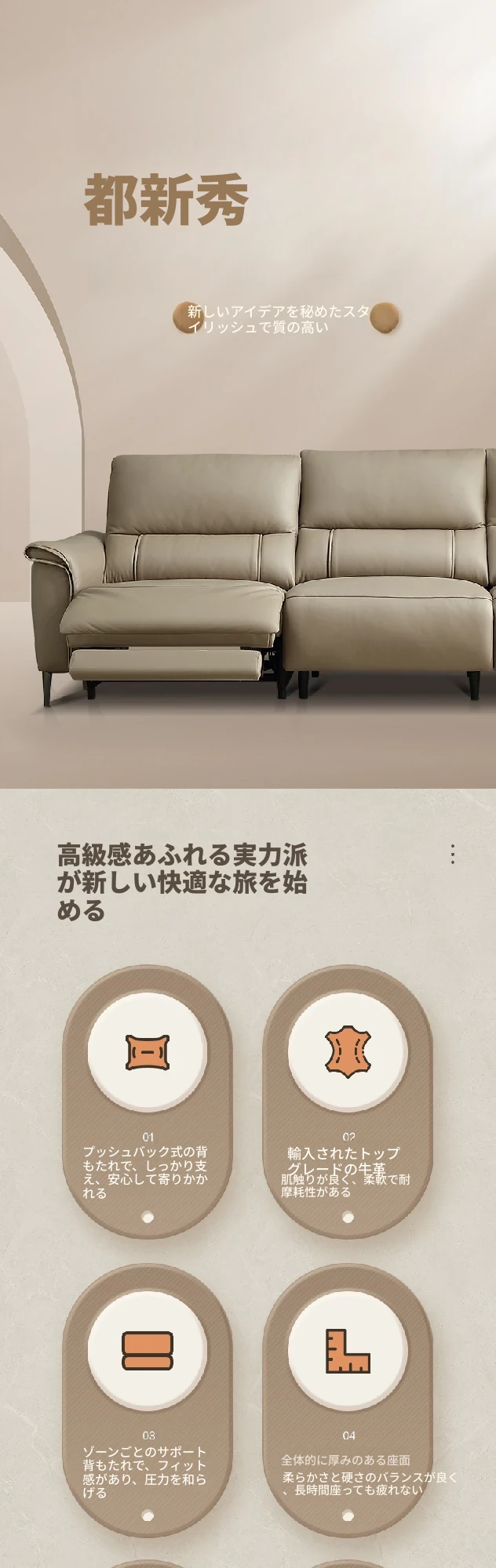 全友家居 22771AG ピカーノ クリーム風 デザイン 1級牛革 コーナー直排 機能ソファー - 高級感溢れる快適な座り心地で、リビングを華やかに演出します!