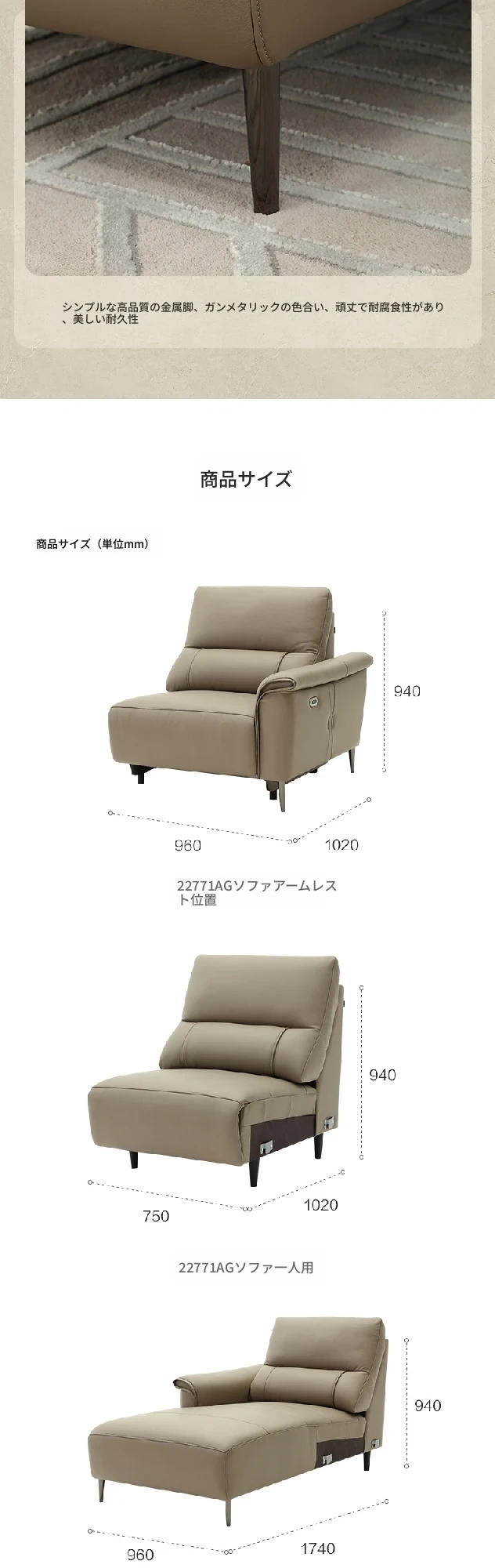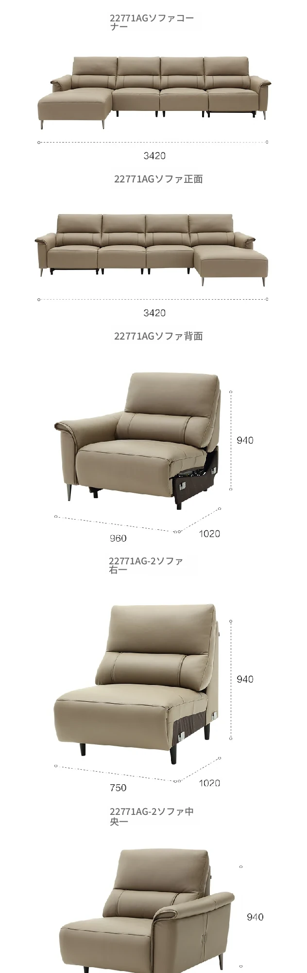 22771AG反向ソファ