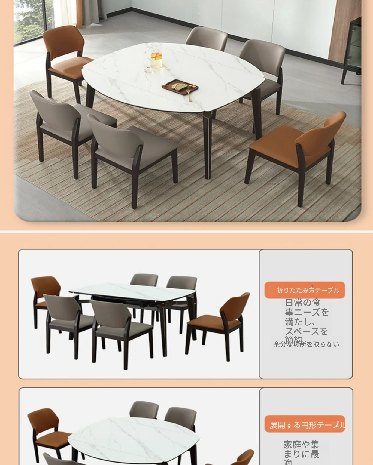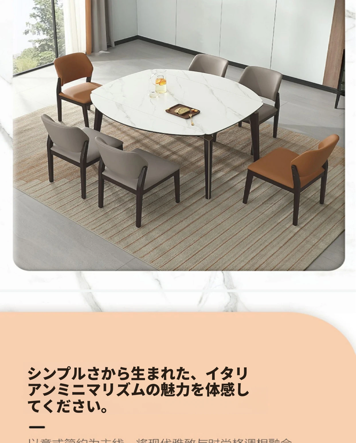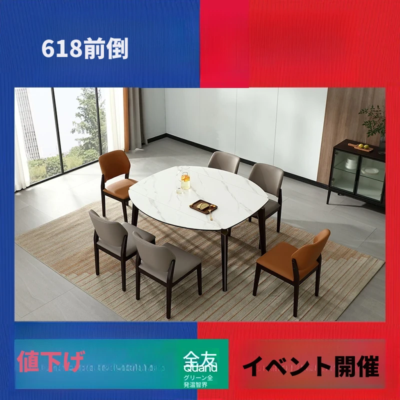 全友ホーム FB0028 モダンでシンプルなラグジュアリー 伸縮式ストーンテーブル ソフトパッケージダイニングチェア セットでおしゃれなリビング・ダイニングに最適!