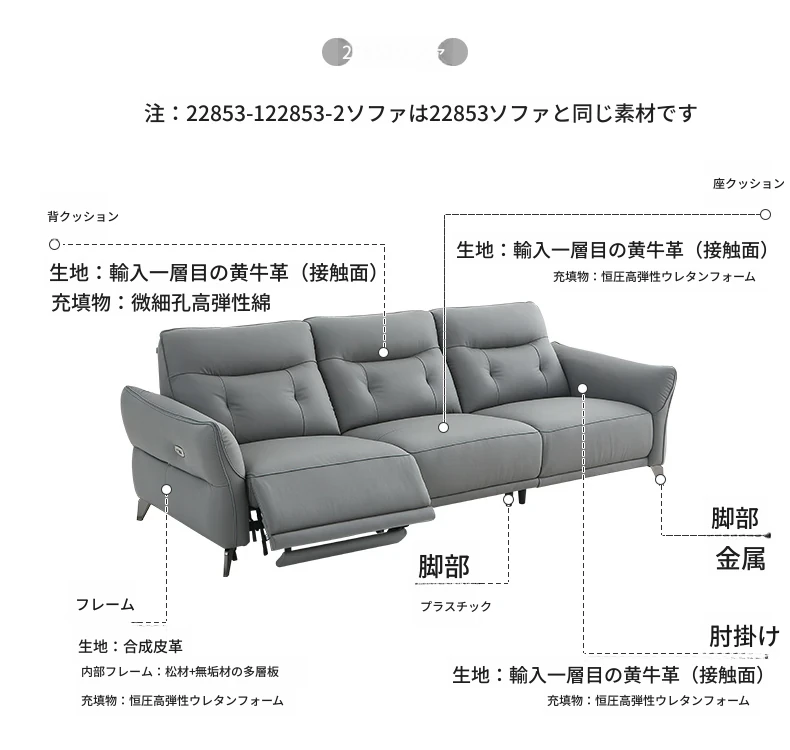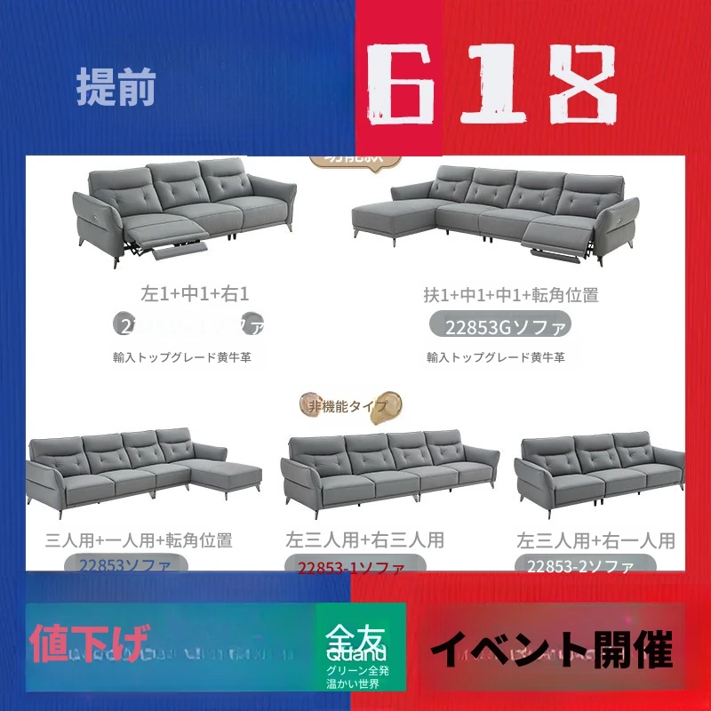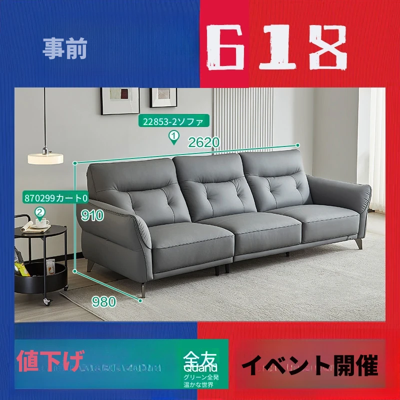 全友家具 店舗同モデル 22853 直排ゼロ腰掛け機能付き 輸入一等牛革ソファ
