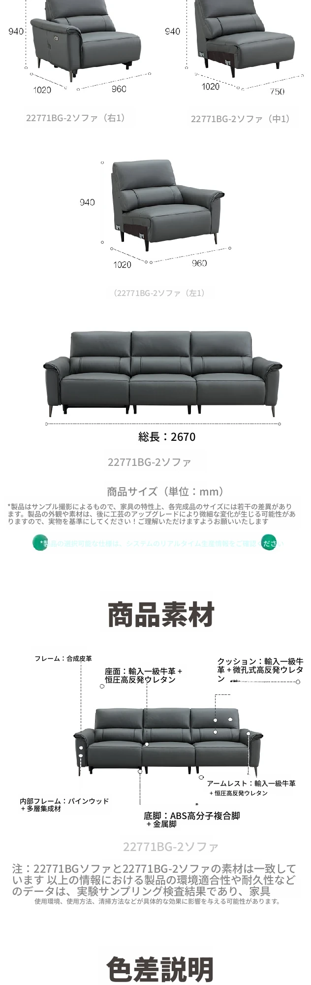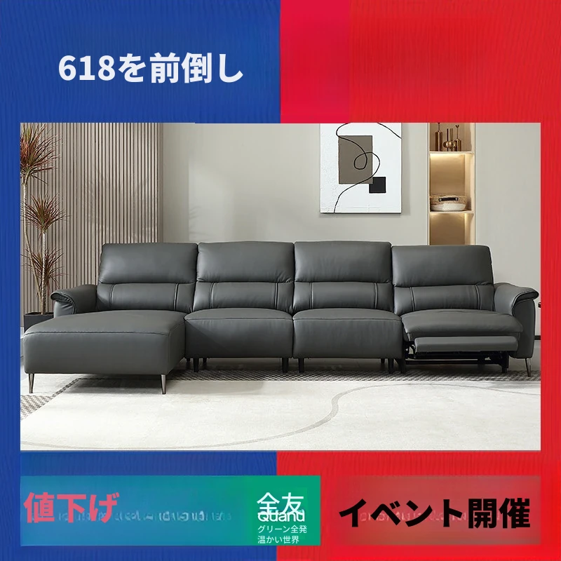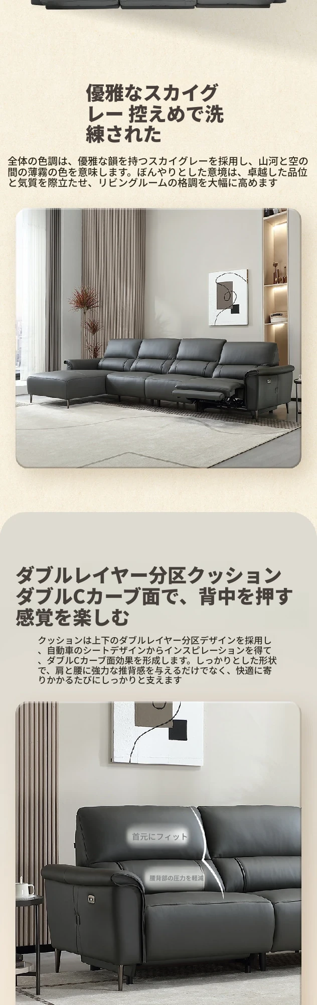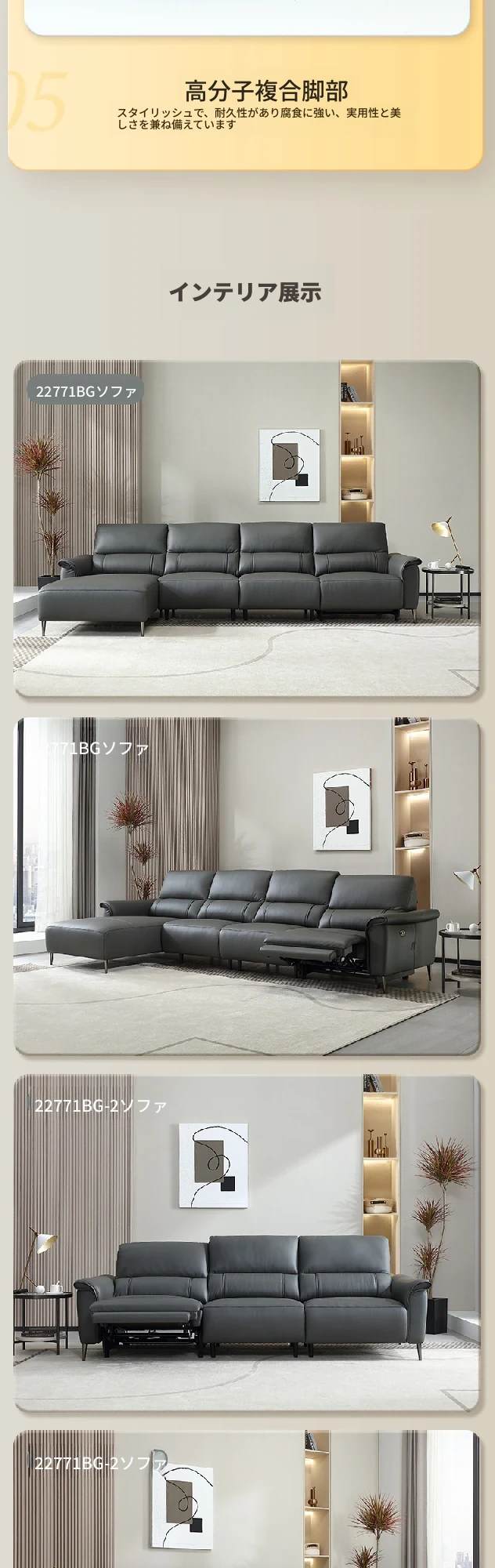 全友家具 22771BG ピカーノ アクアグレー 一級牛革 コーナー直排 機能ソファ - 快適な座り心地とスタイリッシュなデザインで、リビングルームに最適な選択肢です!