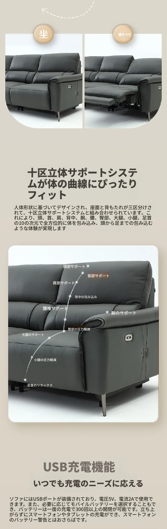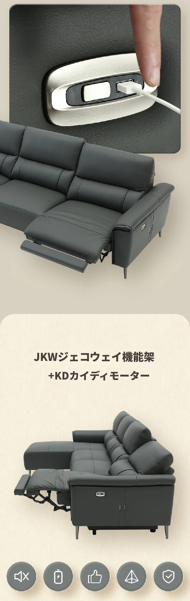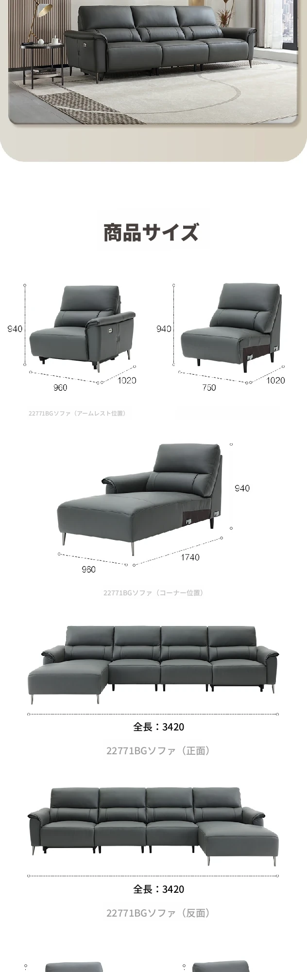 全友家具 22771BG ピカーノ アクアグレー 一級牛革 コーナー直排 機能ソファ - 快適な座り心地とスタイリッシュなデザインで、リビングルームに最適な選択肢です!