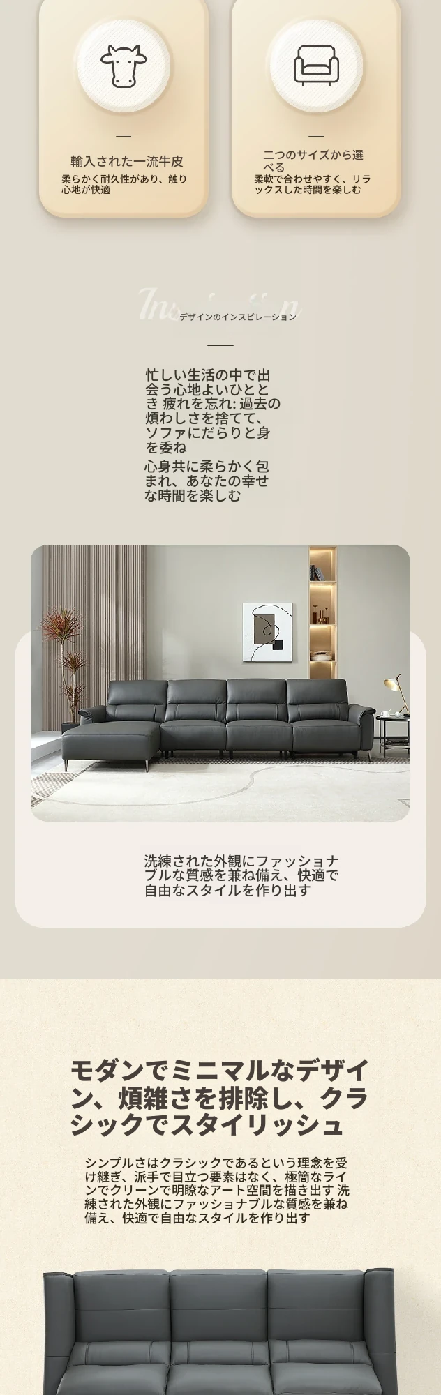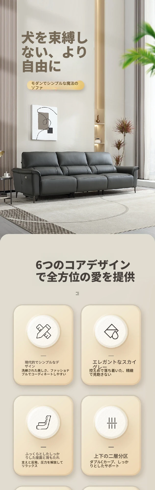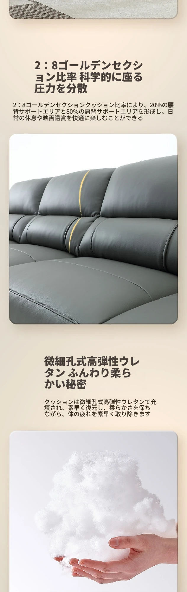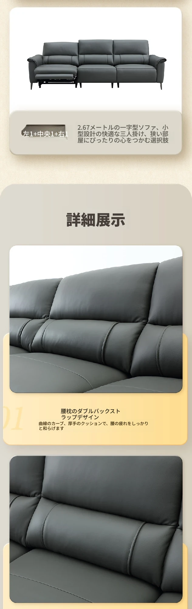 全友家具 22771BG ピカーノ アクアグレー 一級牛革 コーナー直排 機能ソファ - 快適な座り心地とスタイリッシュなデザインで、リビングルームに最適な選択肢です!
