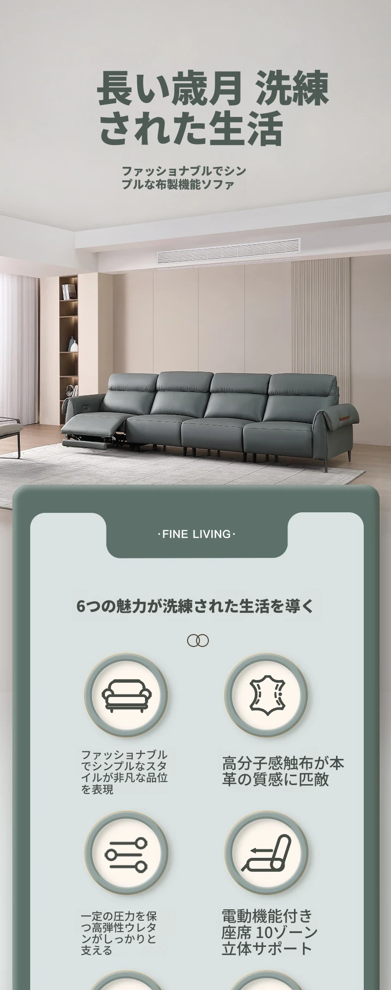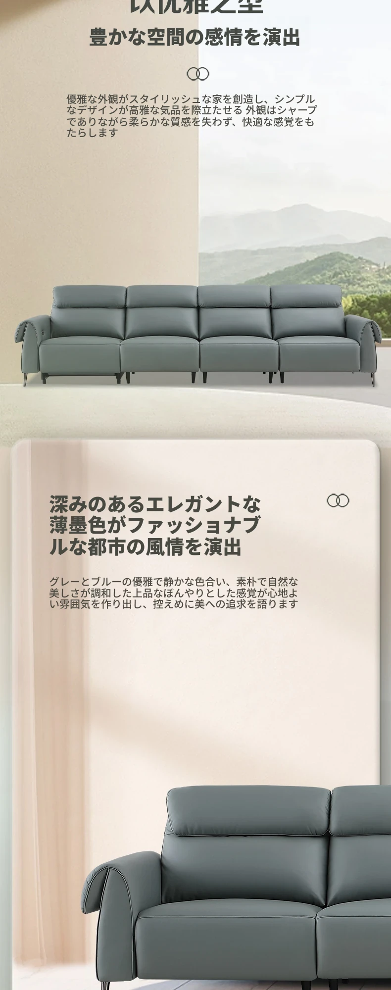 全友ホーム 210001G シンプル 高分子快適布 薄墨青 直排電動機能ソファ - スタイリッシュなデザインでリラックス空間を演出!