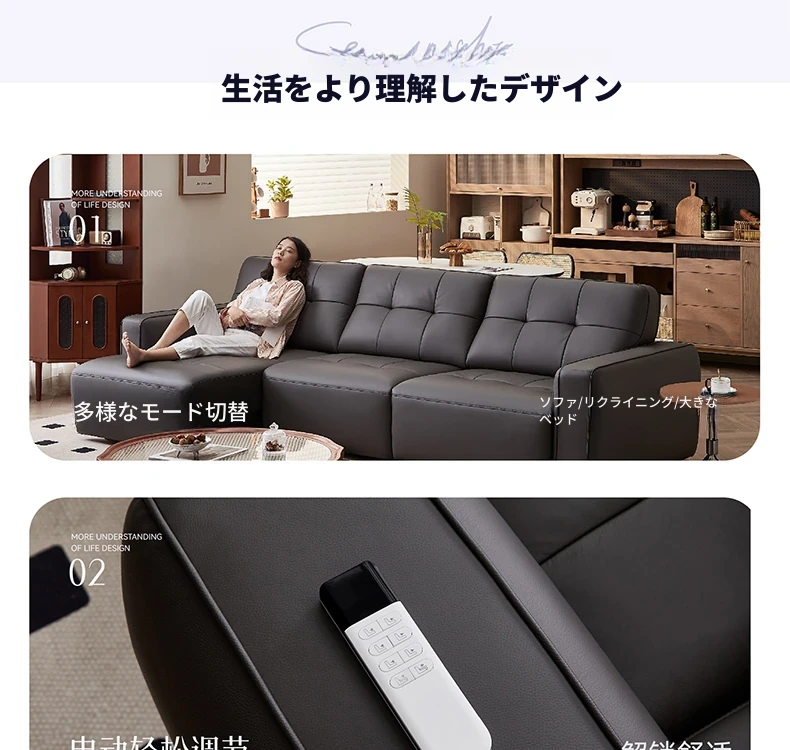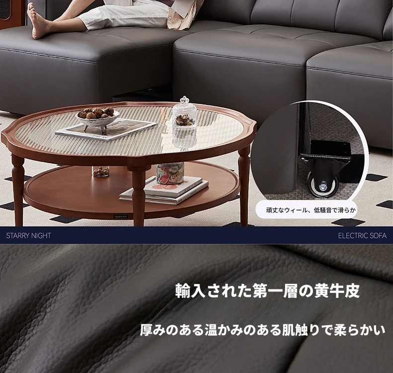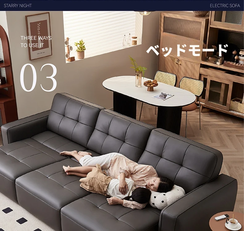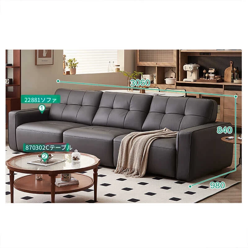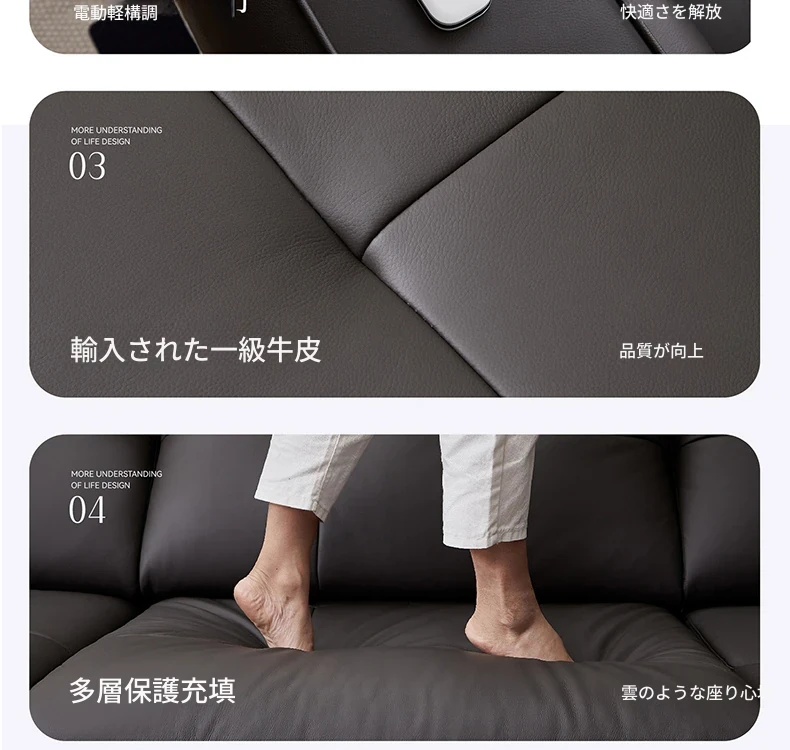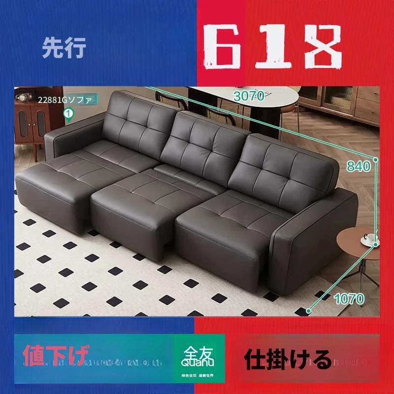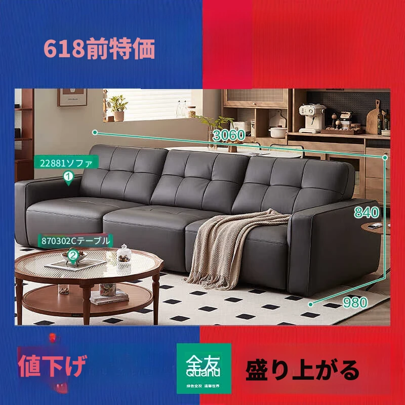 全友家具店の講義を受けた22881Gインポート一級黄牛革ソファー - スタイリッシュでシンプルな電動機能付き!快適な座り心地と洗練されたデザインで、あなたのリビング空間を格上げします。