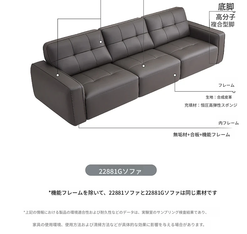 22881G電動レザーソファ(左1+中1+右1)3点