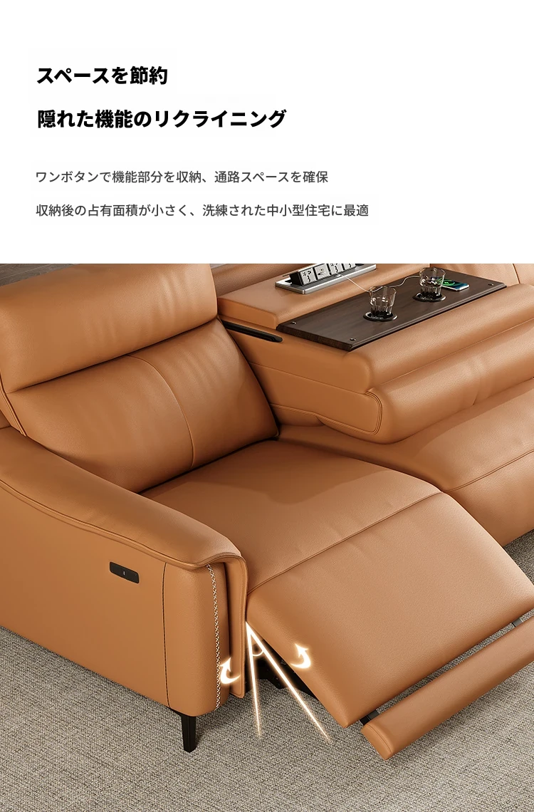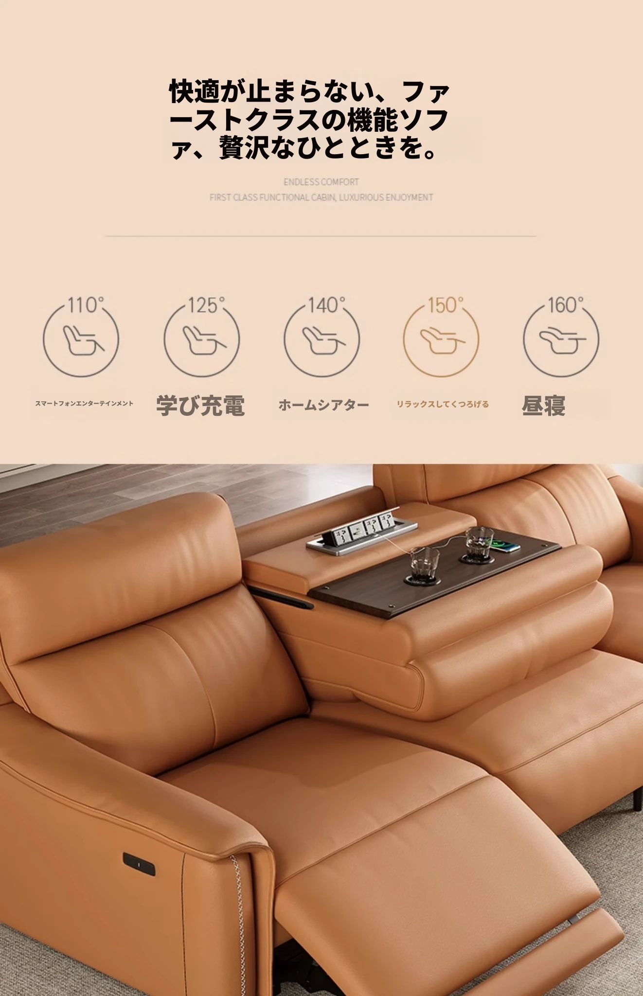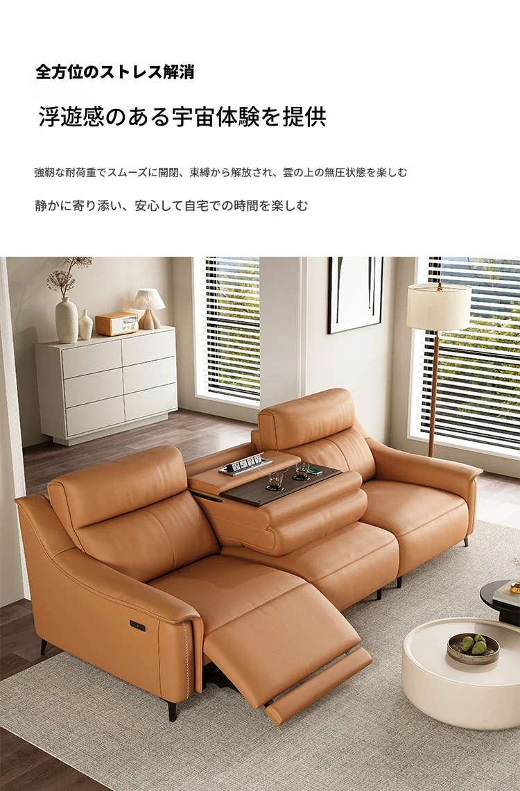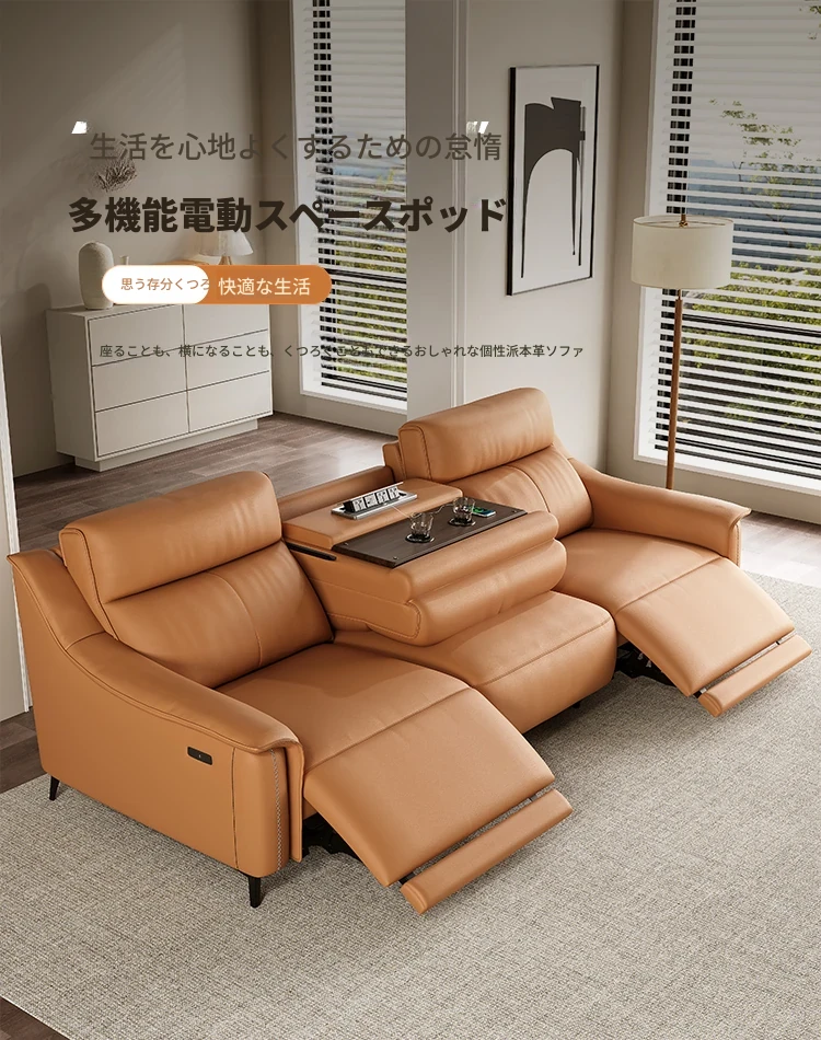 シェア派 スペースインテリジェントカウチ シンプルモダン3人掛け 本革トップグレインレザー 電動機能付きソファで、リラックスしたひとときを。スタイリッシュなデザインで、あなたのリビングを格上げ!