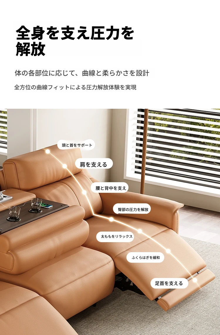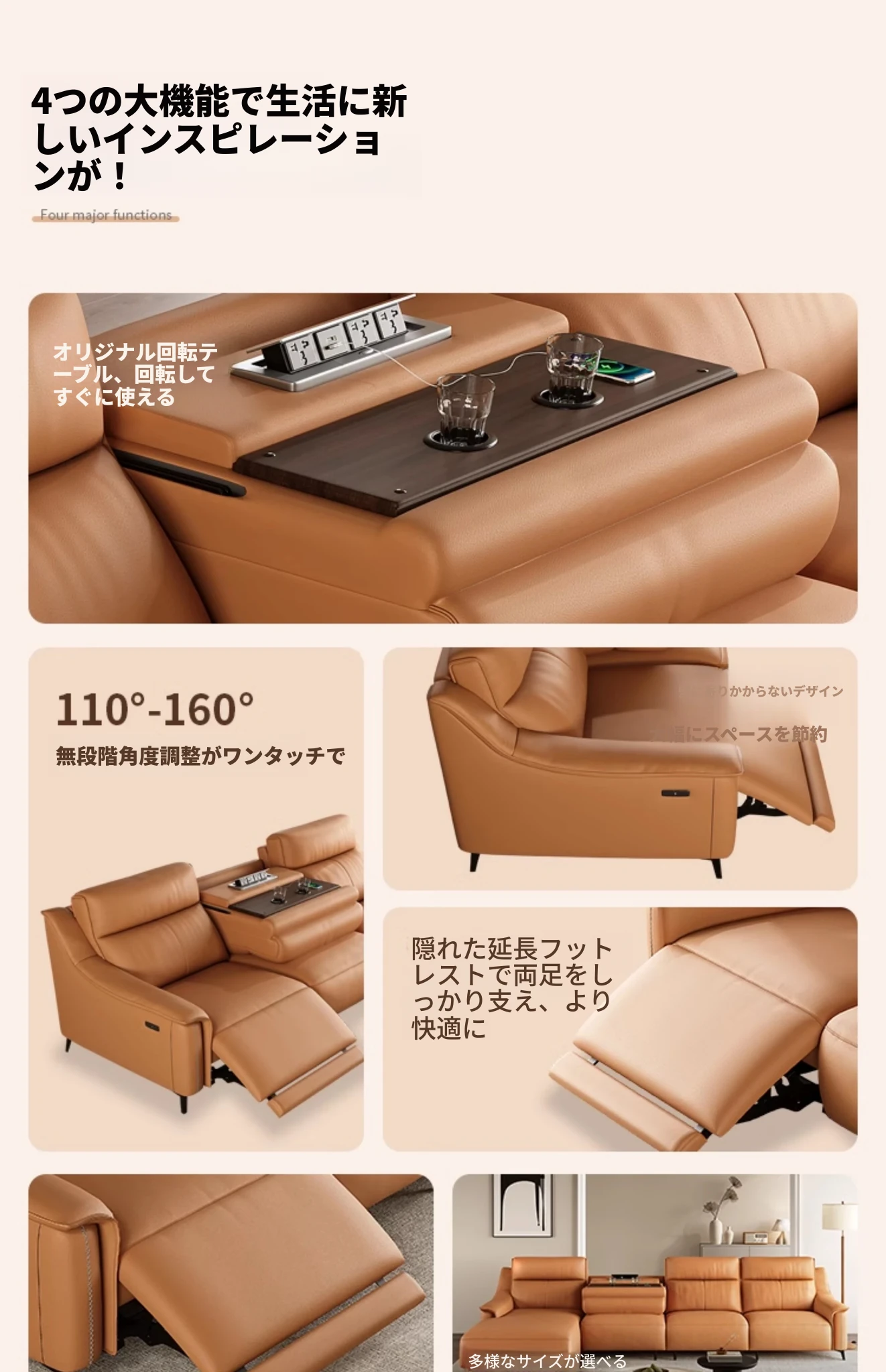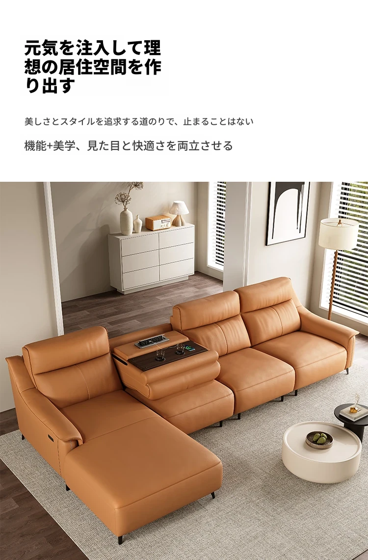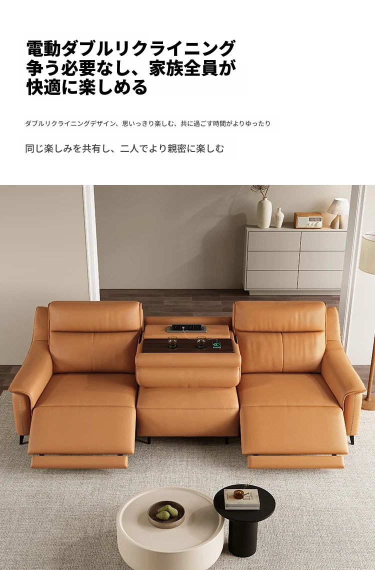 シェア派 スペースインテリジェントカウチ シンプルモダン3人掛け 本革トップグレインレザー 電動機能付きソファで、リラックスしたひとときを。スタイリッシュなデザインで、あなたのリビングを格上げ!