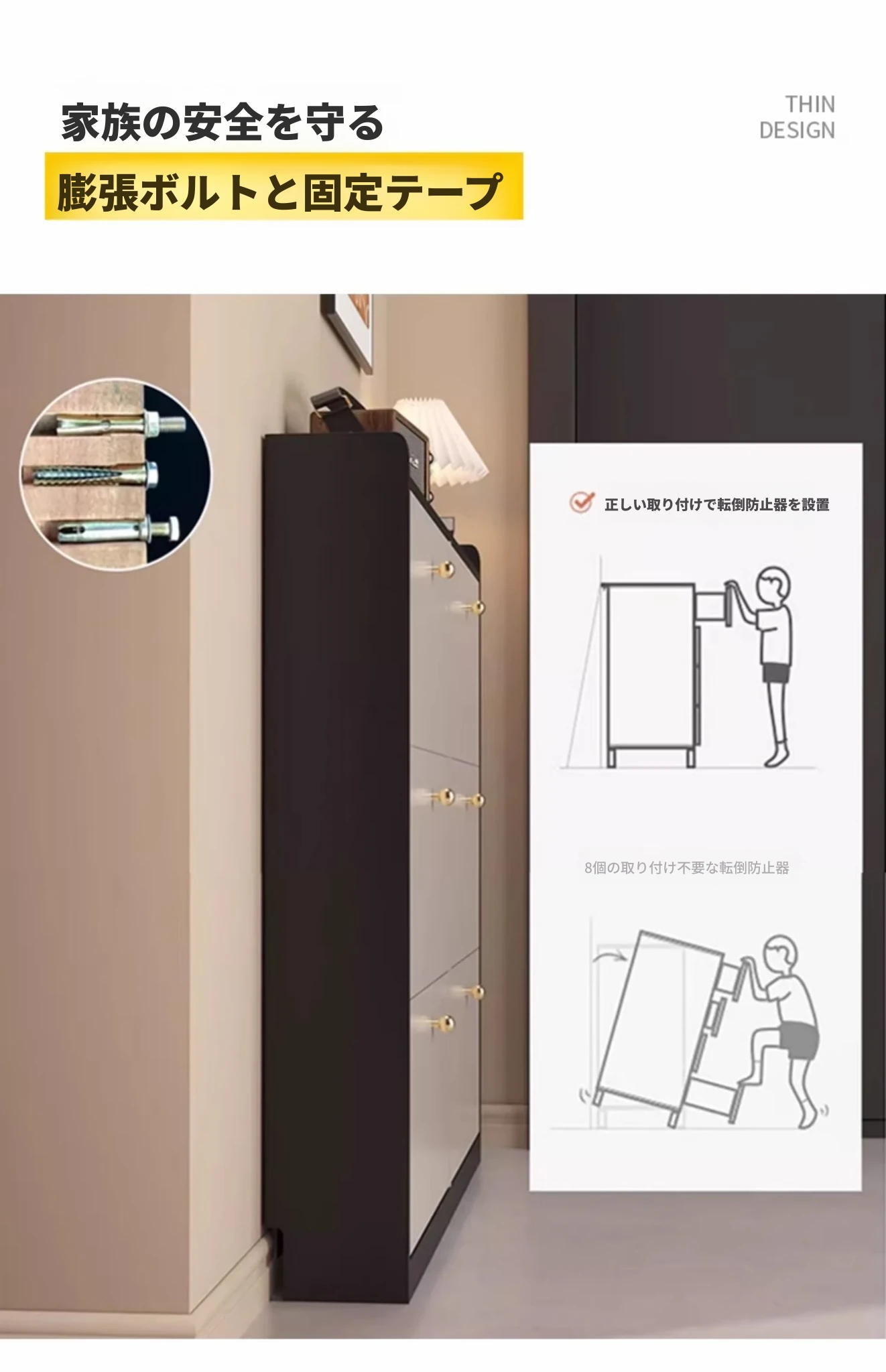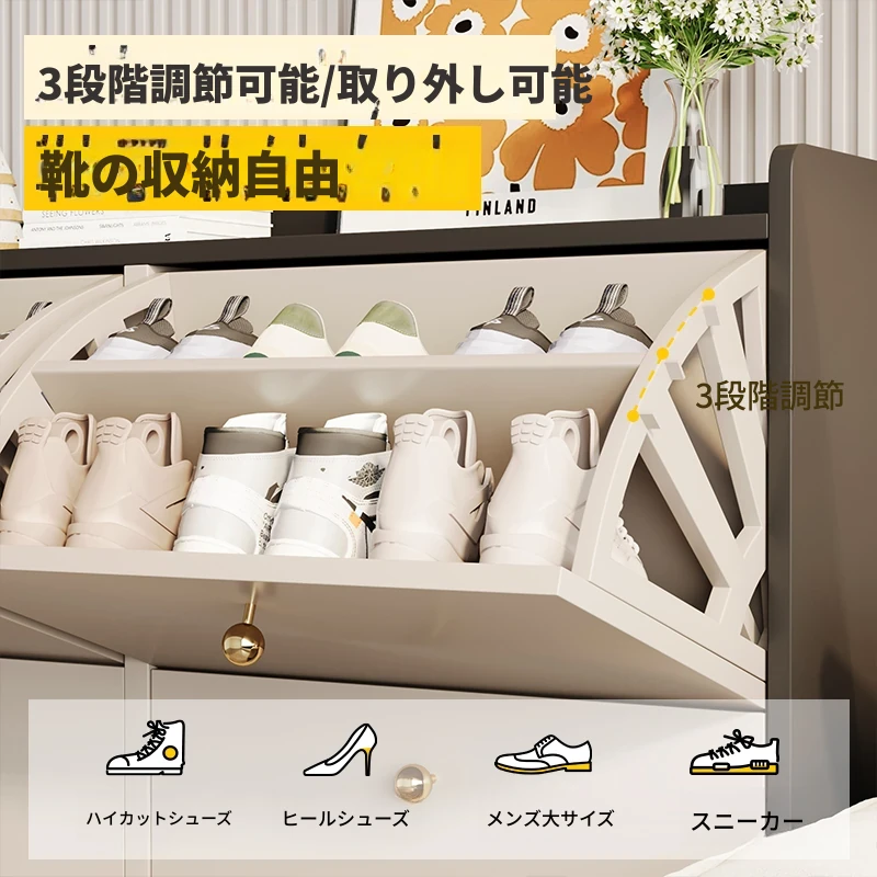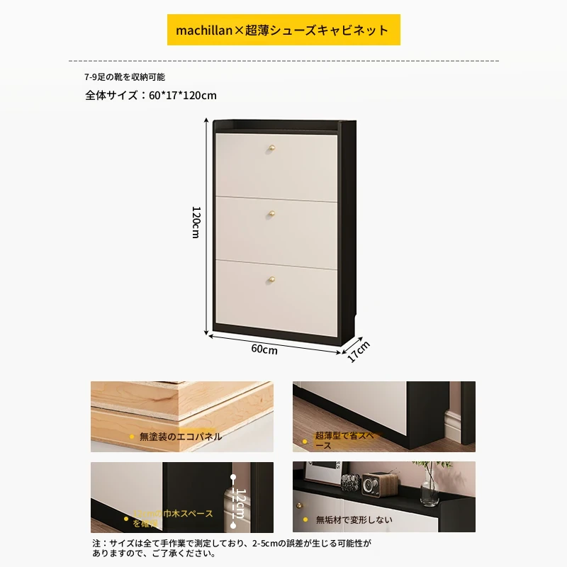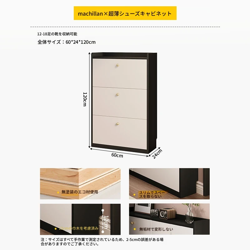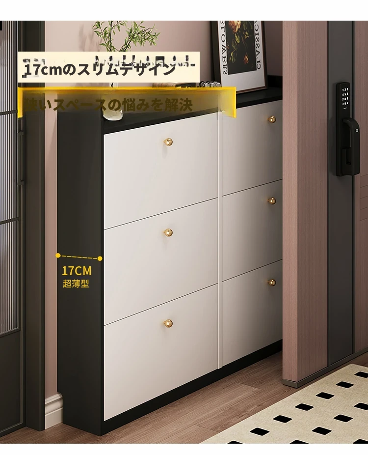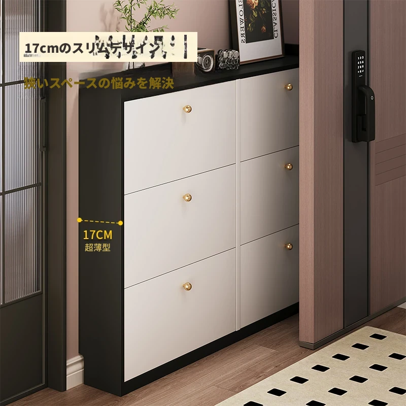 超スリムな無垢材シューズキャビネット - 室内用の小型収納棚、壁にぴったりフィット!玄関や入居スペースに最適なスタイリッシュなシューズラックで、限られたスペースでもおしゃれに収納!
