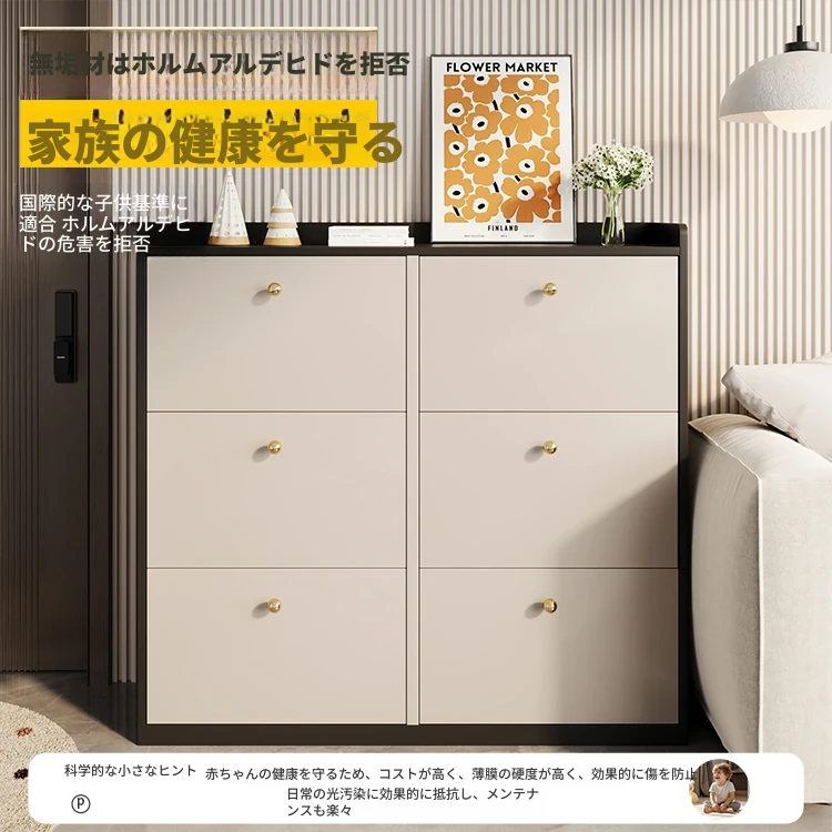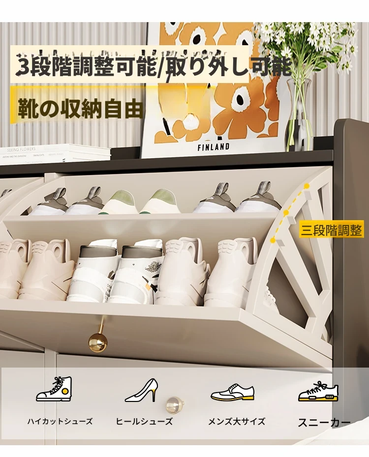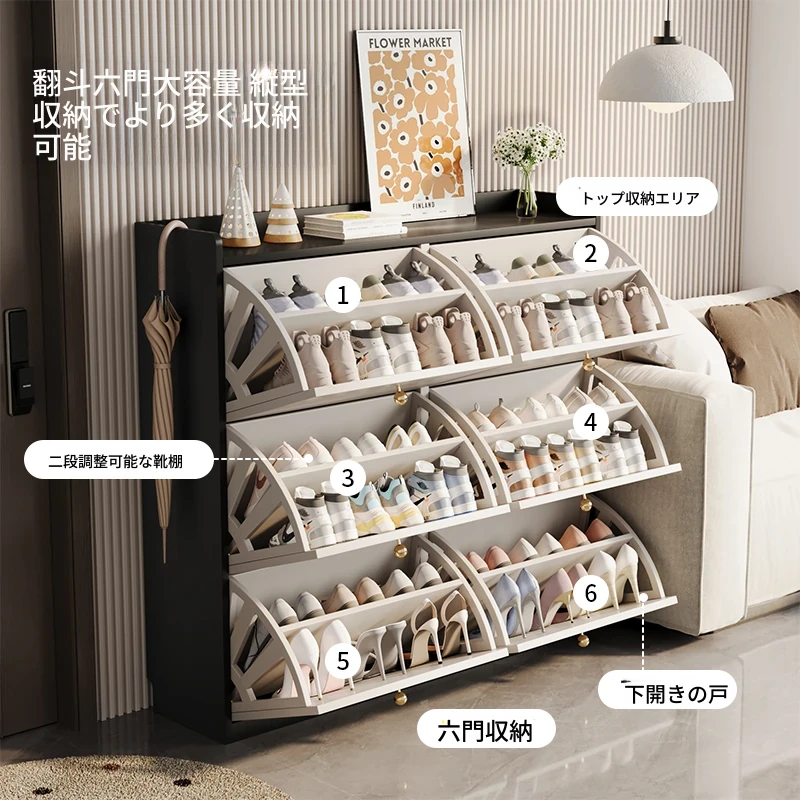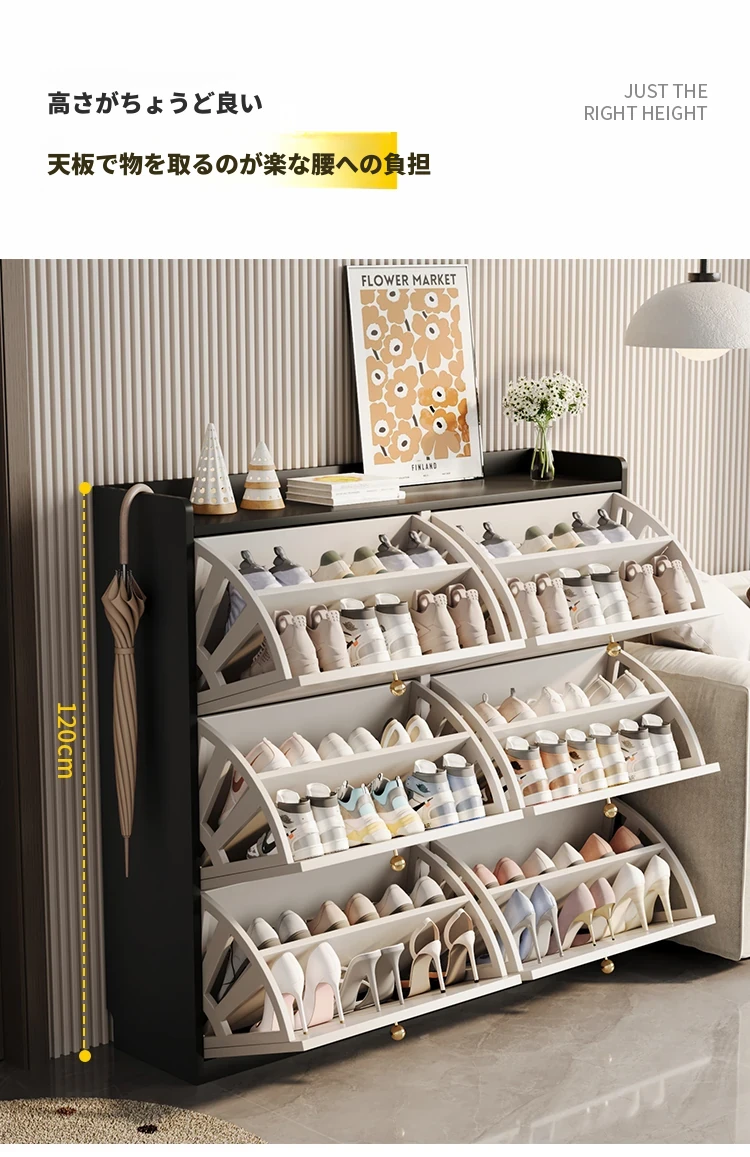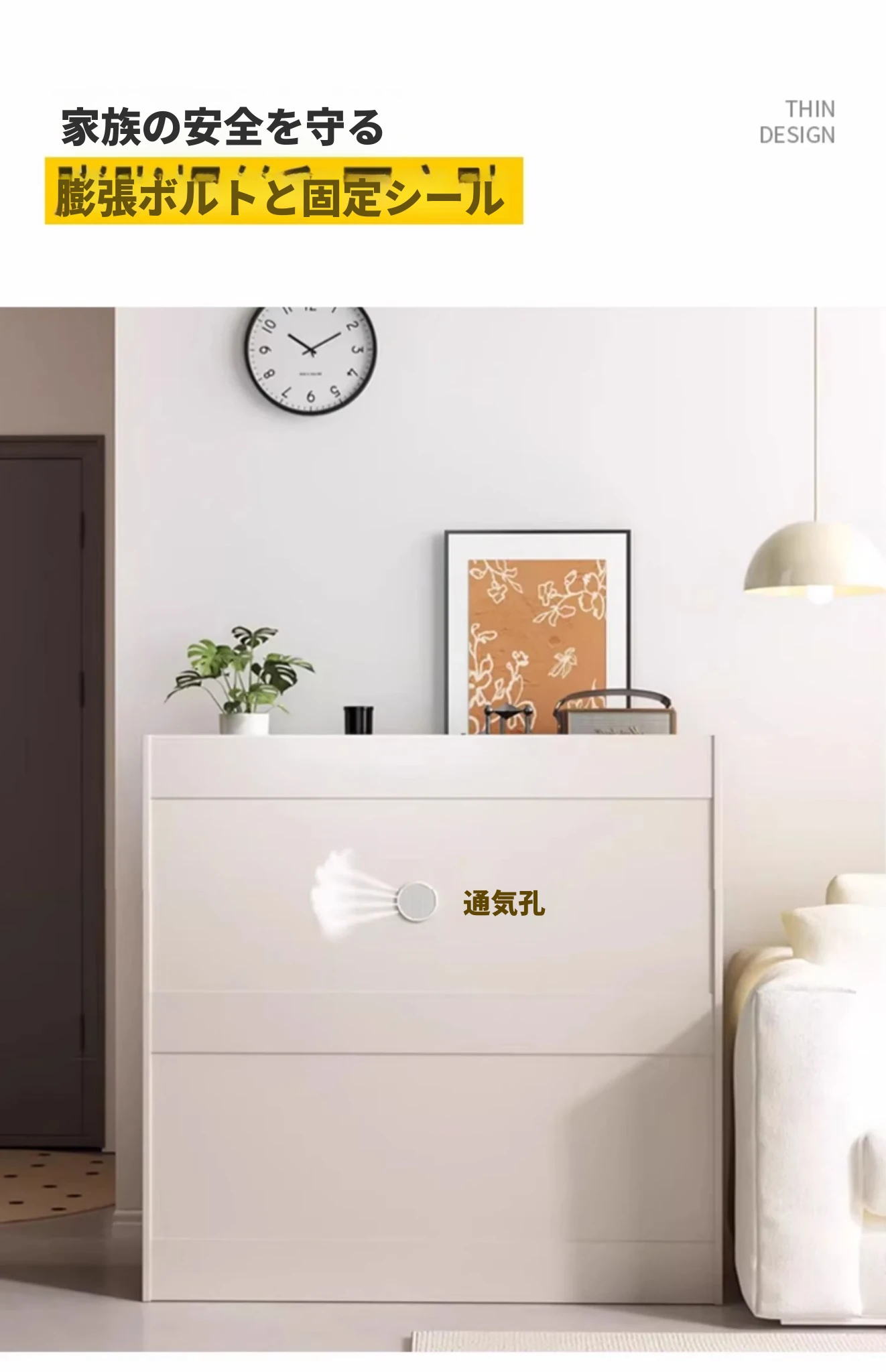 超スリムな無垢材シューズキャビネット - 室内用の小型収納棚、壁にぴったりフィット!玄関や入居スペースに最適なスタイリッシュなシューズラックで、限られたスペースでもおしゃれに収納!