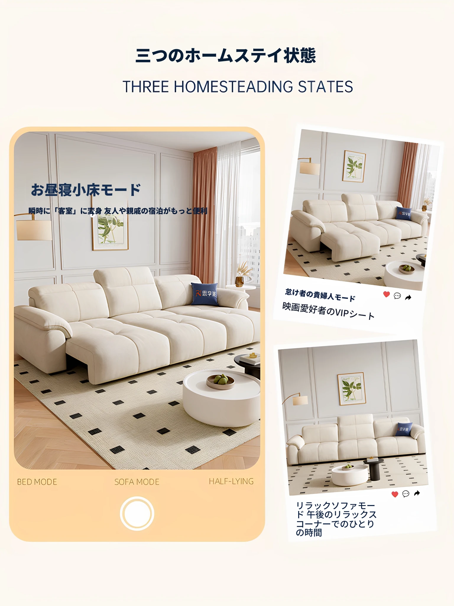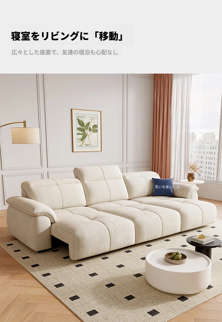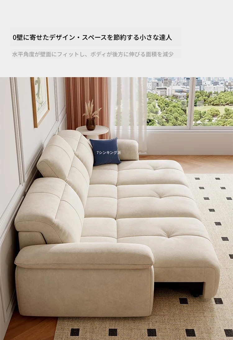 思享派小型猫抓布ソファー - 壁に寄りかからないデザイン!リビングにぴったりなフワフワのクリーム風折りたたみソファベッドで、快適なひとときをお楽しみください。