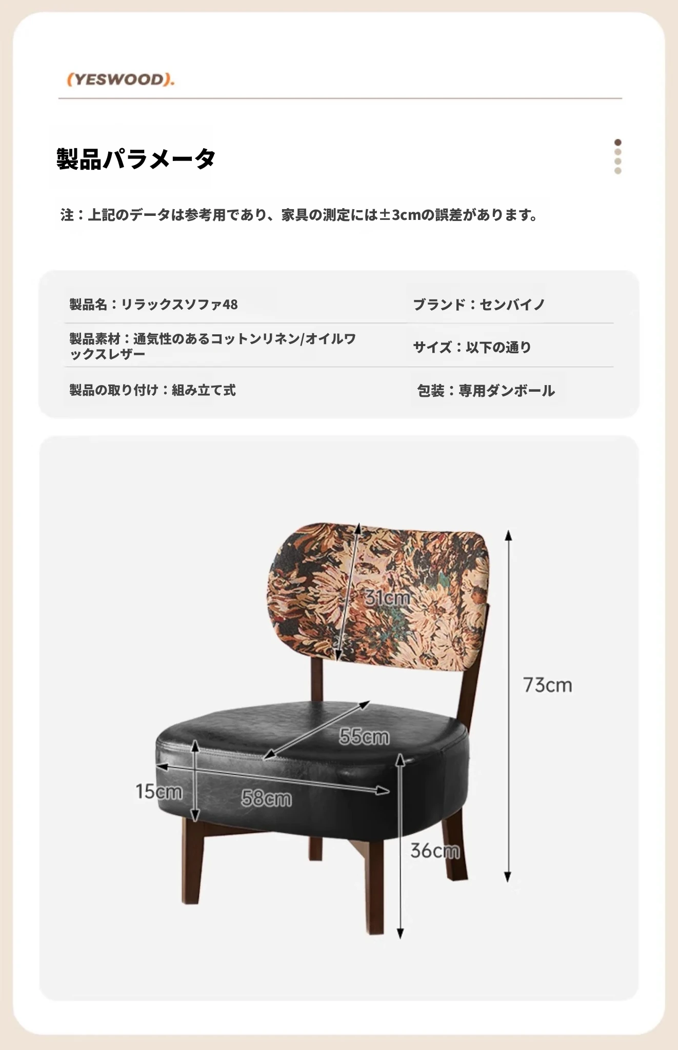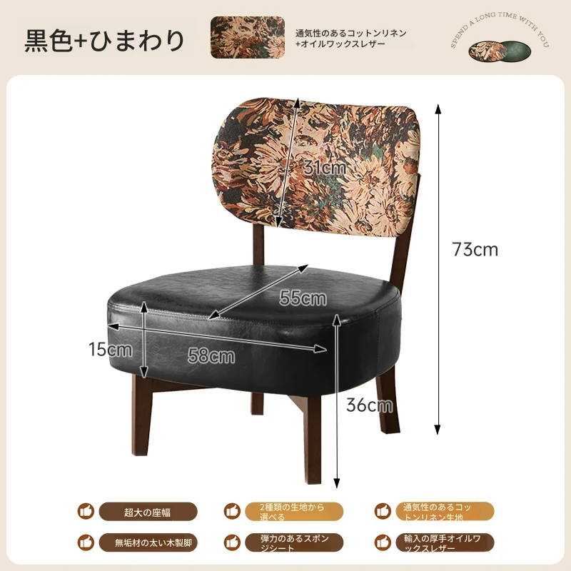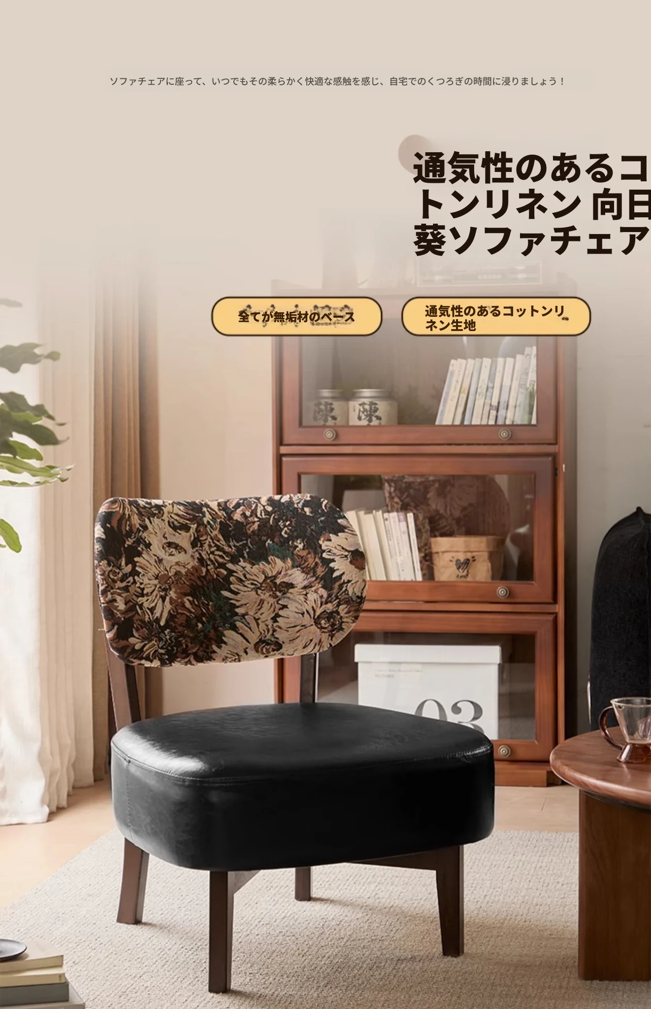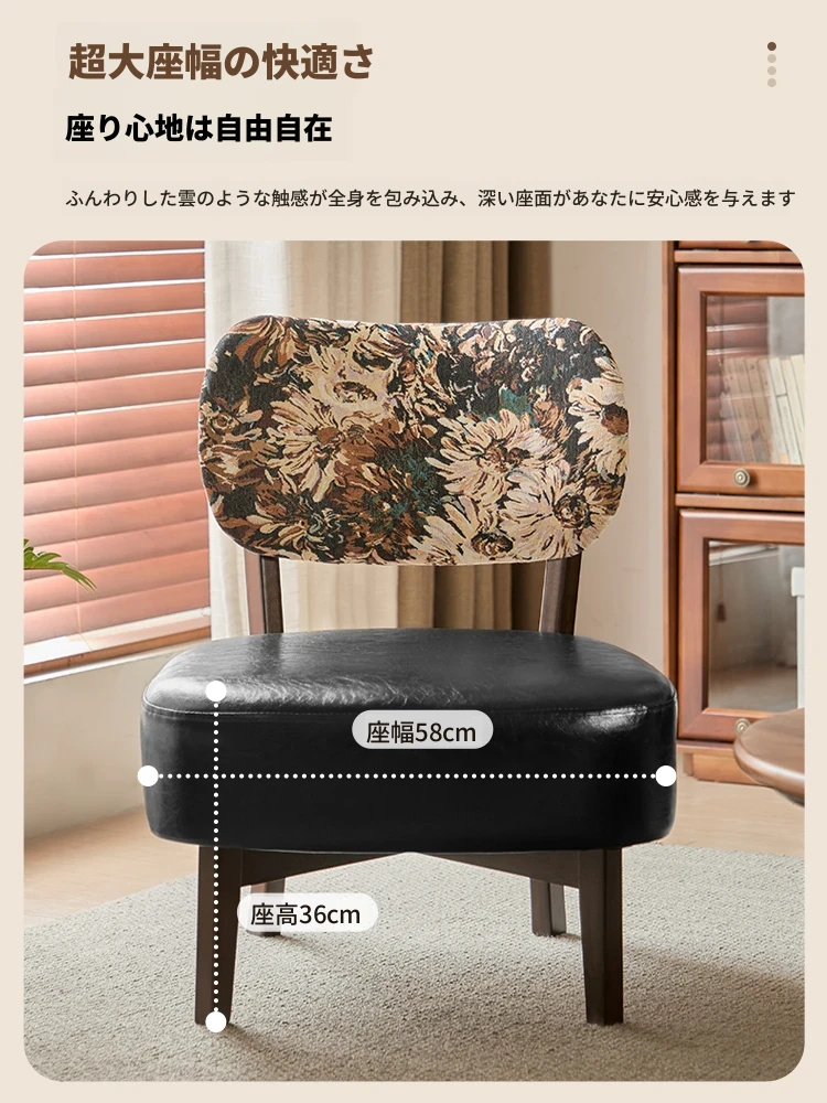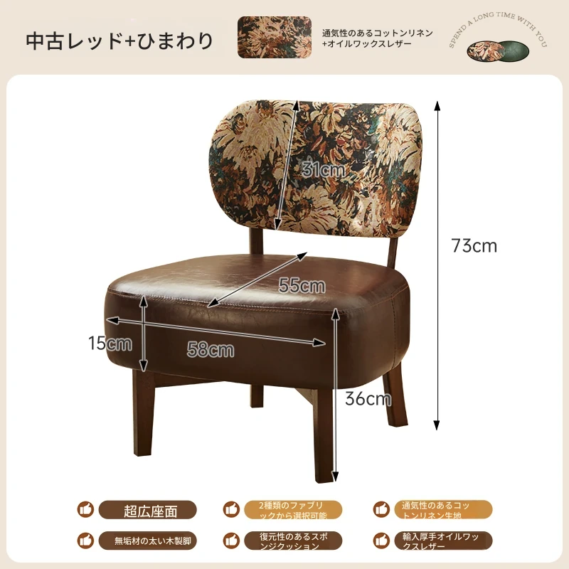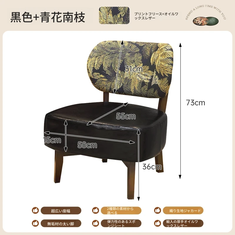 天然木製のリラックスチェア|家庭用・寝室・バルコニーに最適な快適な背もたれ付きソファ|一人掛けソファでくつろぎのひとときを!
