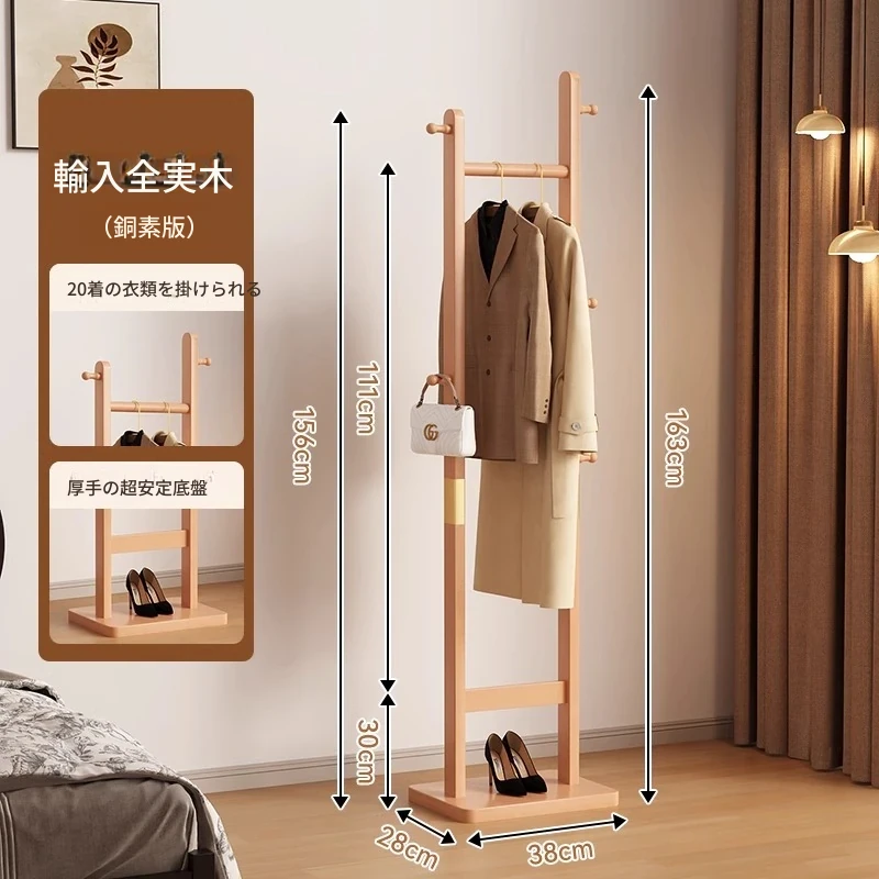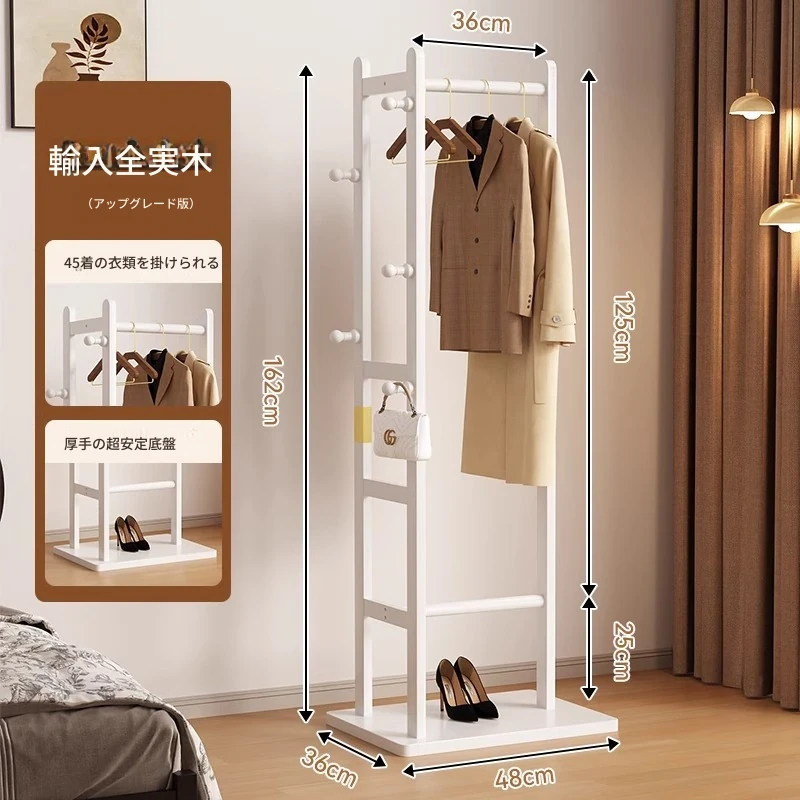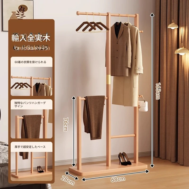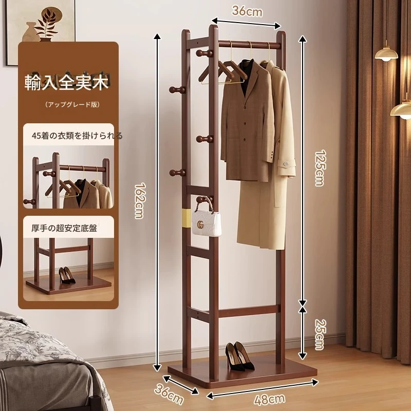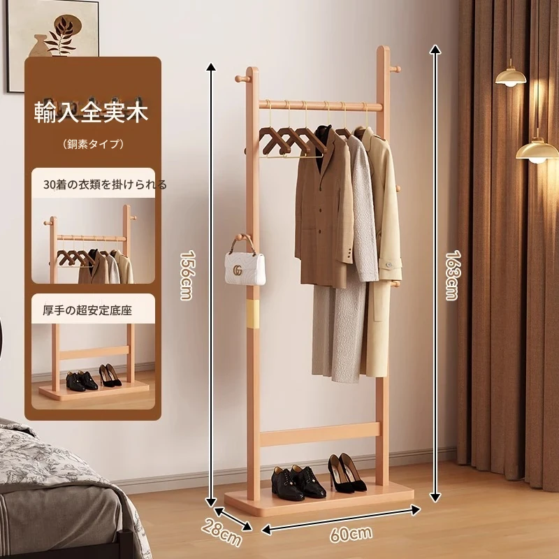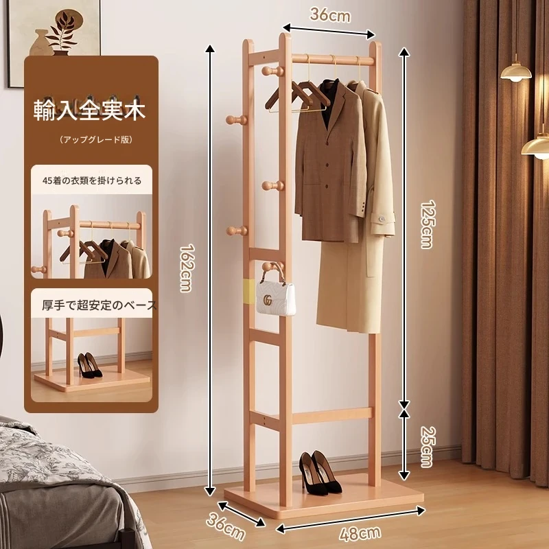 【輸入全ての無垢材-アップグレード版】ナチュラルカラー【45着の衣類を掛けることができます】