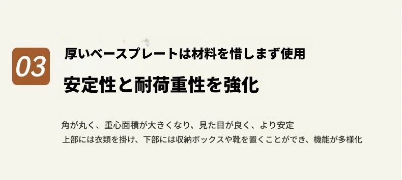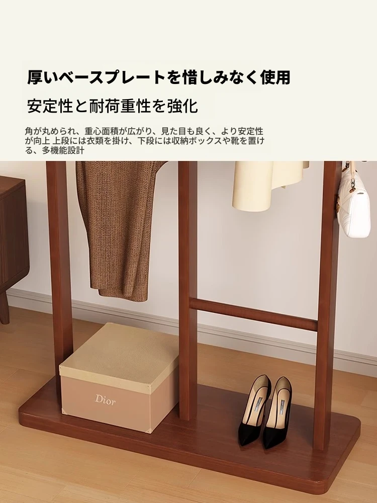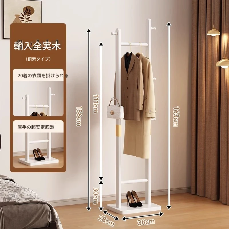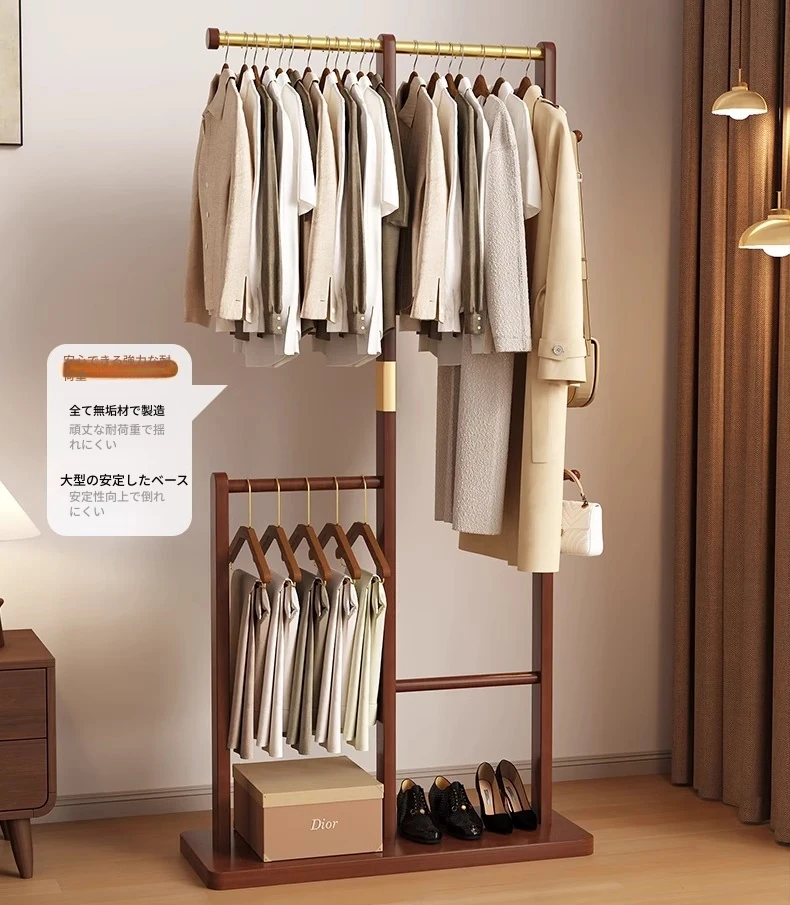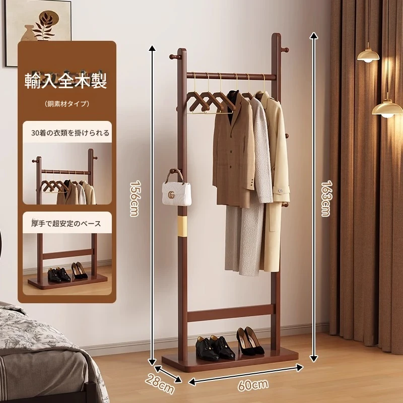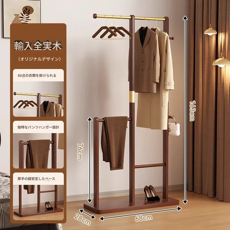 【輸入全ての無垢材-アップグレード版】ナチュラルカラー【45着の衣類を掛けることができます】