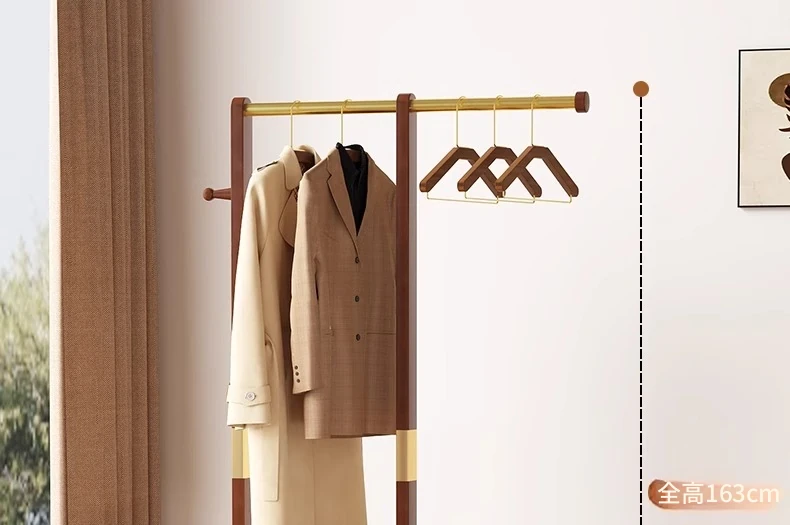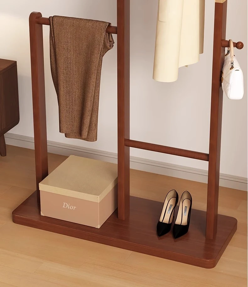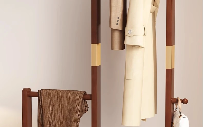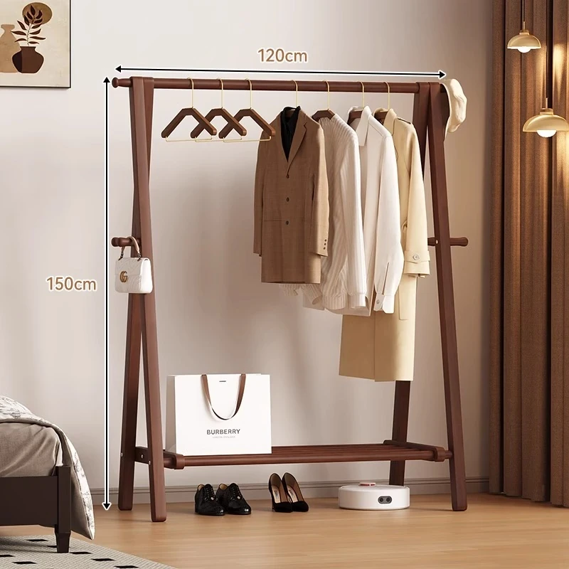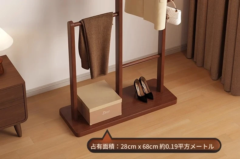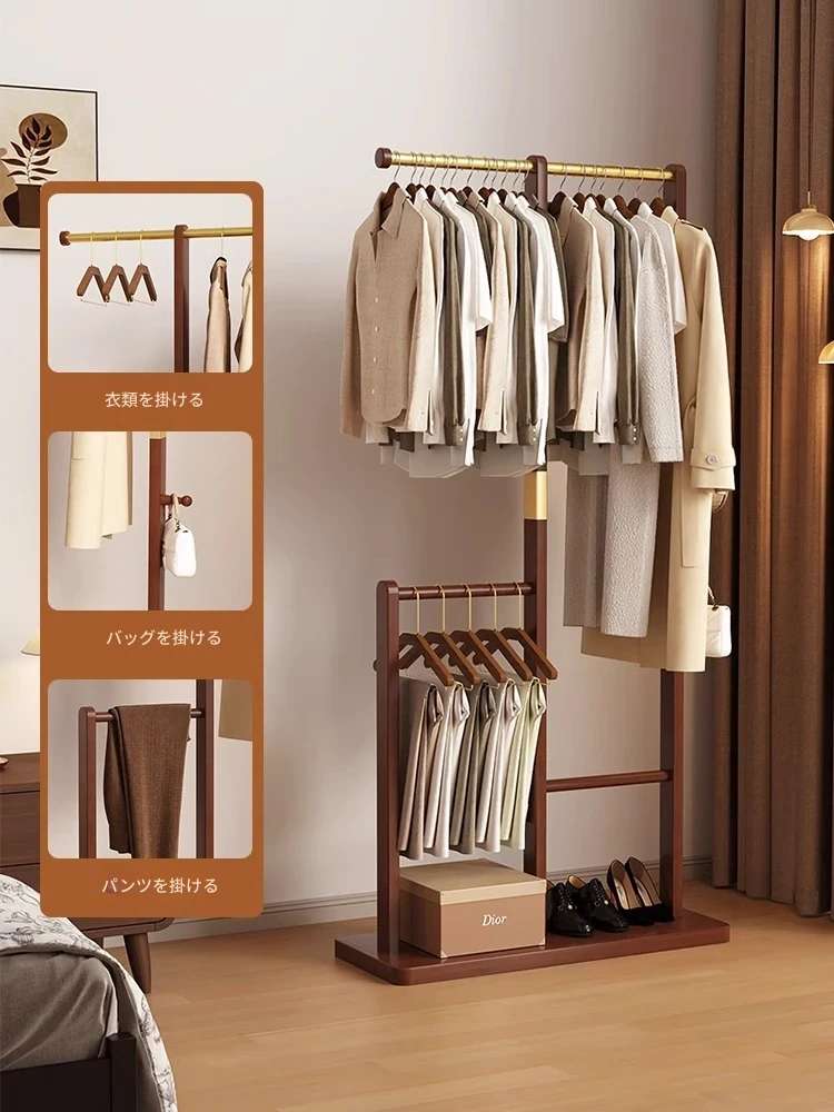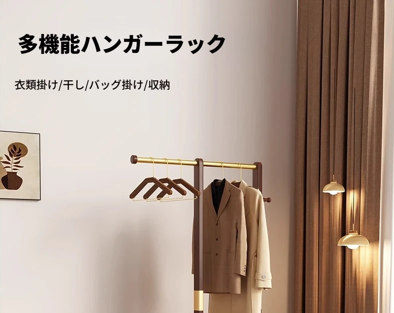 天然木製のフロアハンガー - 寝室や玄関に最適!衣類をすっきり収納できるスタイリッシュな衣帽架。ベッドサイドに置いて便利な衣服掛けとしても活躍!あなたの生活空間をおしゃれに演出します。