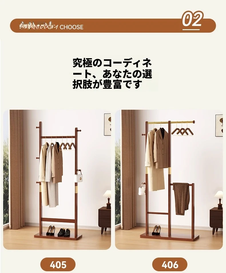 【輸入全ての無垢材-アップグレード版】コーヒーカラー【45着の衣類を掛けることができます】