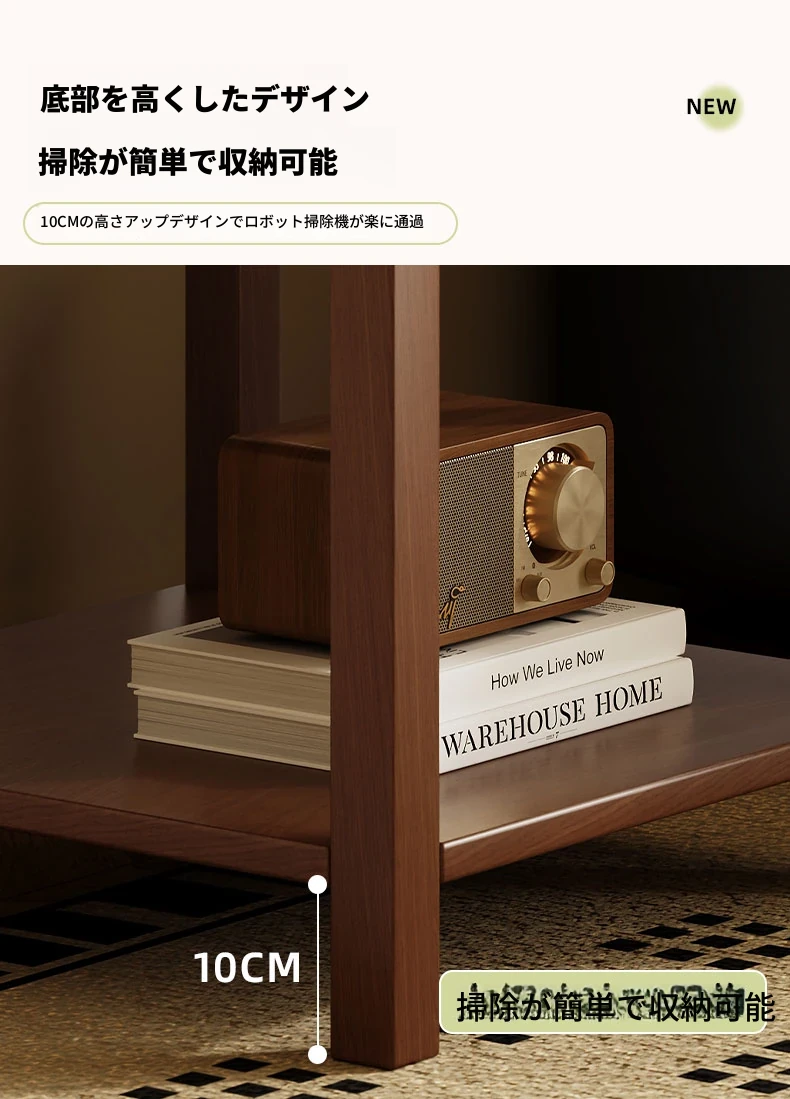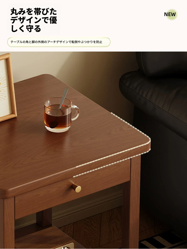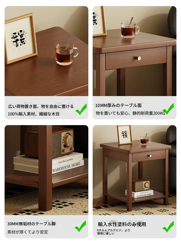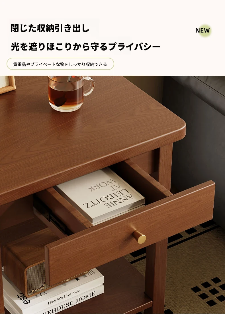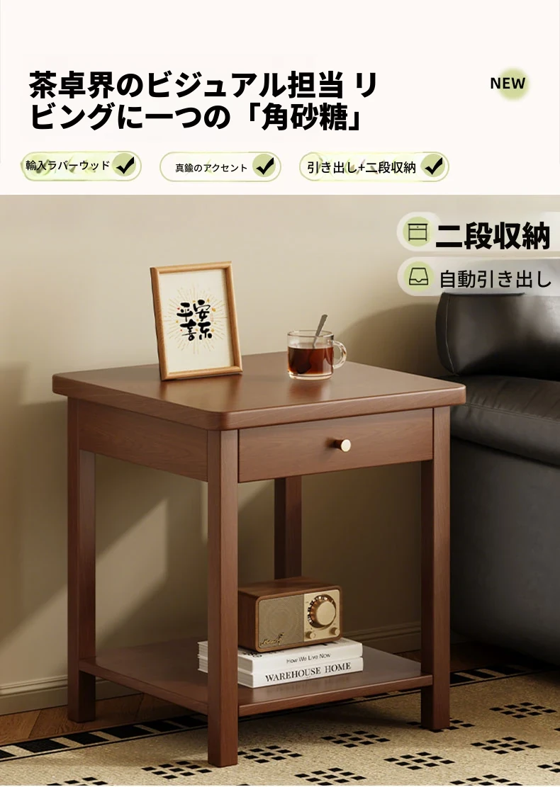 無垢材の小さなサイドテーブル - ソファ横にぴったり!収納力抜群のティーテーブル、リビングのアクセントに。ベッドサイドや中古風のインテリアにも最適なシンプルでおしゃれなデザイン。