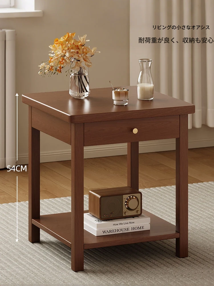 【厳選ラバーウッド】ウォルナットカラー【引き出し付き】40*40*54