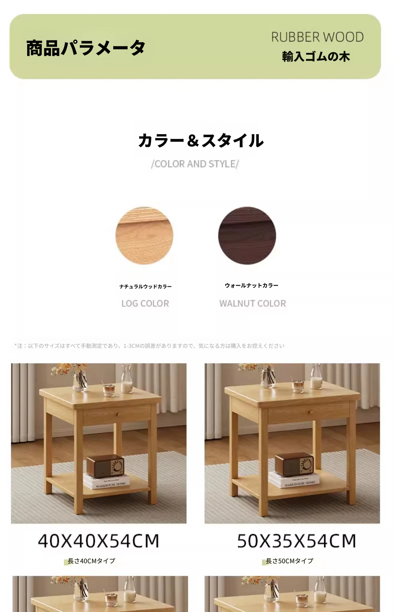 【厳選ラバーウッド】ナチュラルカラー【引き出し付き】40*40*54