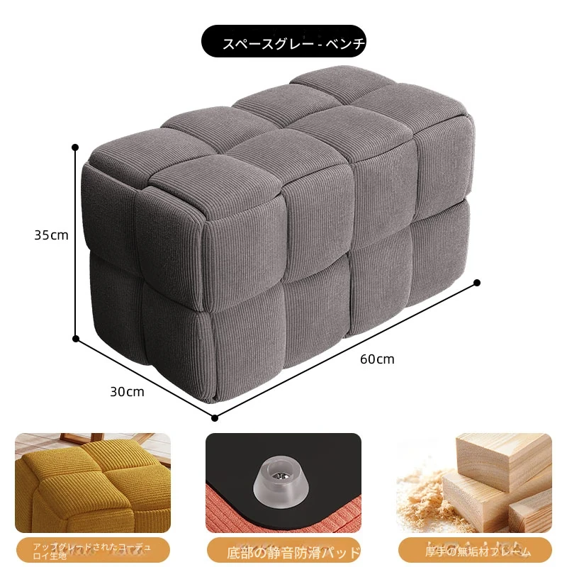 スペースグレー-小サイズ【無垢材構造+コーデュロイ】高強度耐荷重