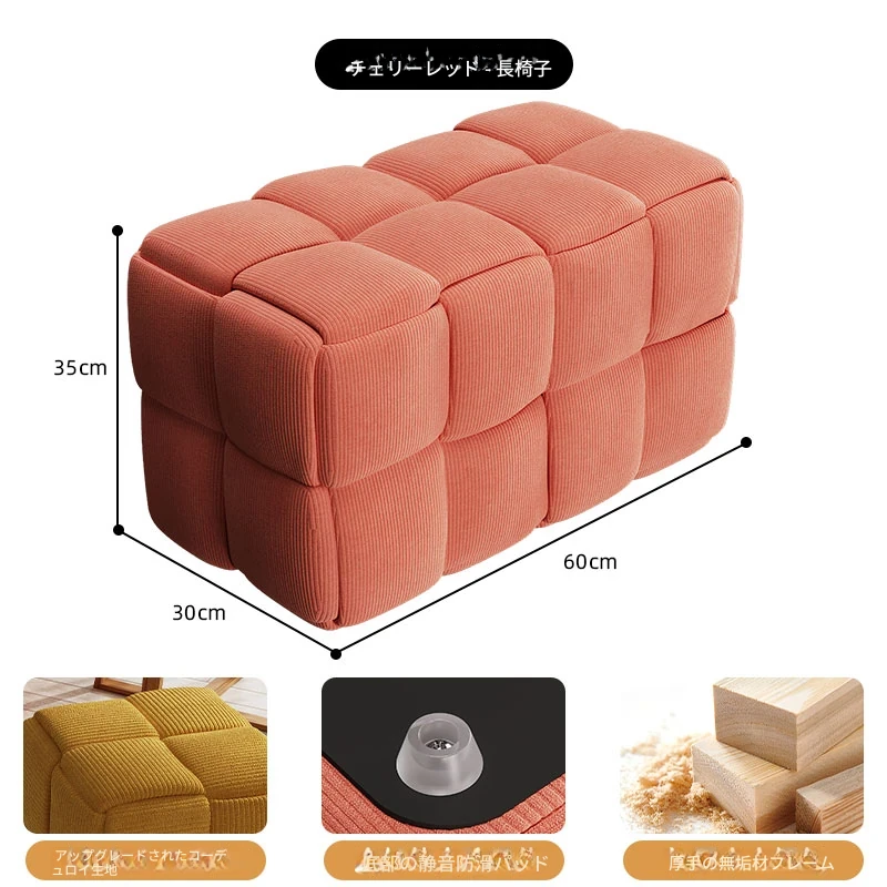 チェリーレッド-小サイズ【無垢材構造+コーデュロイ】高強度耐荷重