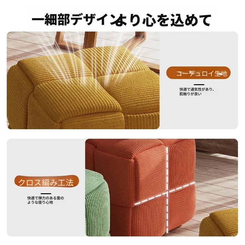 メープルイエロー-小サイズ【無垢材構造+コーデュロイ】高強度耐荷重