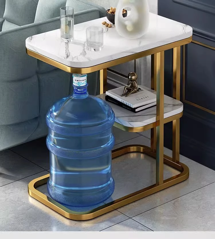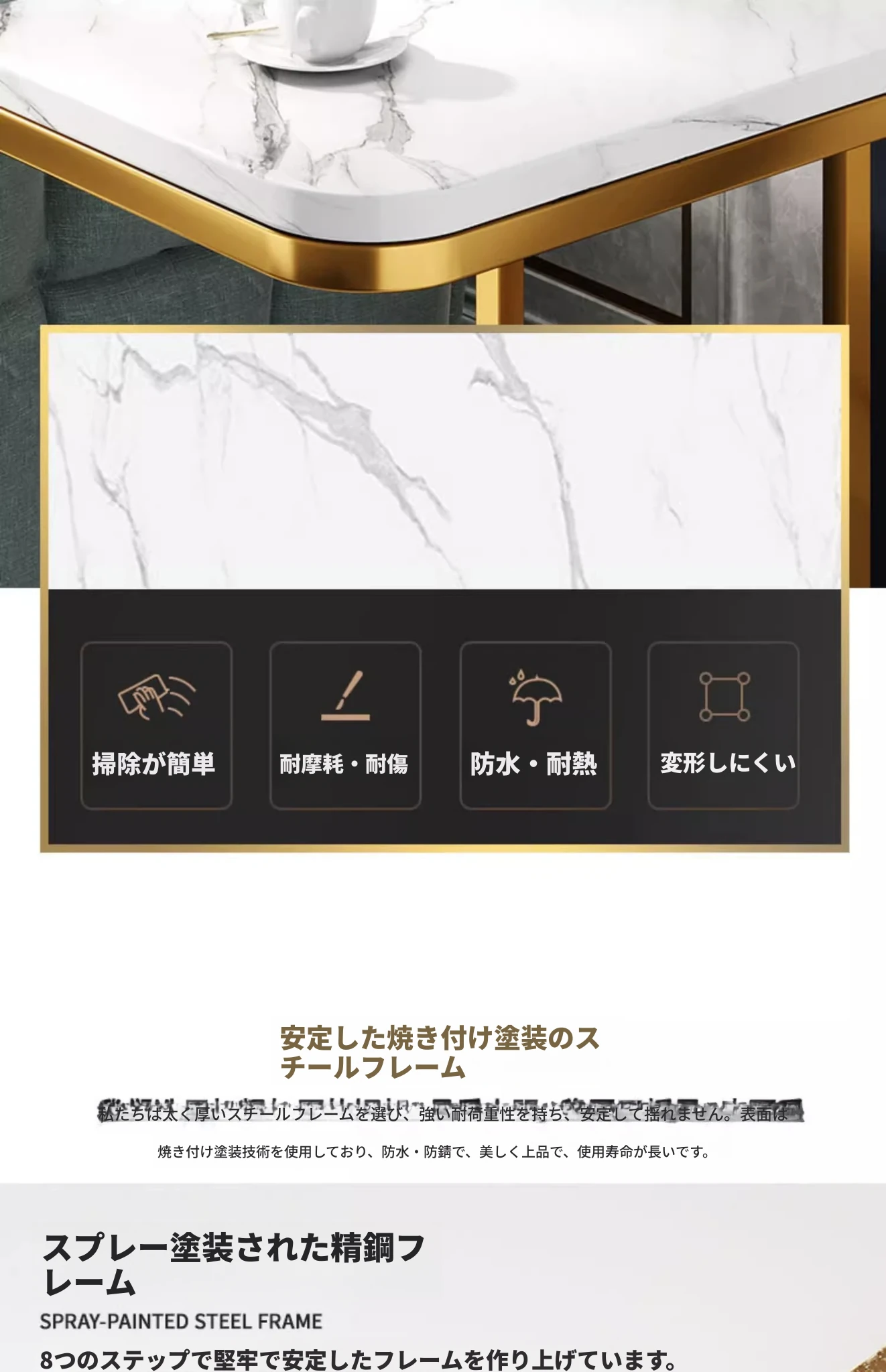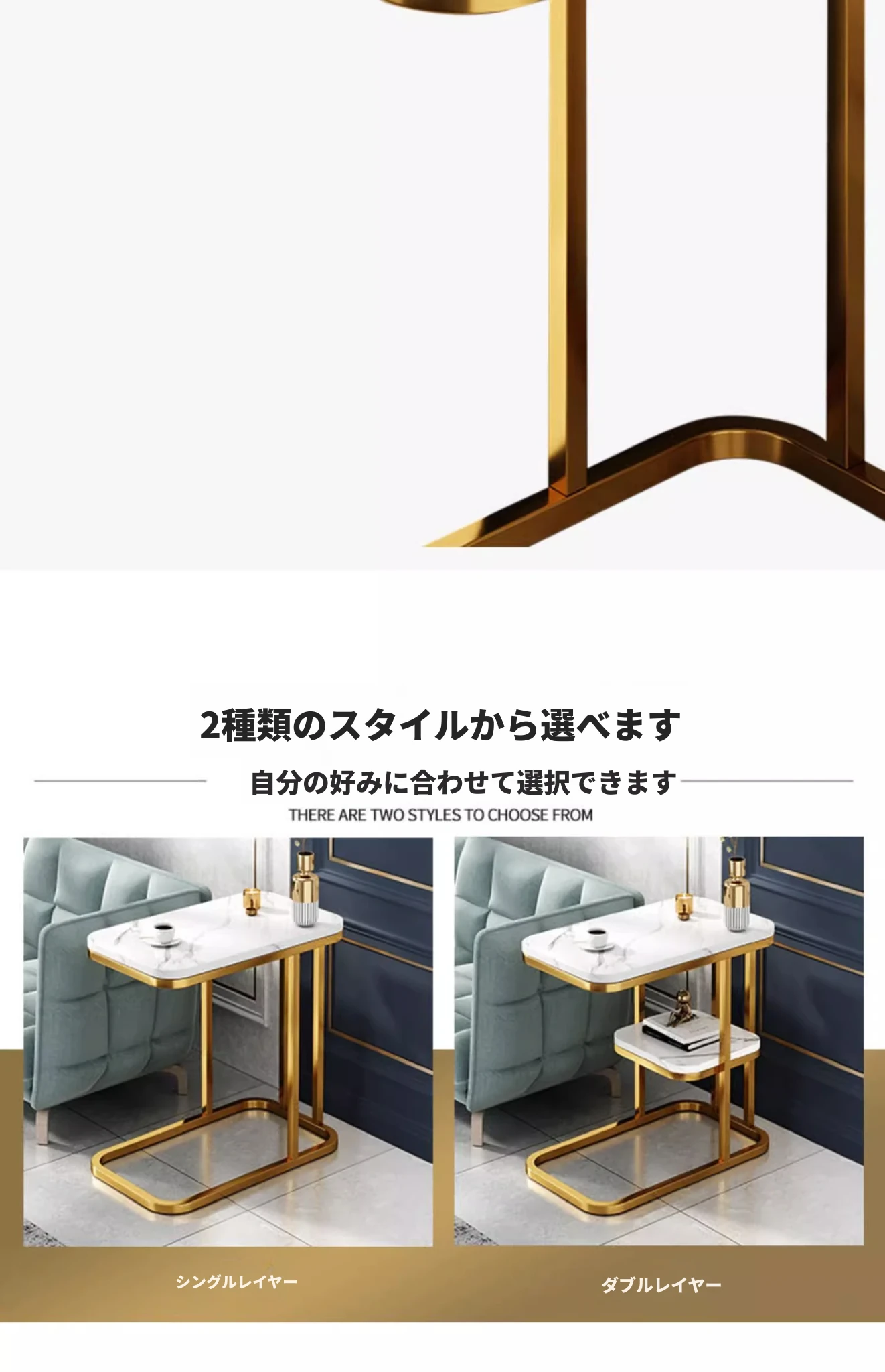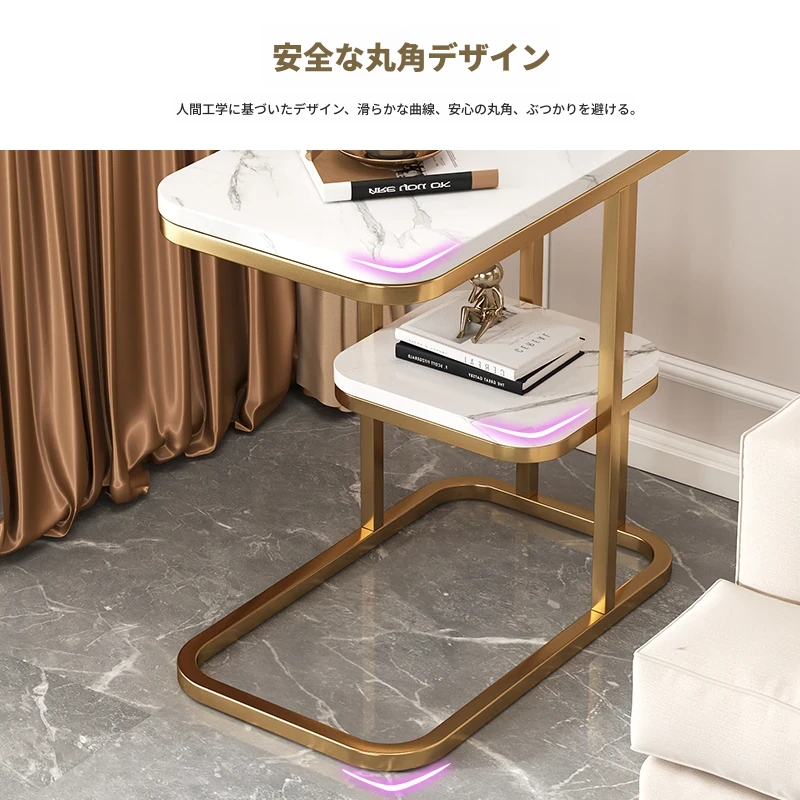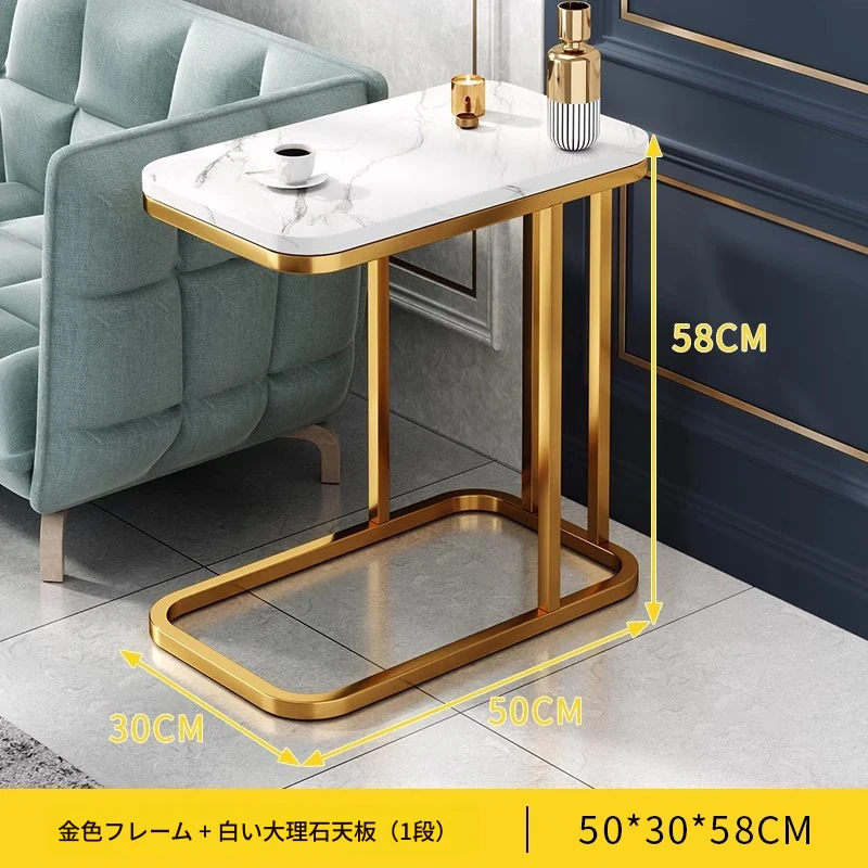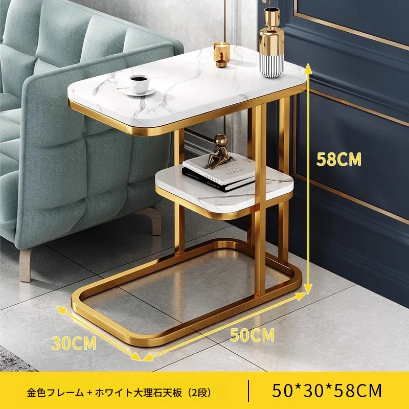 【店長おすすめ】二層金フレーム+白大理石【50*30*58】❤焼付けスチールフレーム