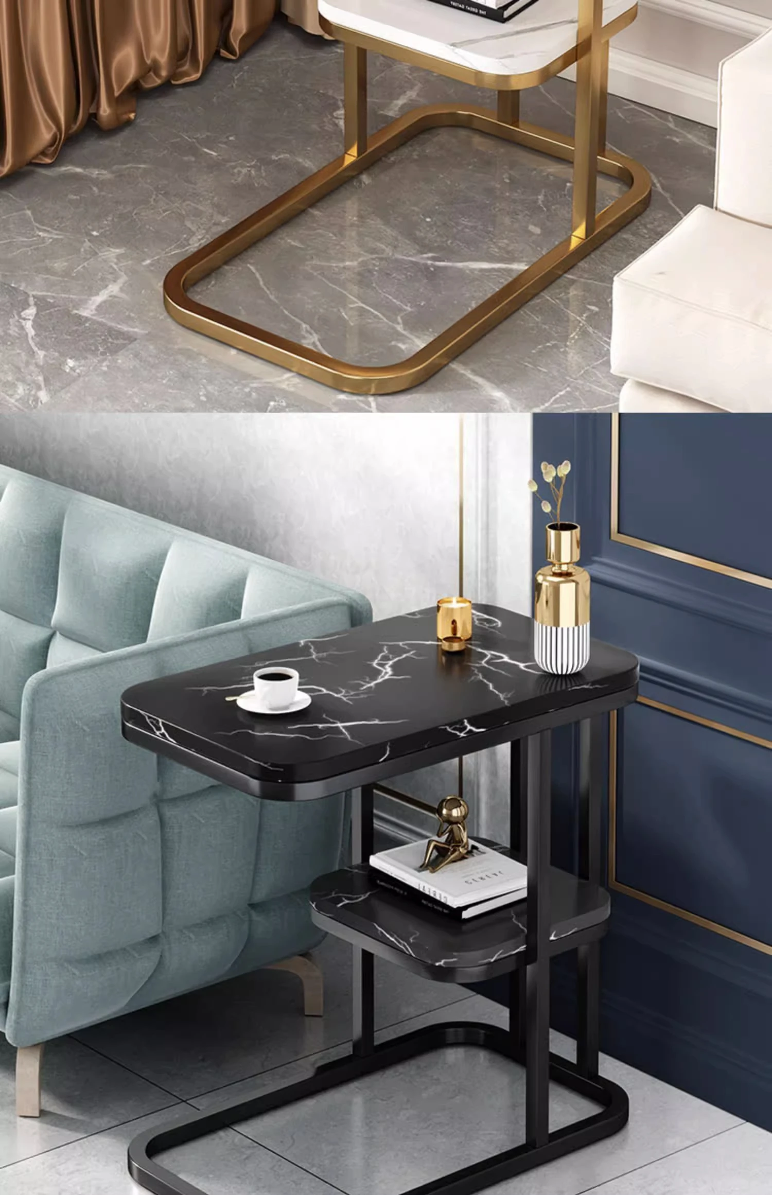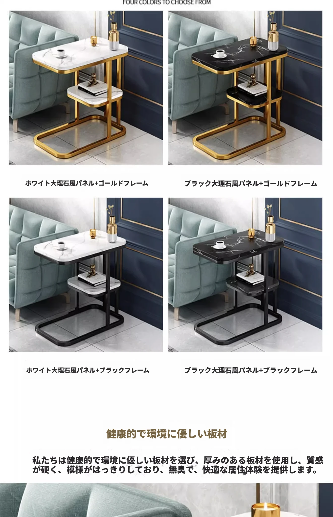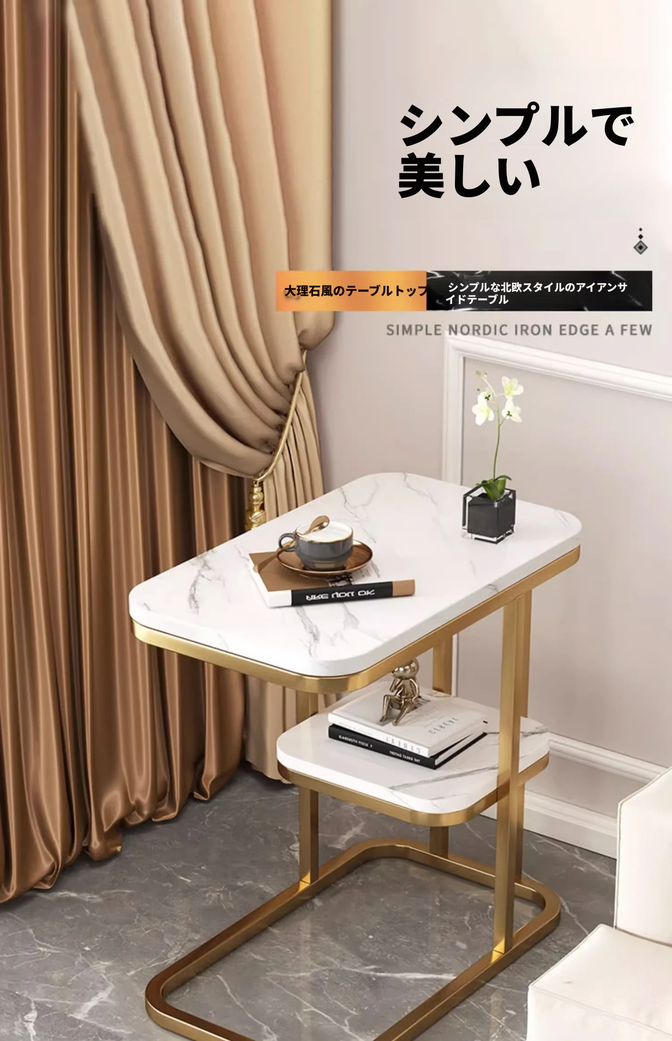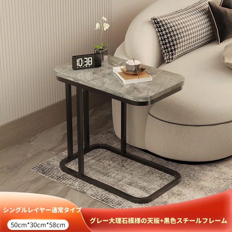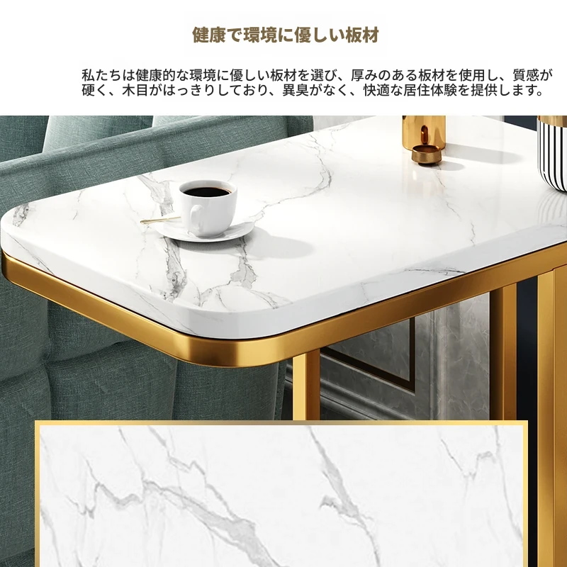 リビングにぴったりのシンプル&モダンなサイドキャビネット!高級感あふれる岩板デザインの角テーブルは、収納力も抜群。おしゃれで機能的なお部屋作りに最適な小型コーヒーテーブルです。