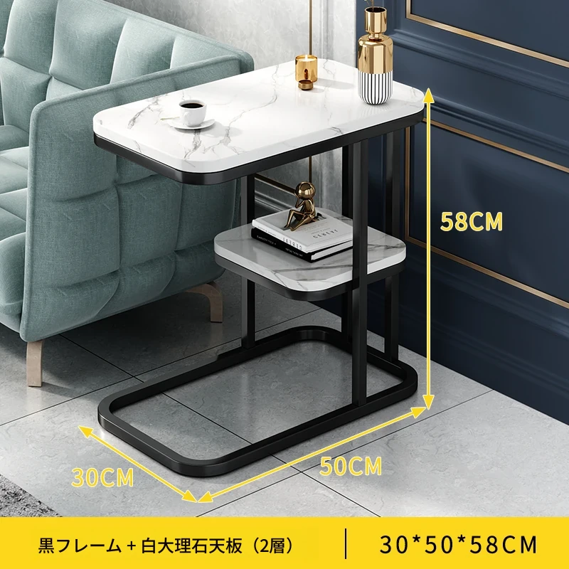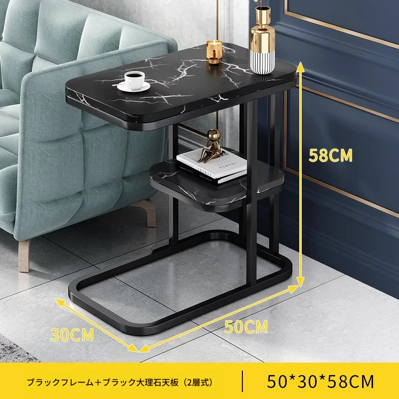 【ヒット商品おすすめ】二層黒フレーム+白大理石【50*30*58】❤焼付けスチールフレーム