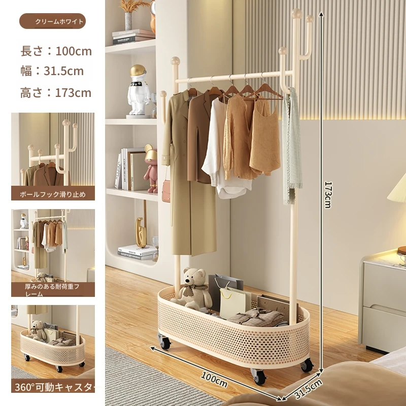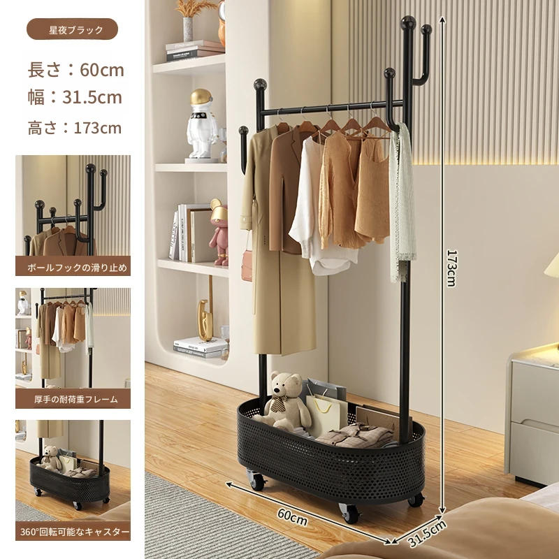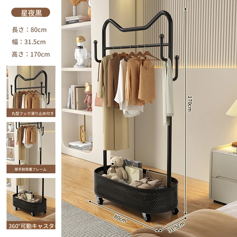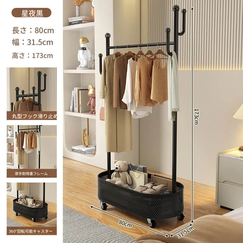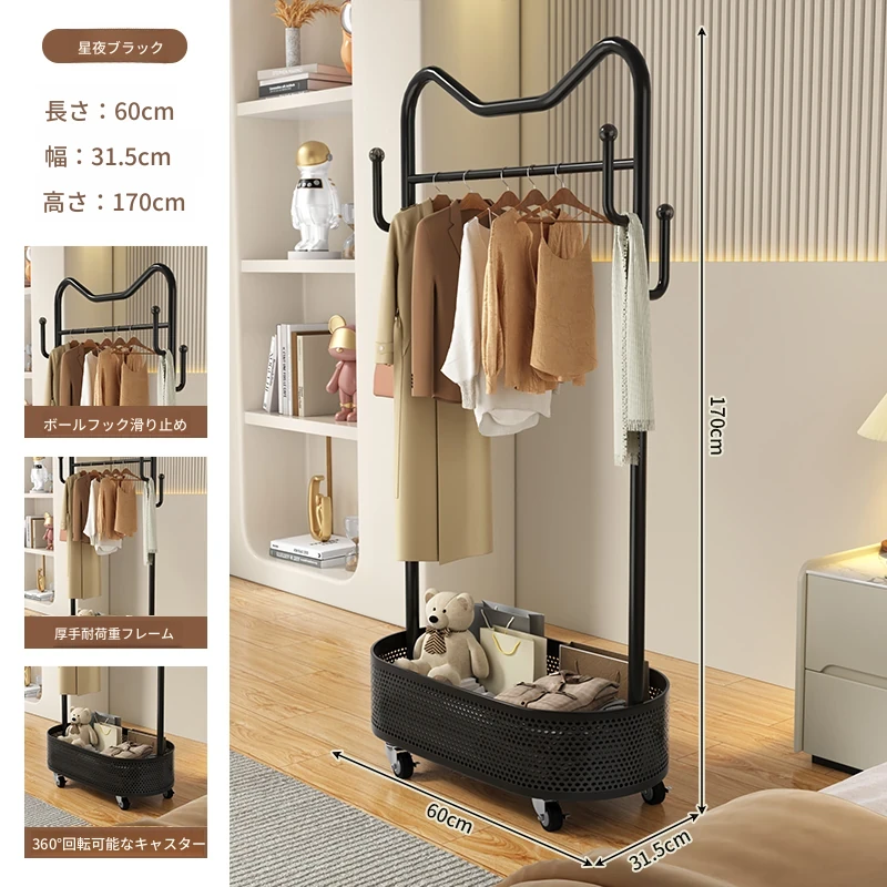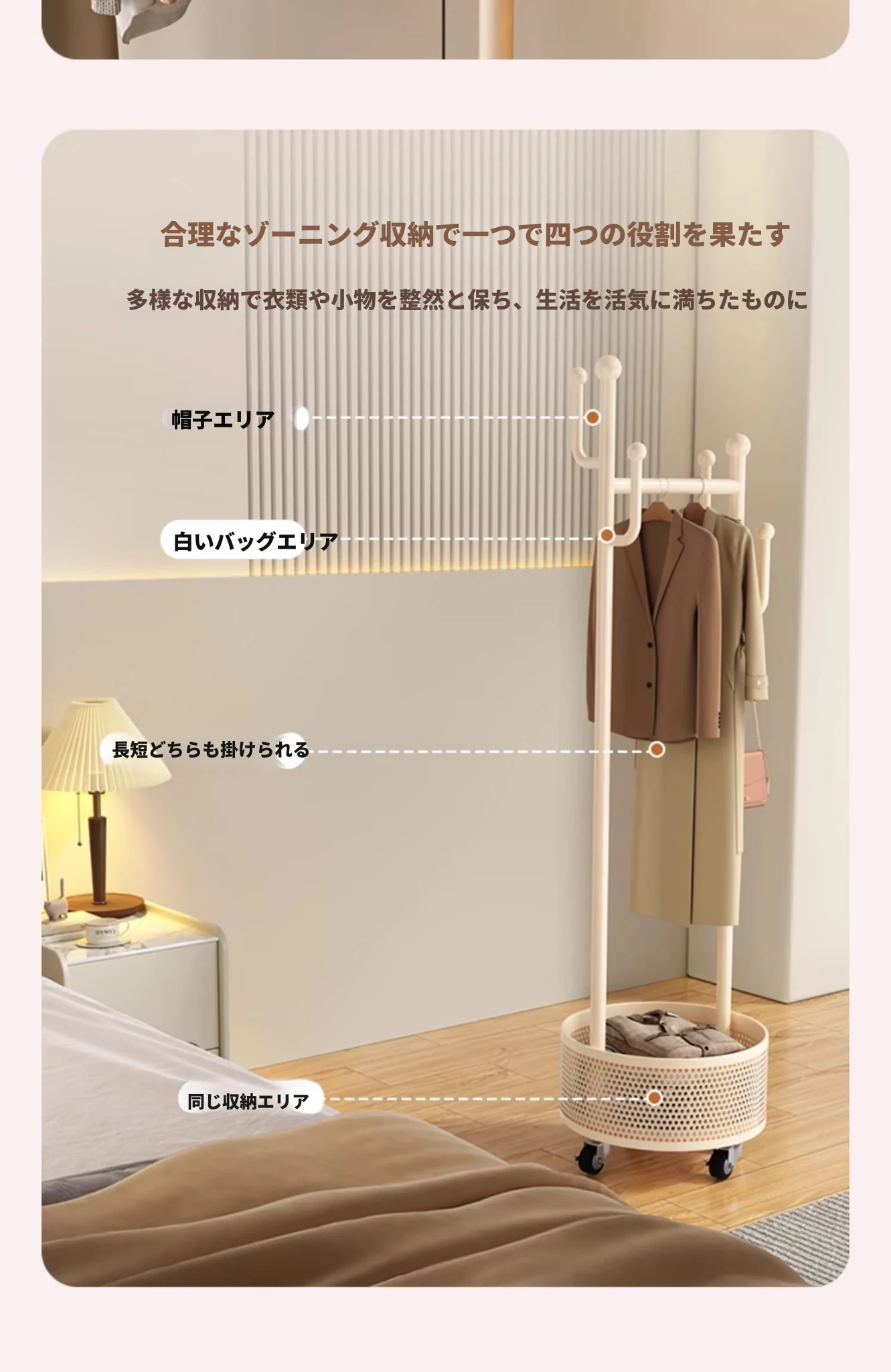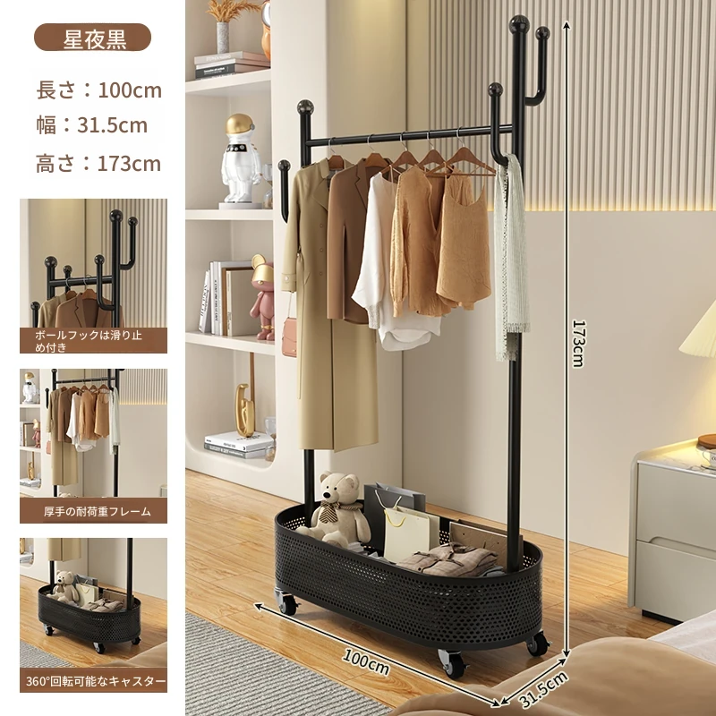 シンプルでスタイリッシュな多機能移動式ハンガーラック - リビングや寝室にぴったりの収納ソリューション!衣類や帽子をすっきり収納し、部屋を美しく演出します。
