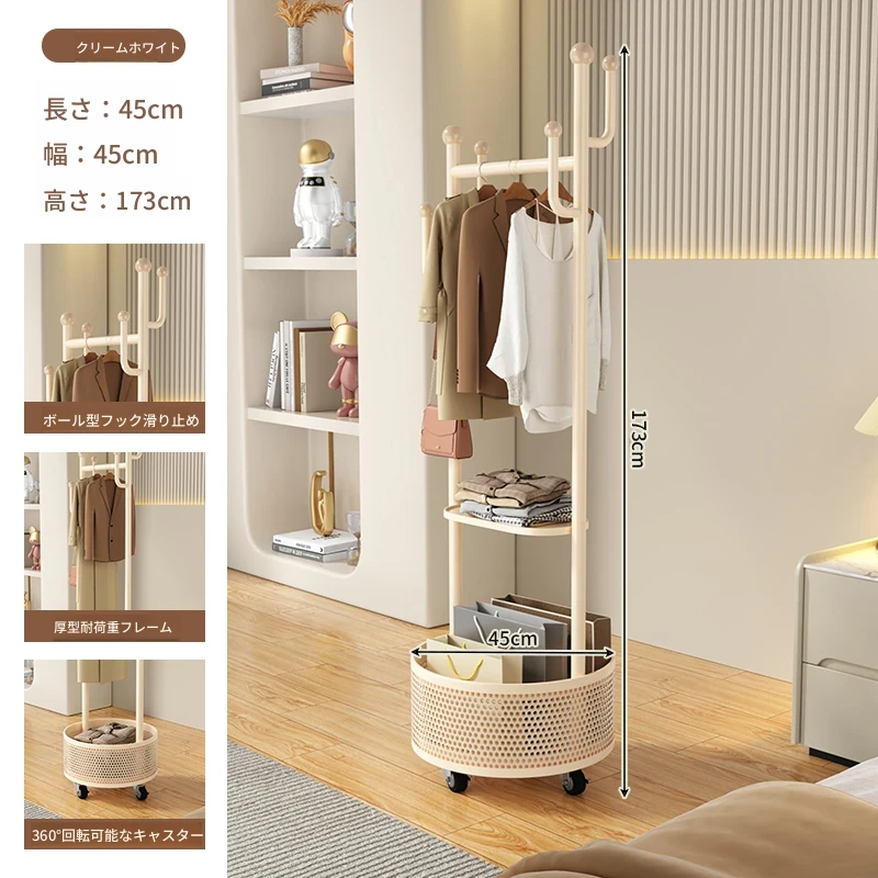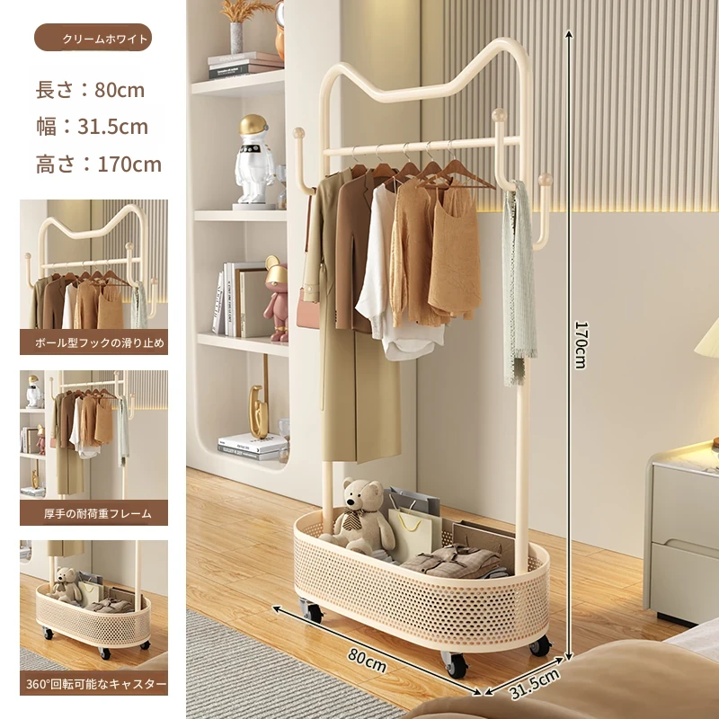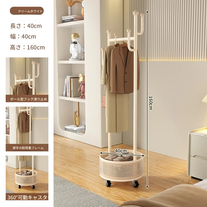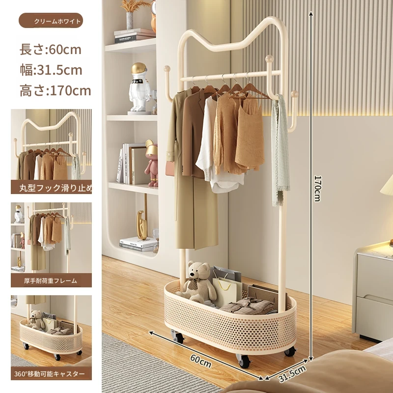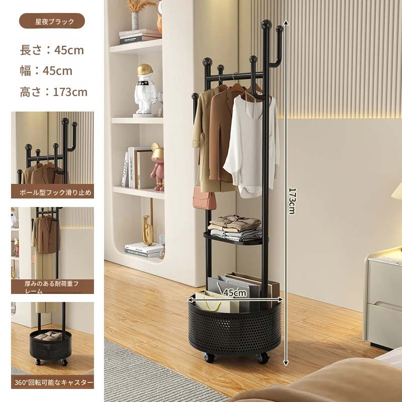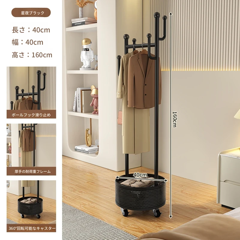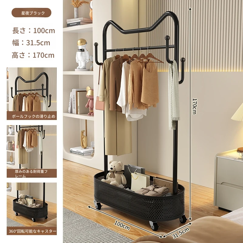 シンプルでスタイリッシュな多機能移動式ハンガーラック - リビングや寝室にぴったりの収納ソリューション!衣類や帽子をすっきり収納し、部屋を美しく演出します。