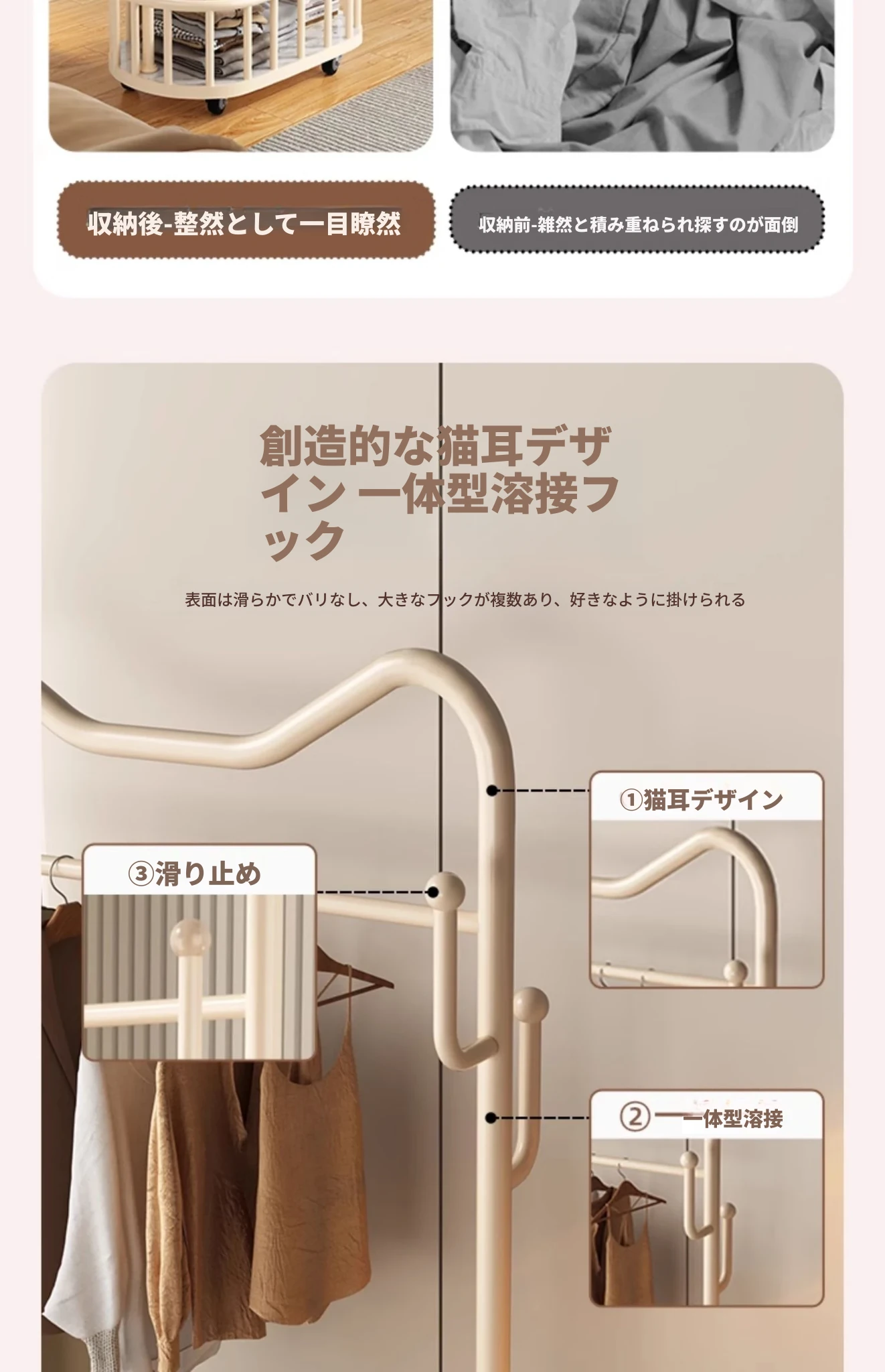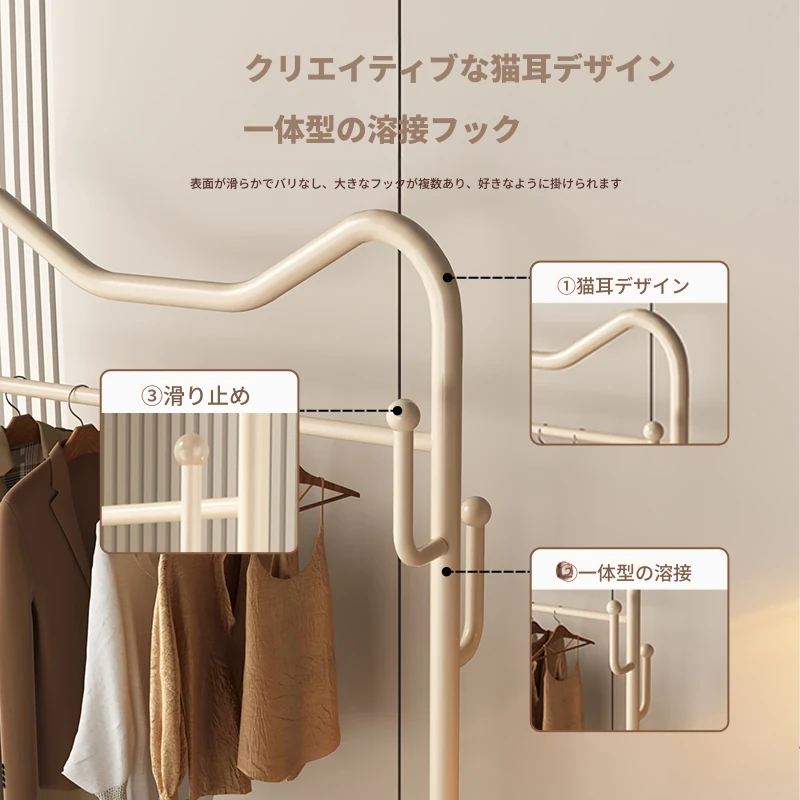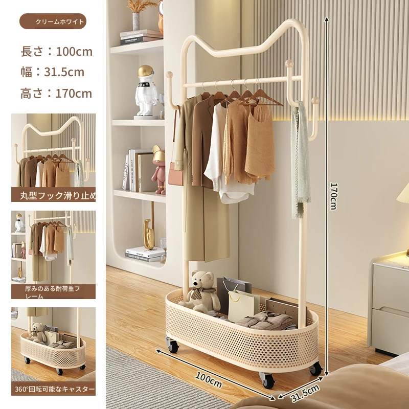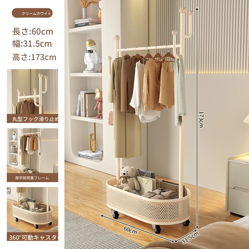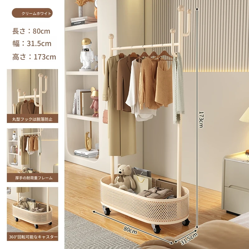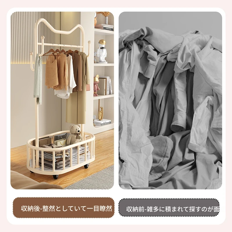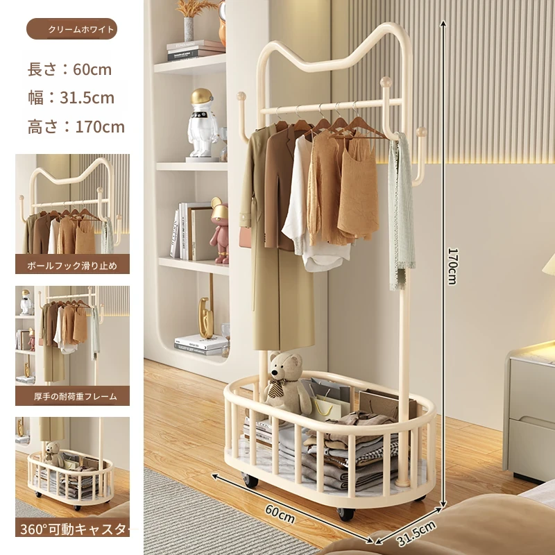 シンプルでスタイリッシュな多機能移動式ハンガーラック - リビングや寝室にぴったりの収納ソリューション!衣類や帽子をすっきり収納し、部屋を美しく演出します。