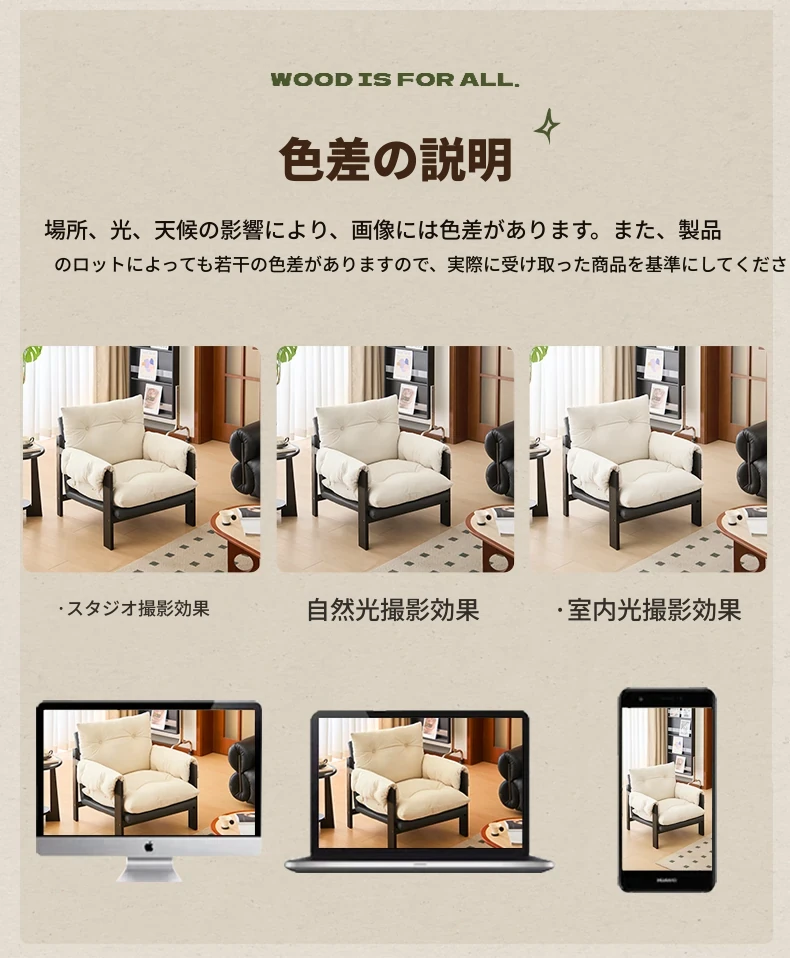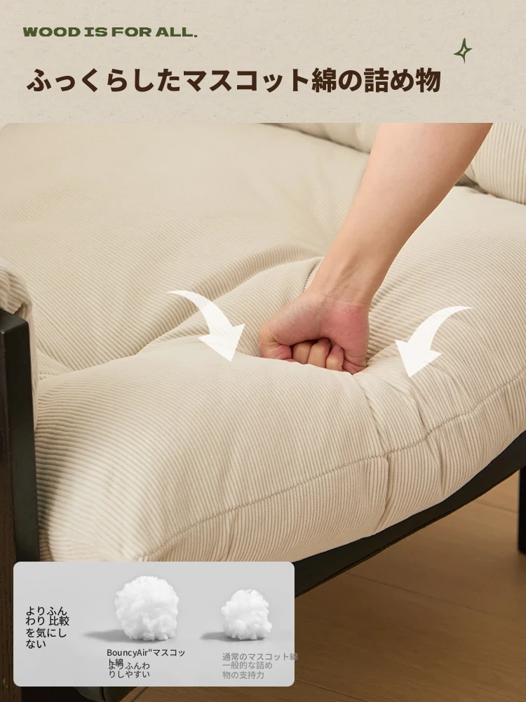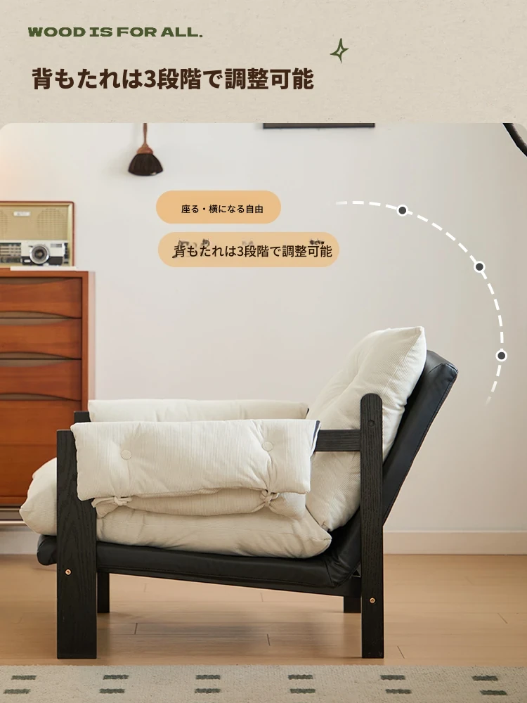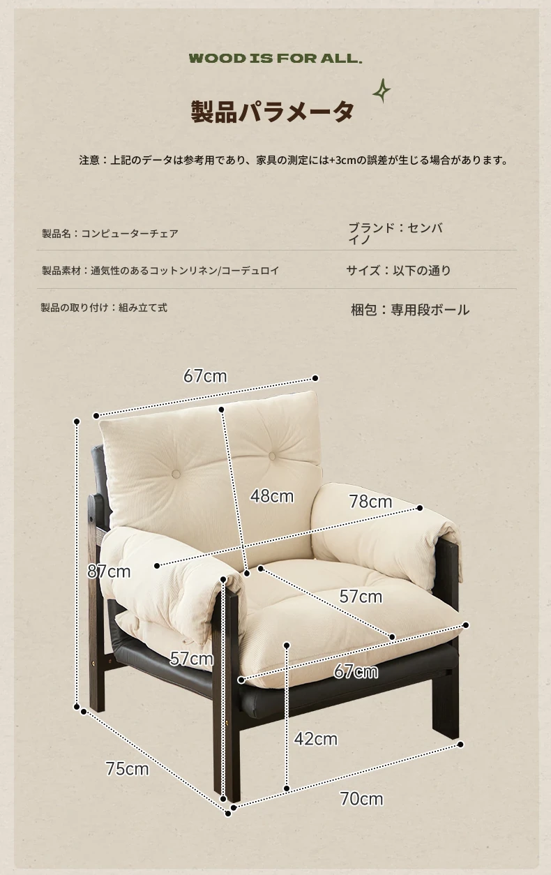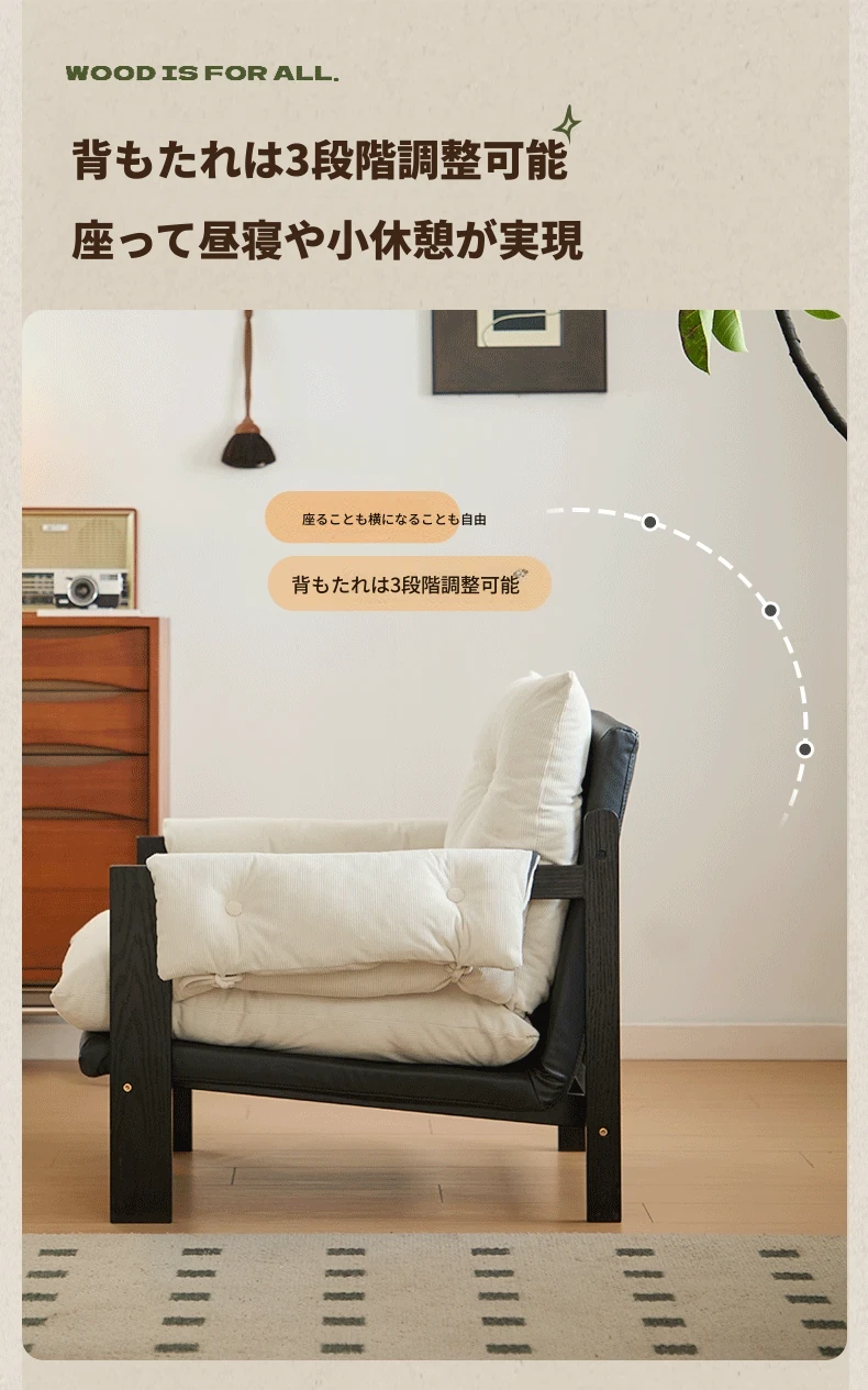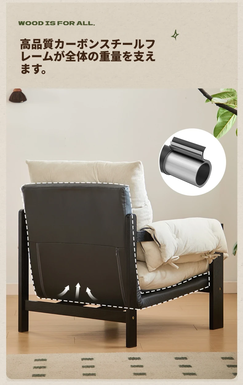 ふかふかの厚いクッション付き!リビングにぴったりな無垢材の一人掛けソファチェア。リラックスできる家庭用の怠け者ソファ、バルコニーや寝室にも最適な背もたれ付きチェア。快適なひとときをお楽しみください!