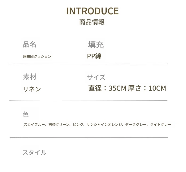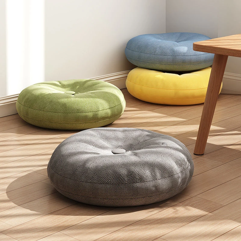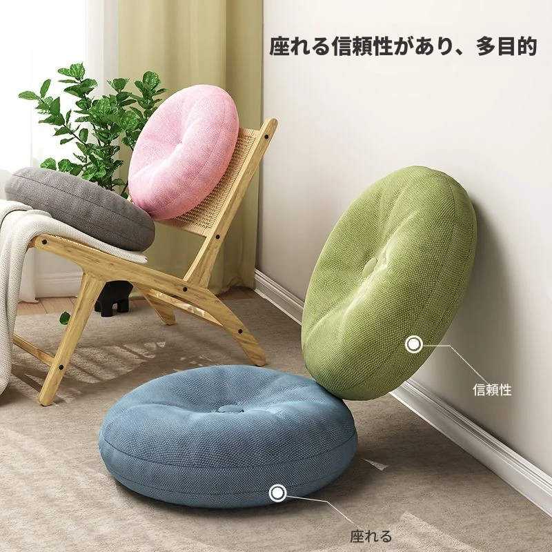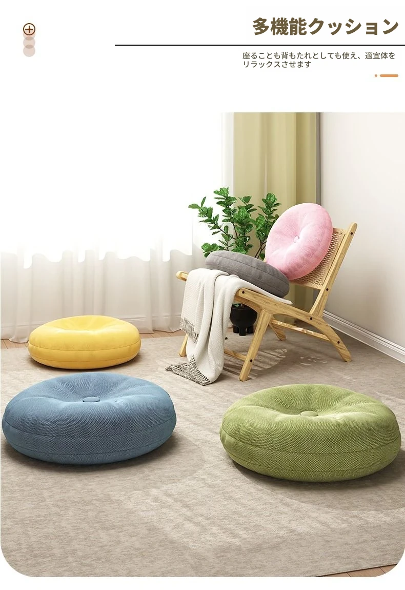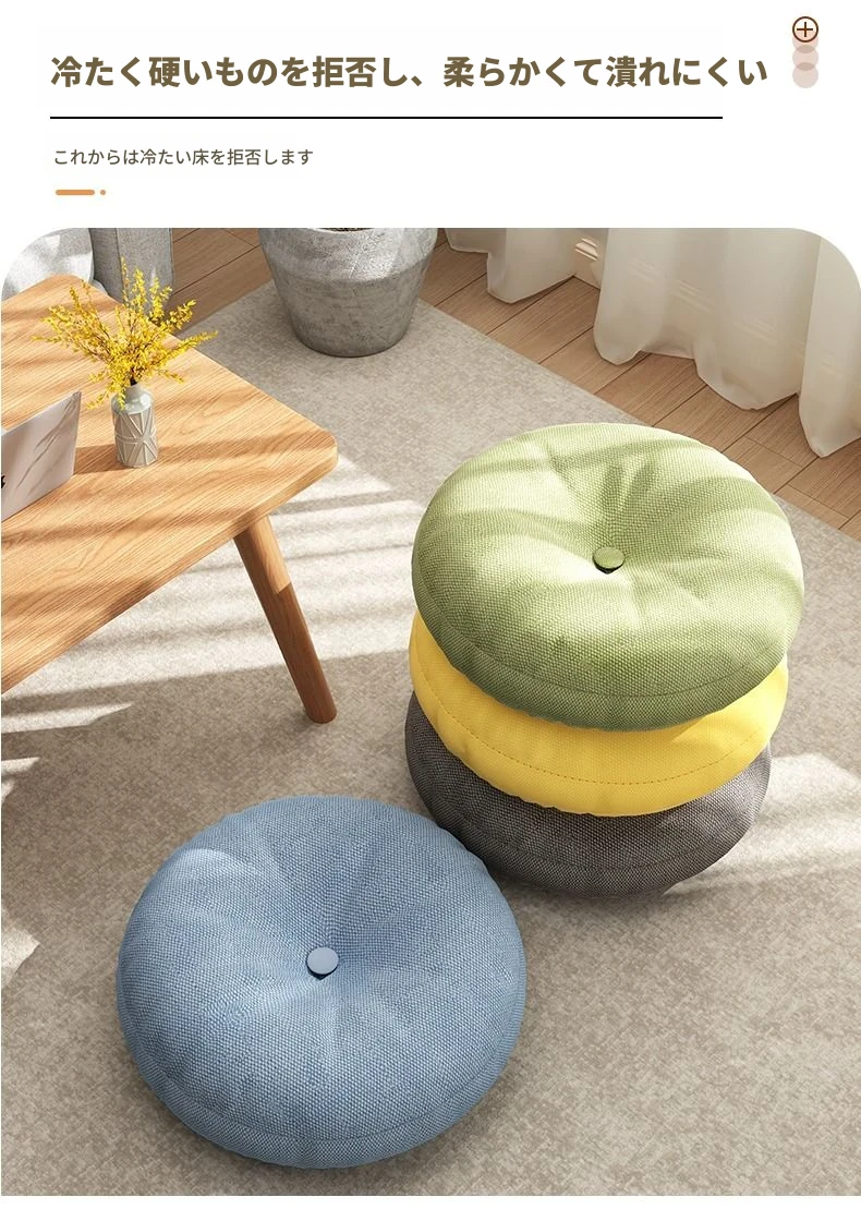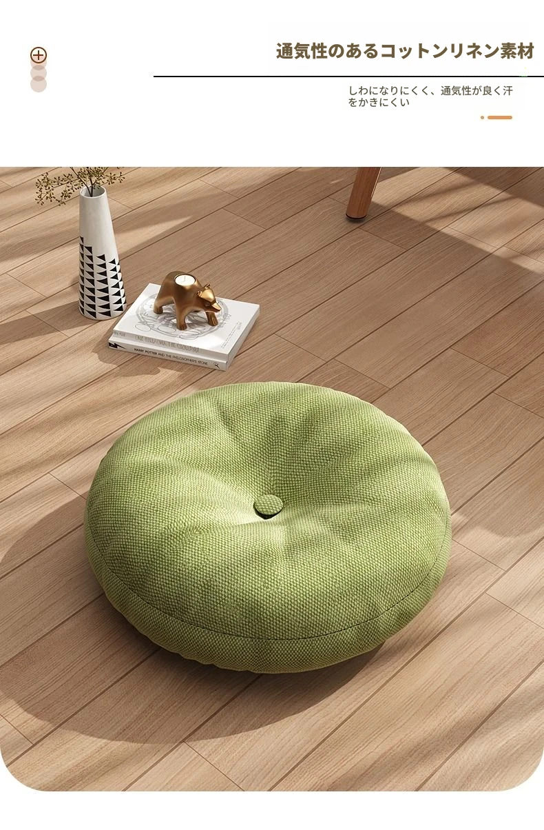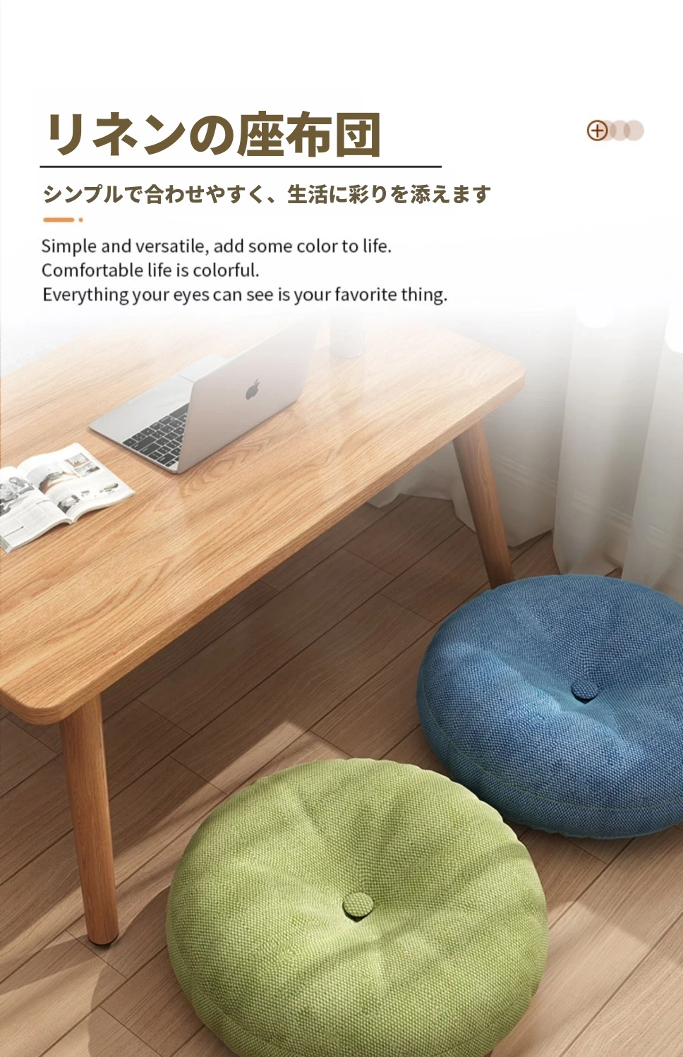 リネン製のラウンドクッション - 厚手で快適な家庭用フロアクッション、窓辺や畳、バルコニーに最適!リラックスしたい時にぴったりな、クッション性抜群のラウンジマット。
