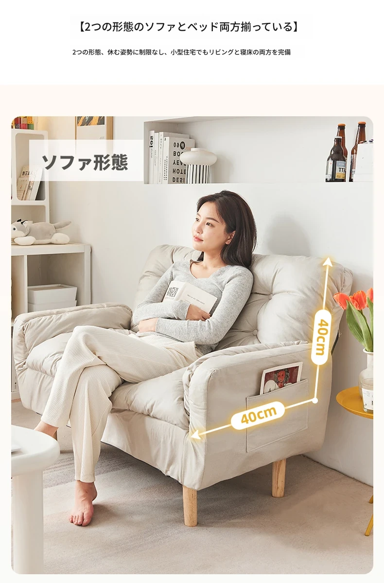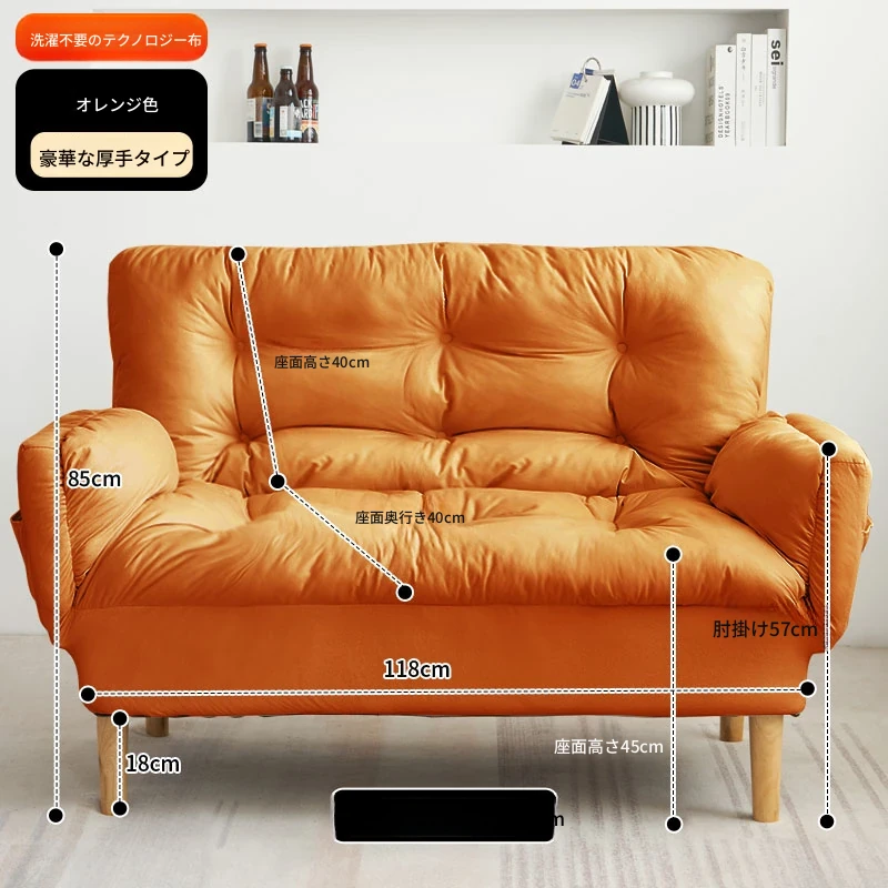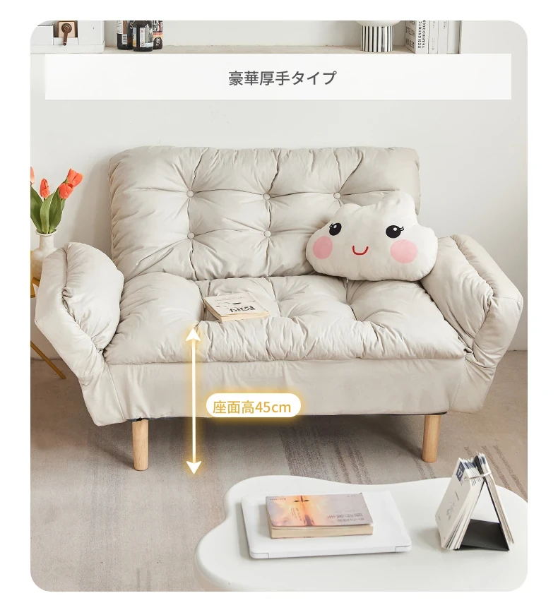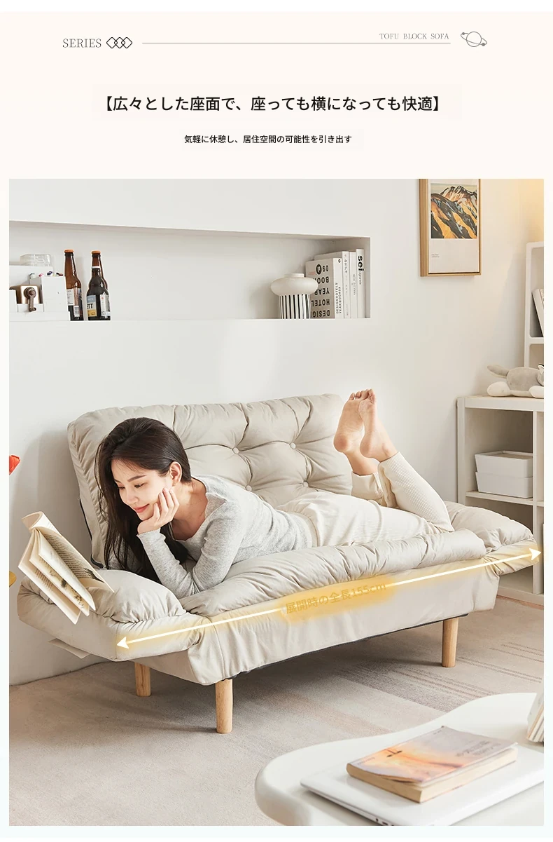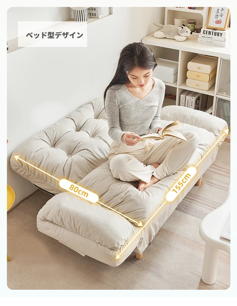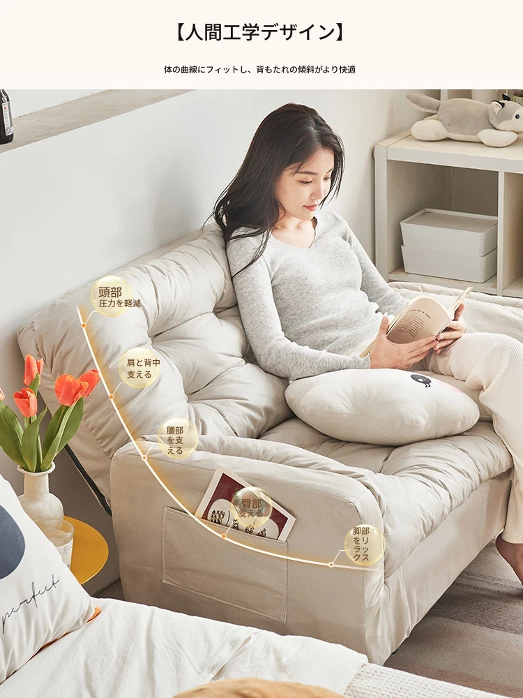 家でリラックス!寝転びながら使えるスリムな2人用折りたたみソファ - 小さなリビングや寝室に最適な快適なサンデーリビングチェア!