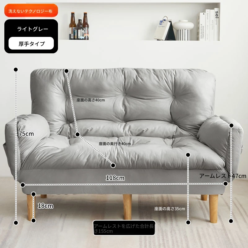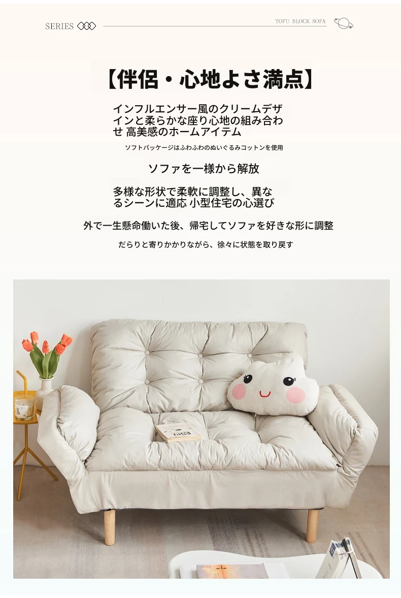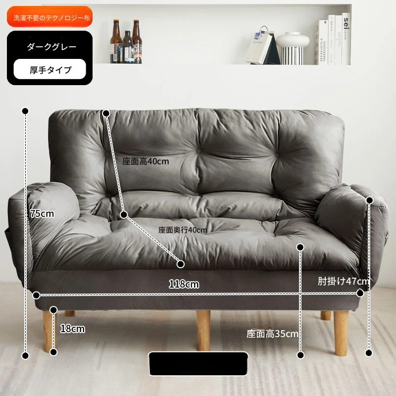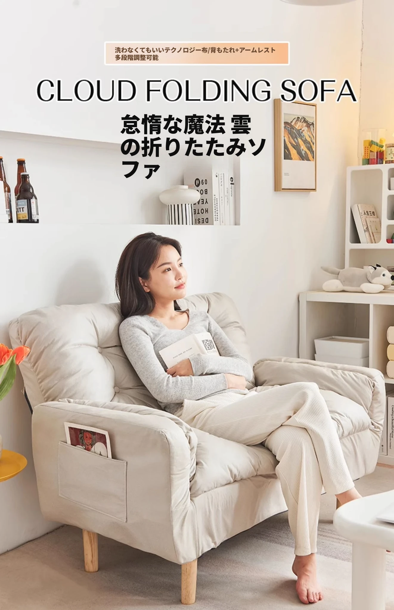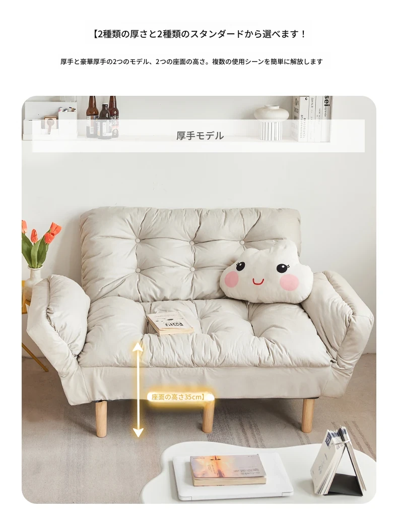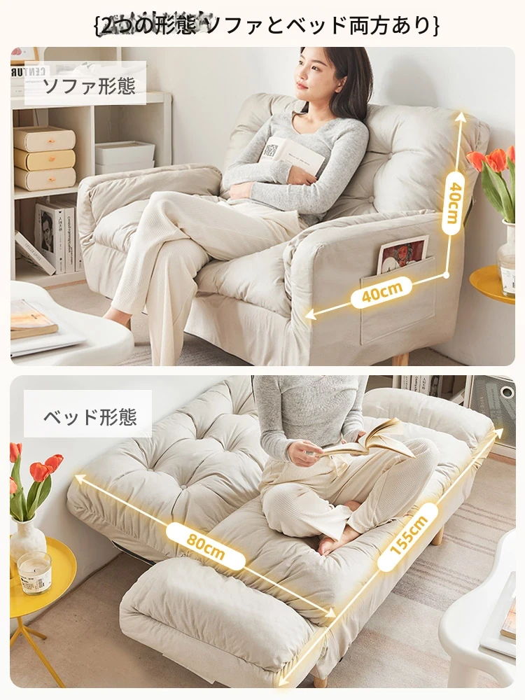 家でリラックス!寝転びながら使えるスリムな2人用折りたたみソファ - 小さなリビングや寝室に最適な快適なサンデーリビングチェア!