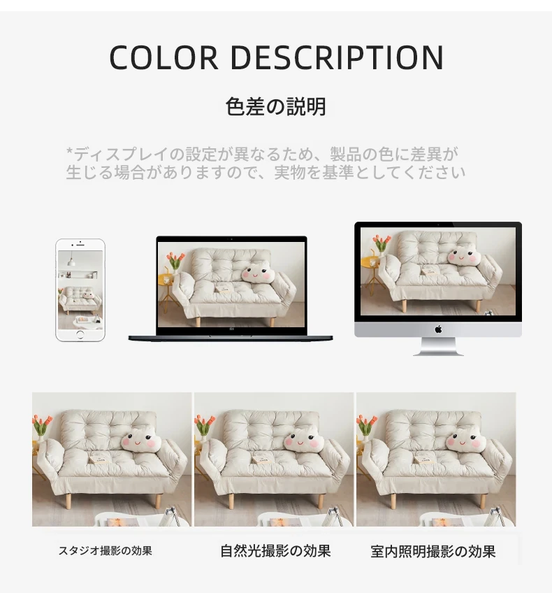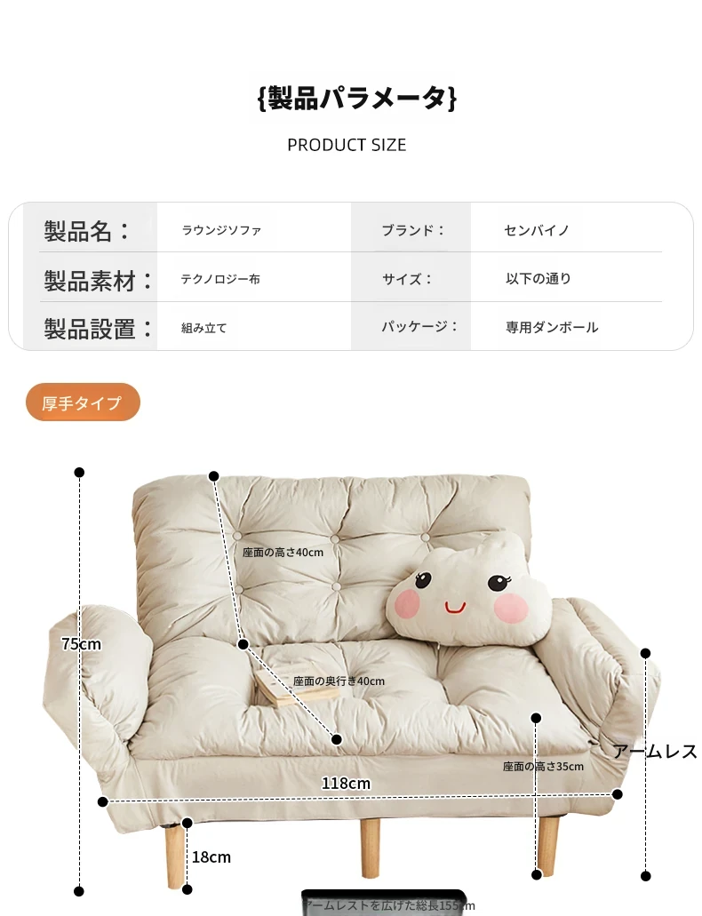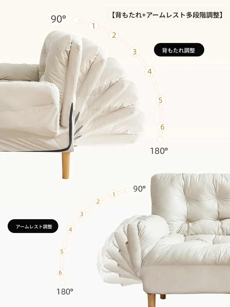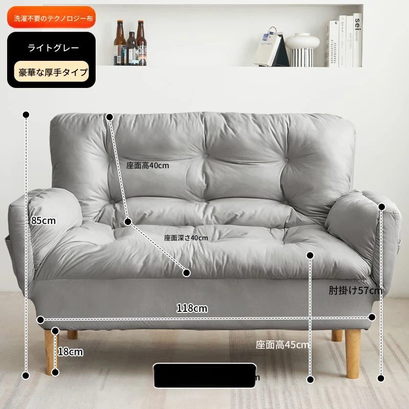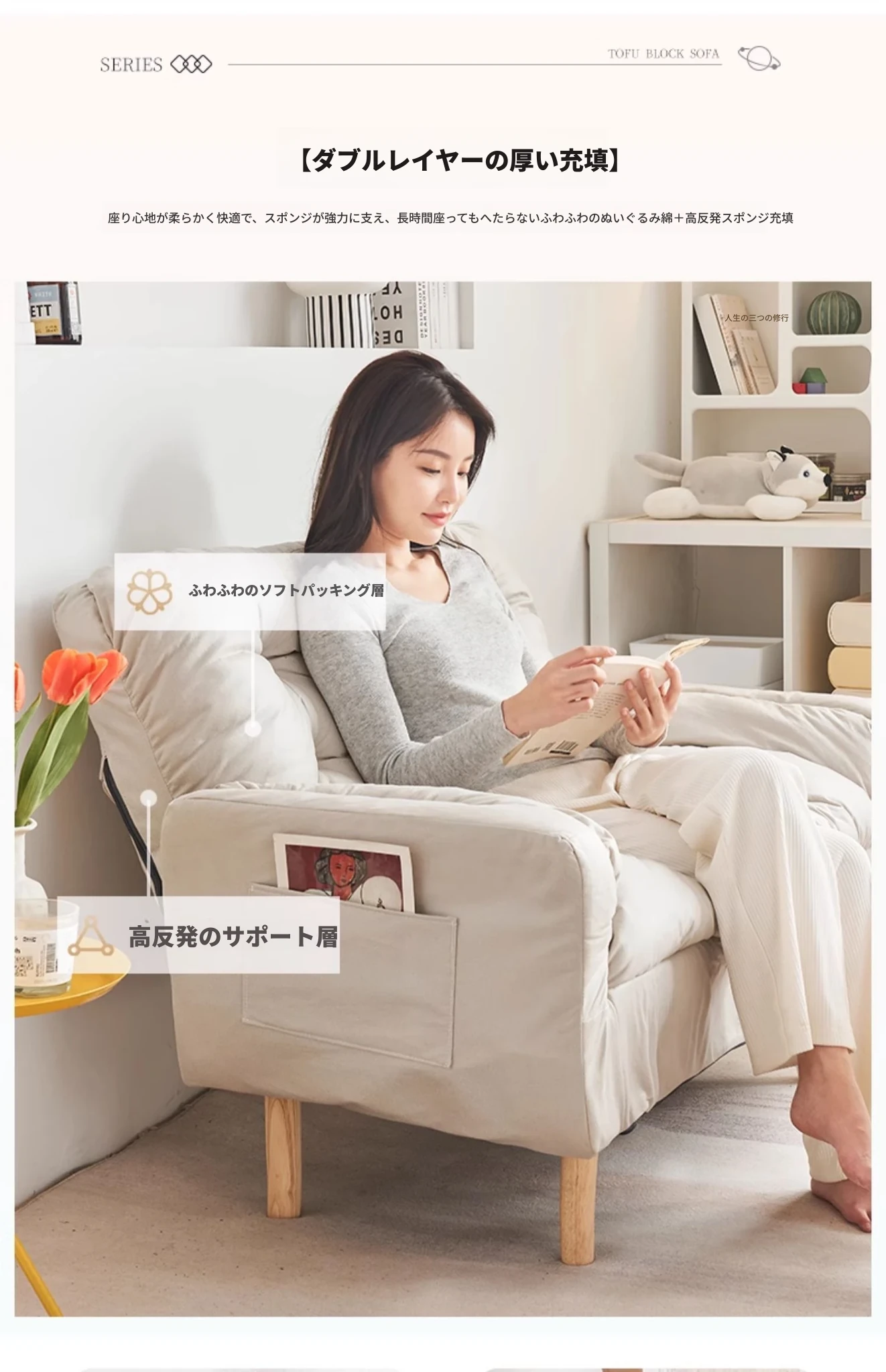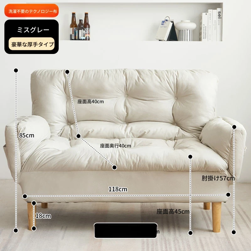 家でリラックス!寝転びながら使えるスリムな2人用折りたたみソファ - 小さなリビングや寝室に最適な快適なサンデーリビングチェア!